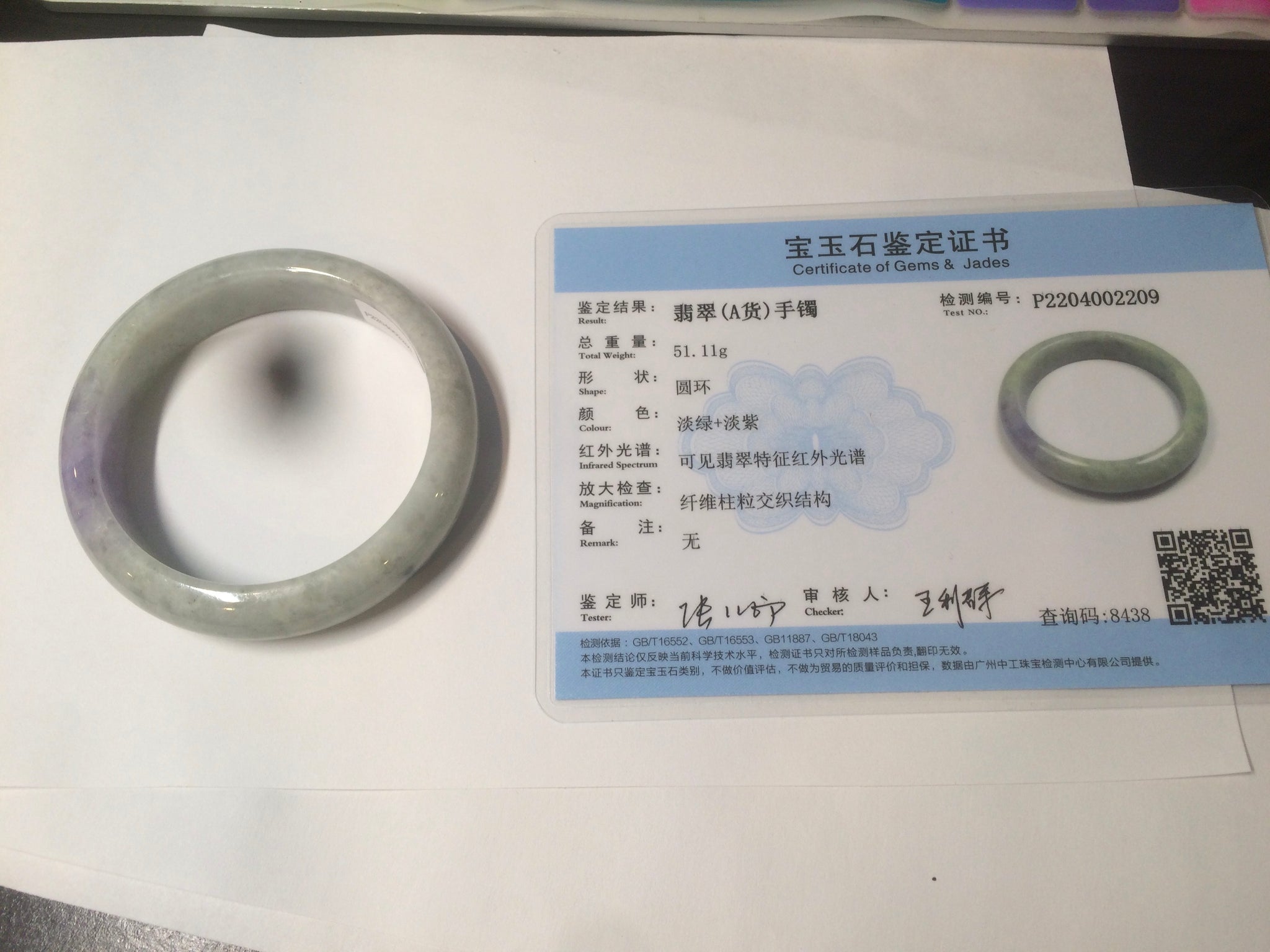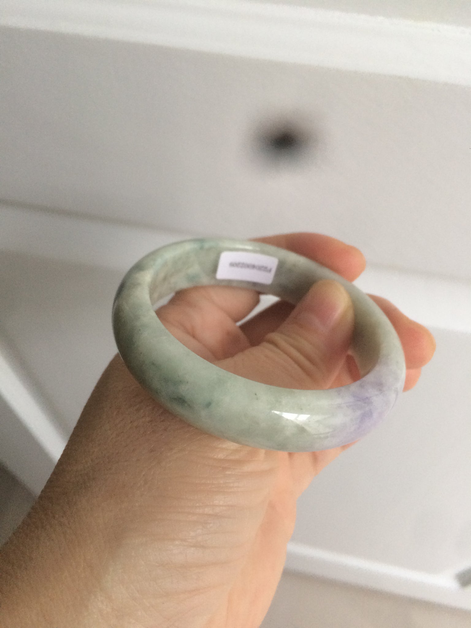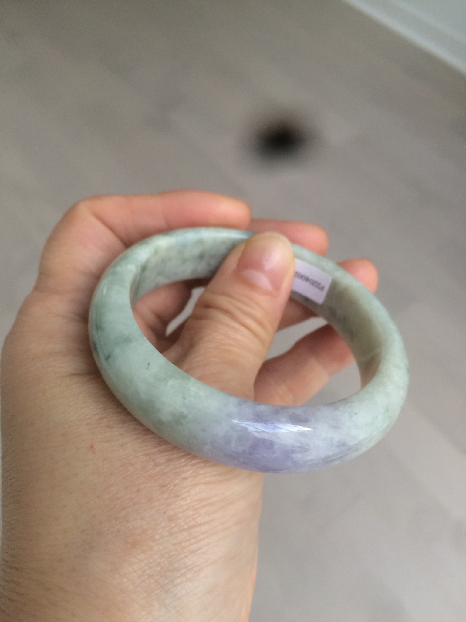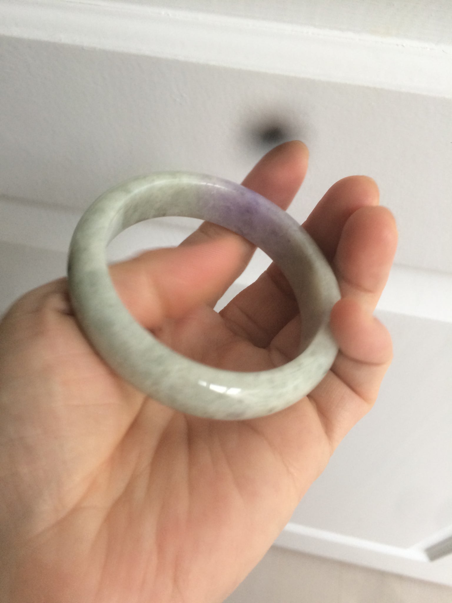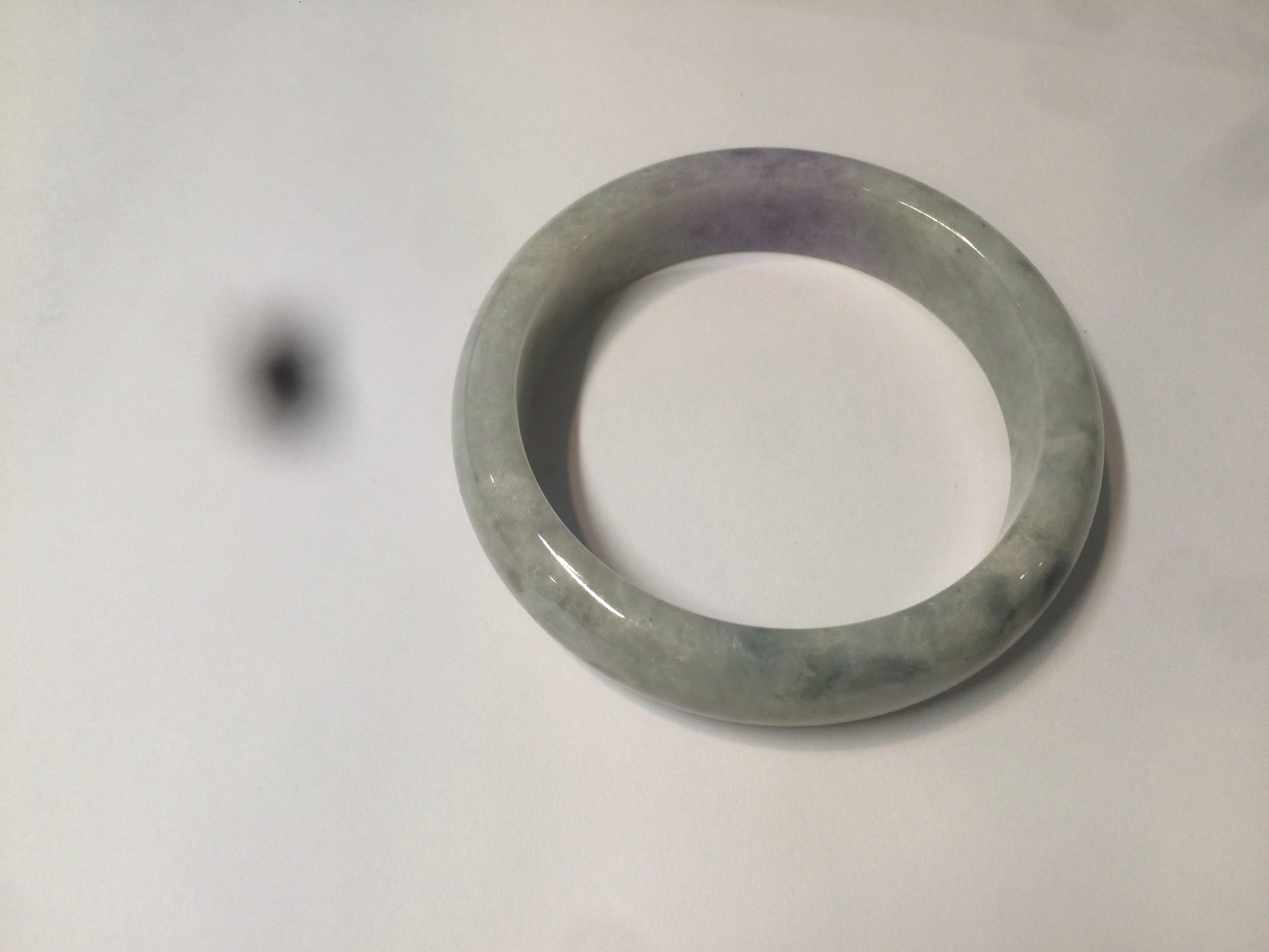 No crack. No hairlines. The texture is not so fine. Some jade structures can be seen. Blisters. Some cotton lines and cotton spots. No transparent. Not watery. The purple is lighter than in the photos due to the purple being always more camera-friendly.