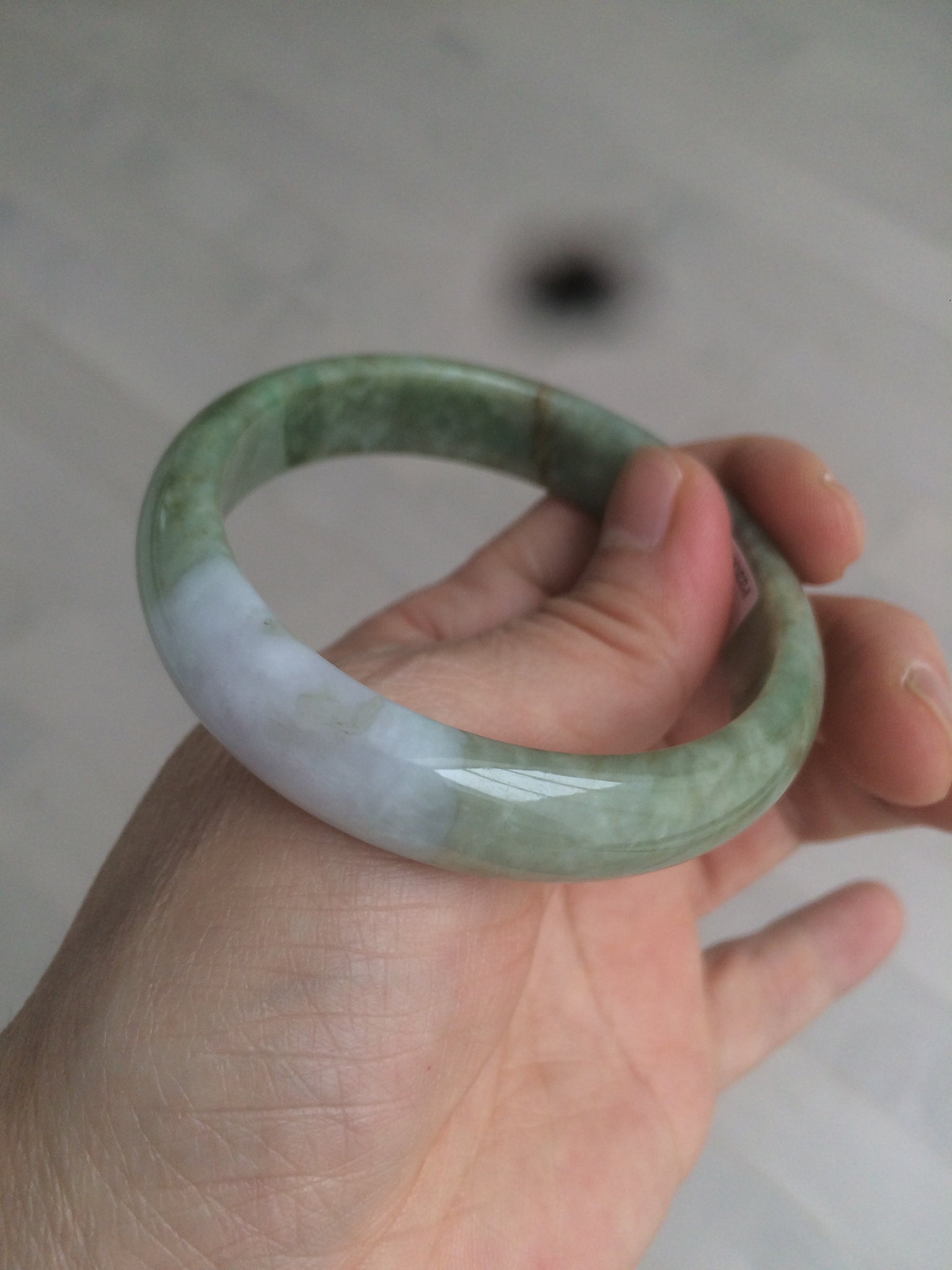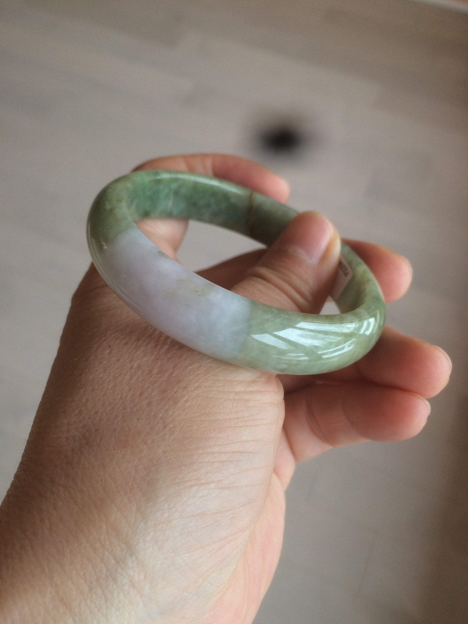 52.7mm Type A 100% Natural light green/purple/brown Jadeite Jade bangle GC35-4159 (add on item)