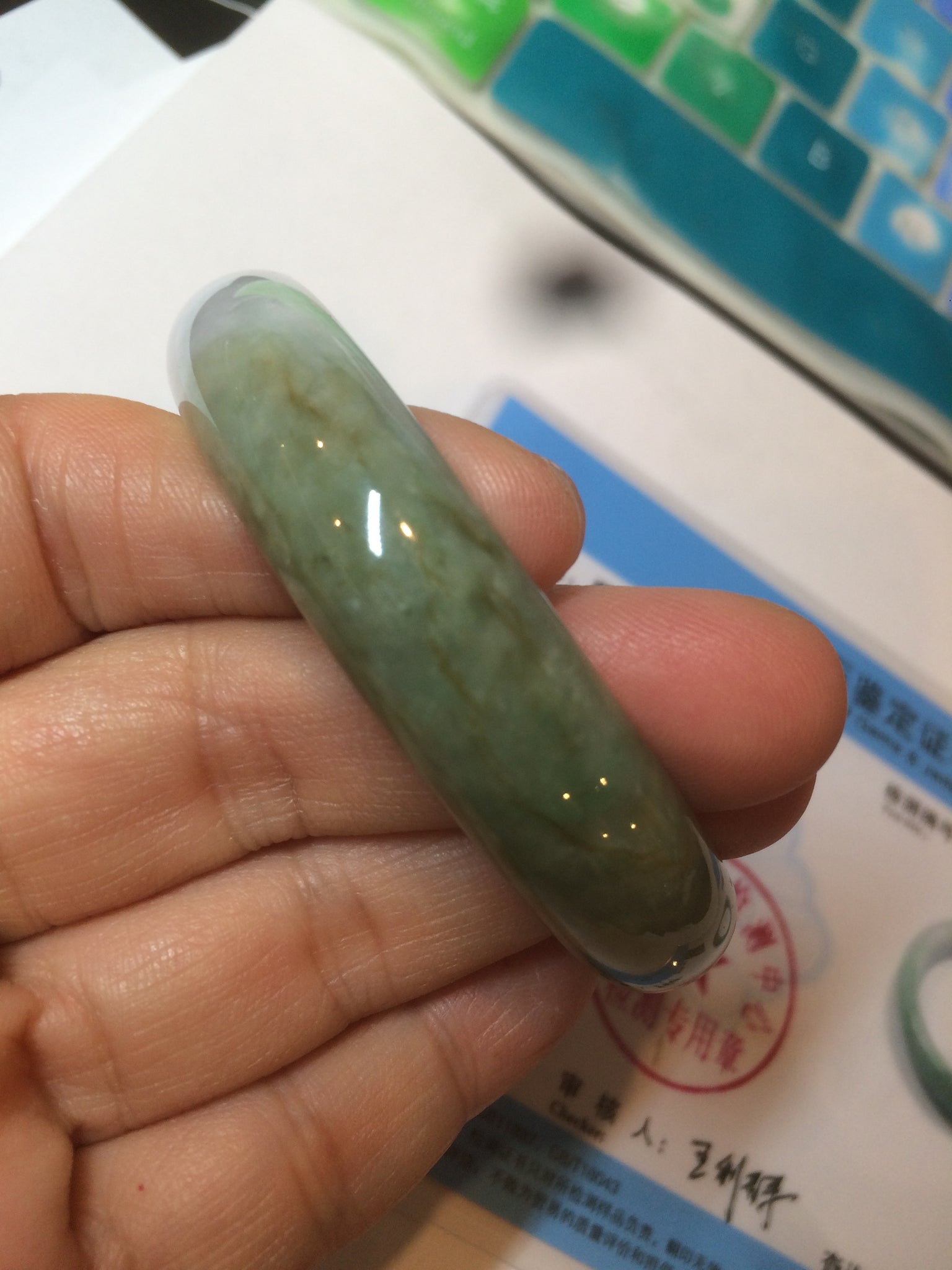 有个贯穿裂,其他色线,纹什么的,价格便宜,就不一一描述了。 这个裂是单边的,就当是裂那里是开口镯的开口,平时戴只要不用力撸,是没事的。