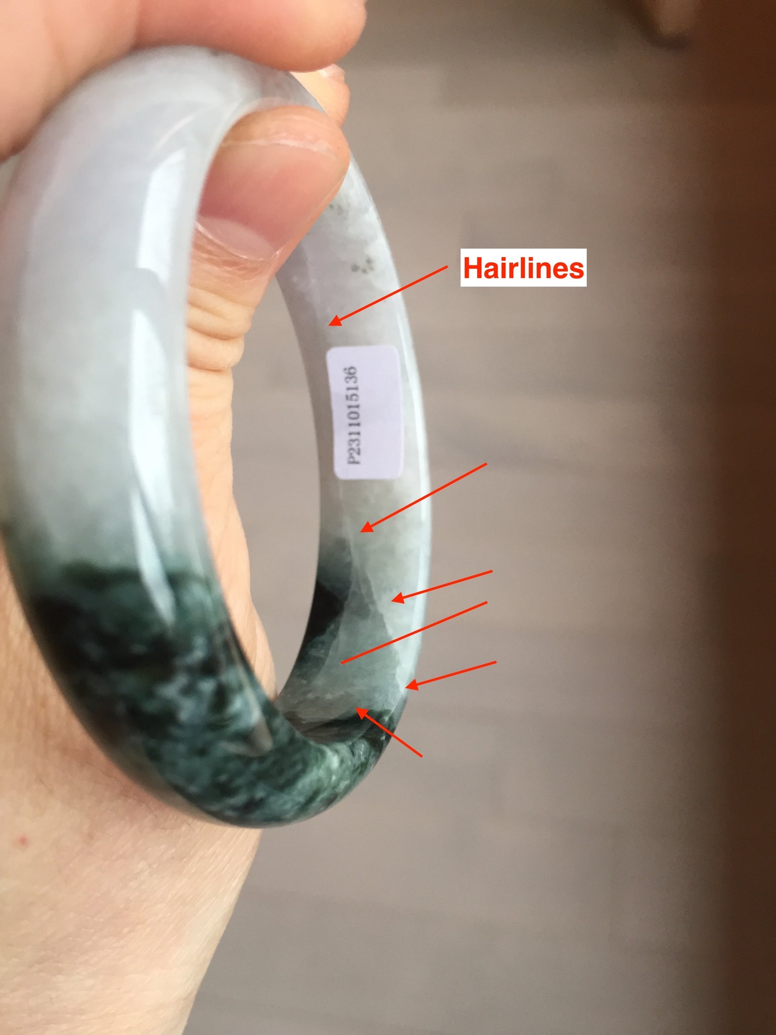 One ring shape crack. Guaranteed the firmness. Some hairlines. Some of them area long. Some cotton lines and cotton spots. Some small rough surface. The purple is super light. Just a hint of it. lighter than in the photos since purple is more camera-friendly.
