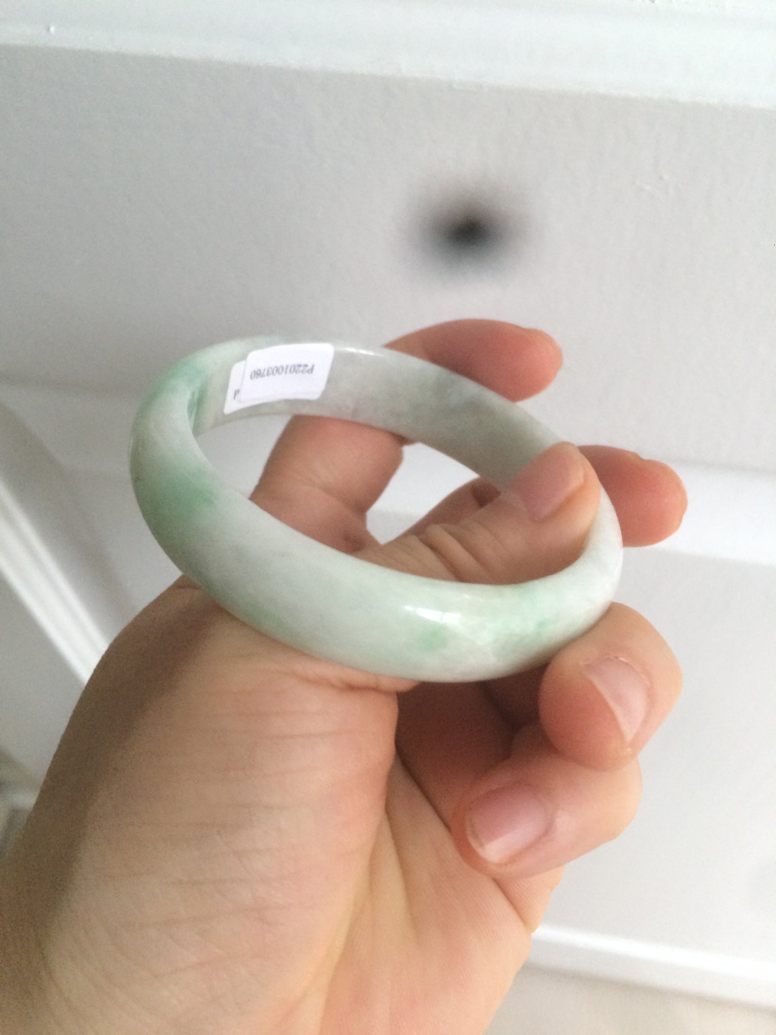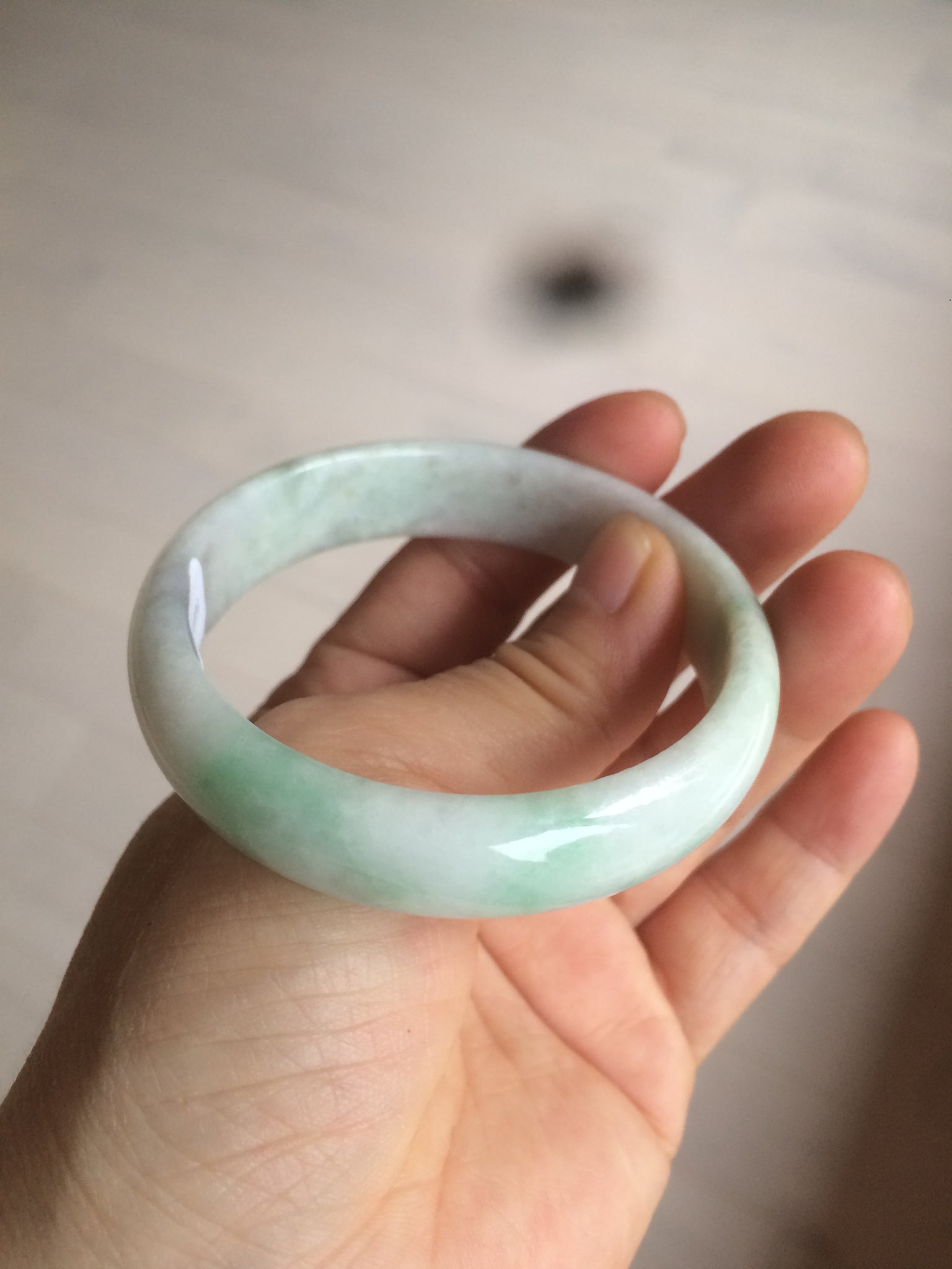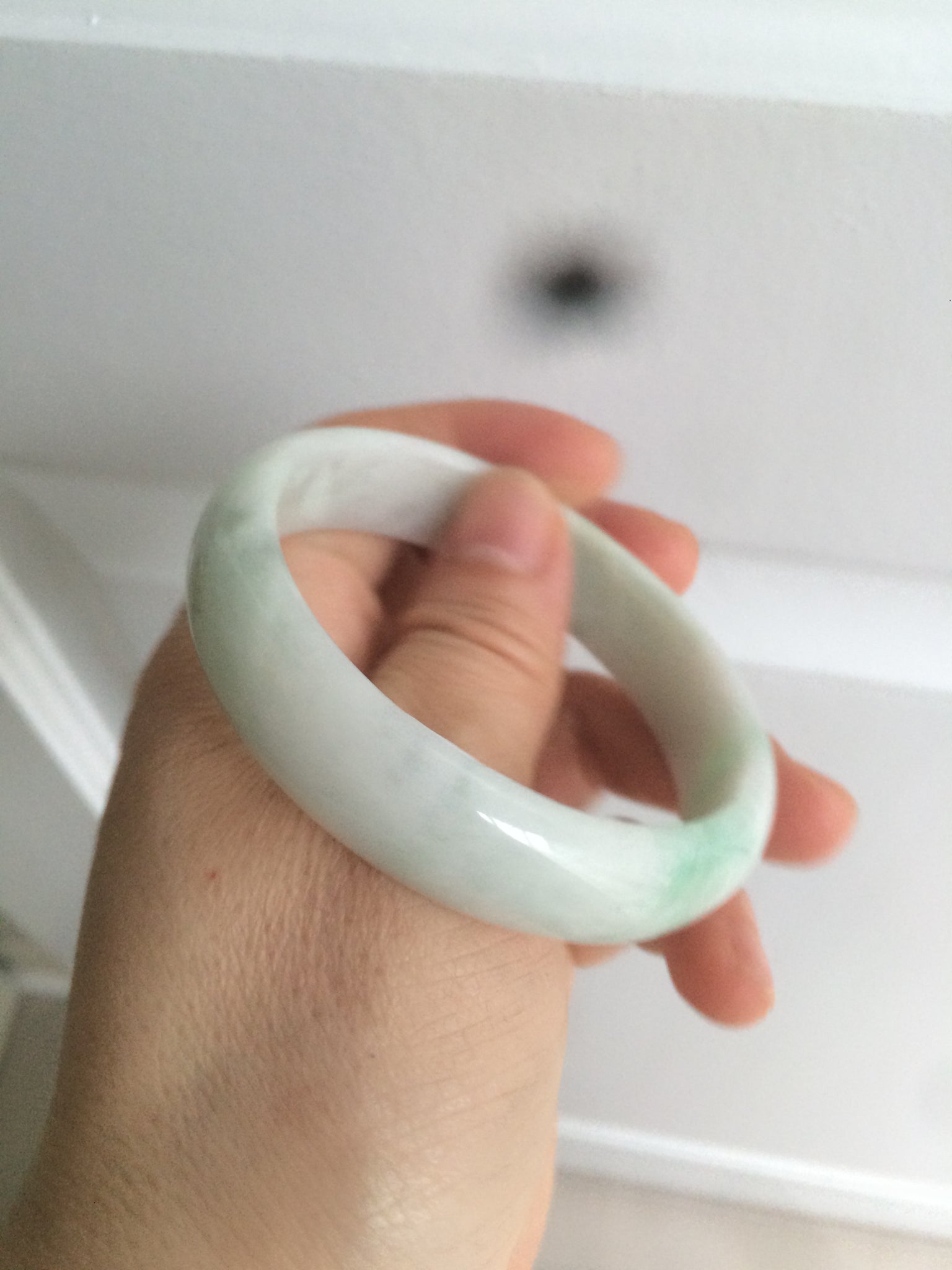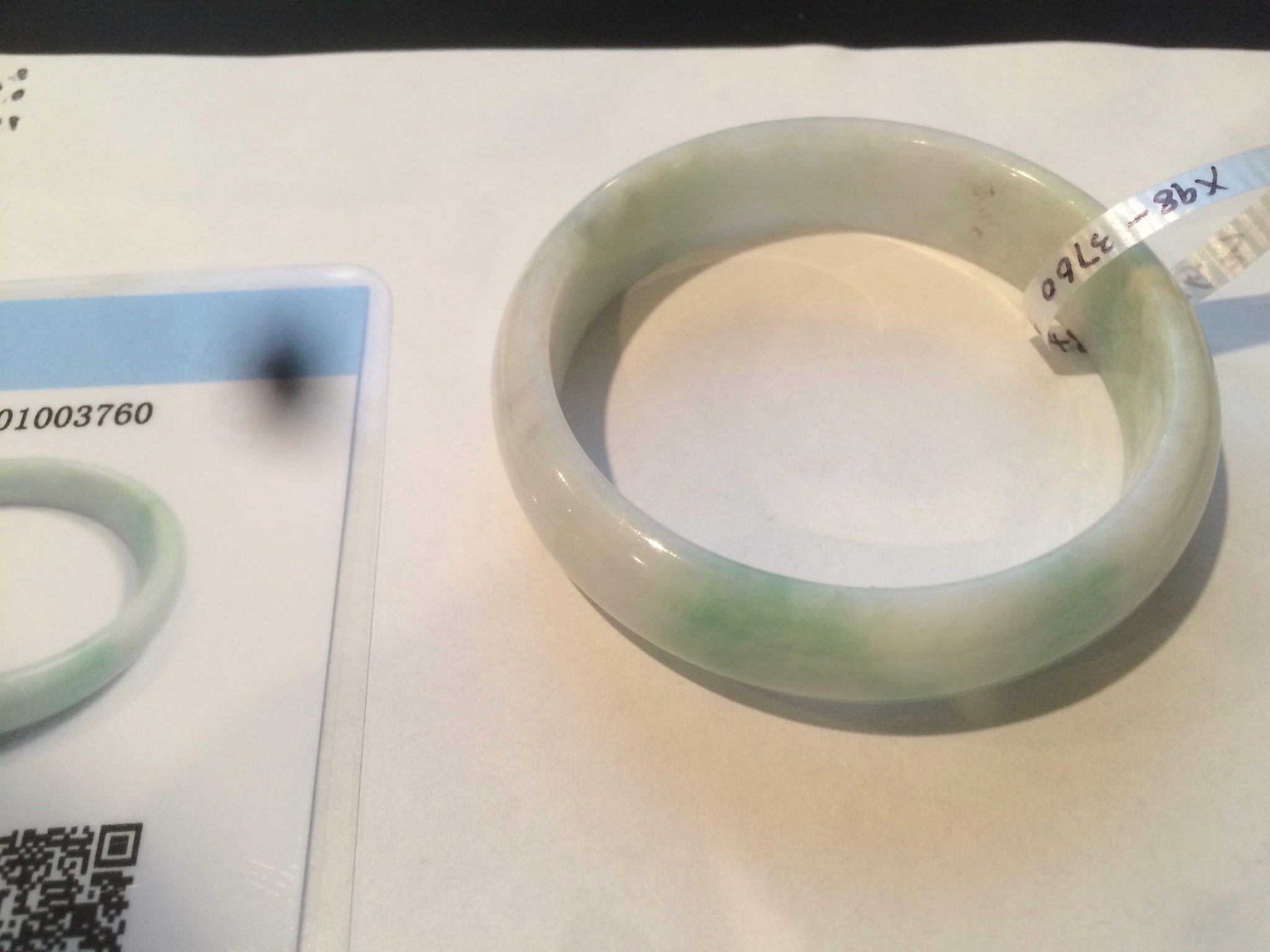 53.5mm certified 100% natural Type A sunny green/white jadeite jade bangle X98-3760