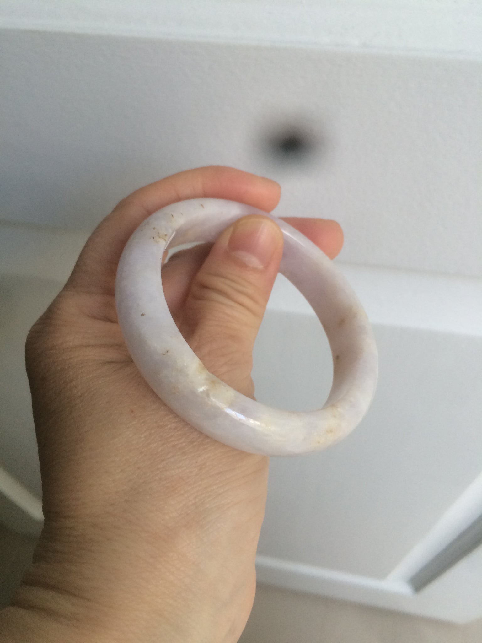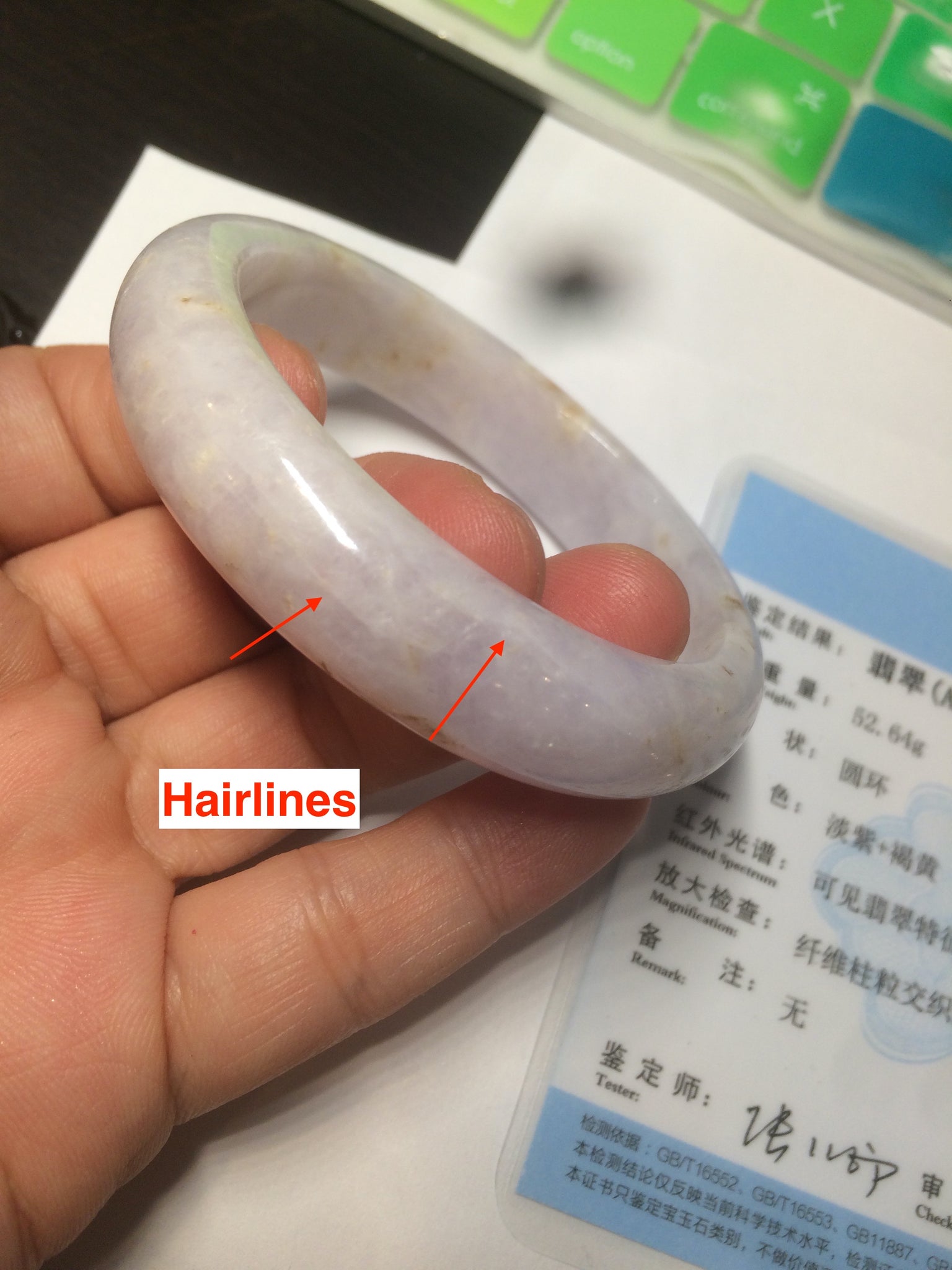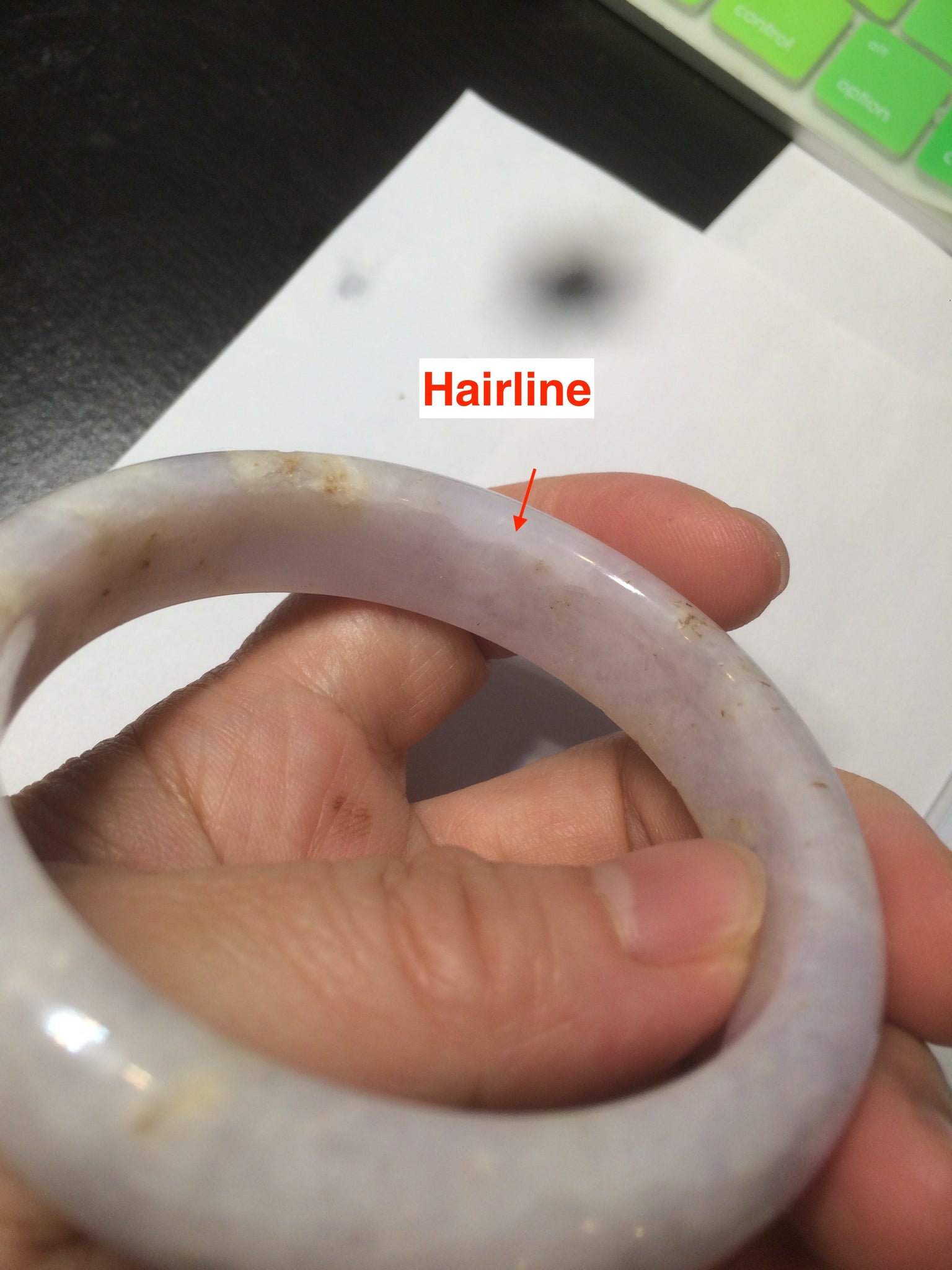 Some cracks, some hairlines. Some rough surfaces with tiny surface cracks and a medium amount of wax(price consider this already, please don't order if you don't like wax. Thanks). The texture is not so fine. Cotton lines, cotton spots, notches with wax. The purple is lighter than in the photos.
