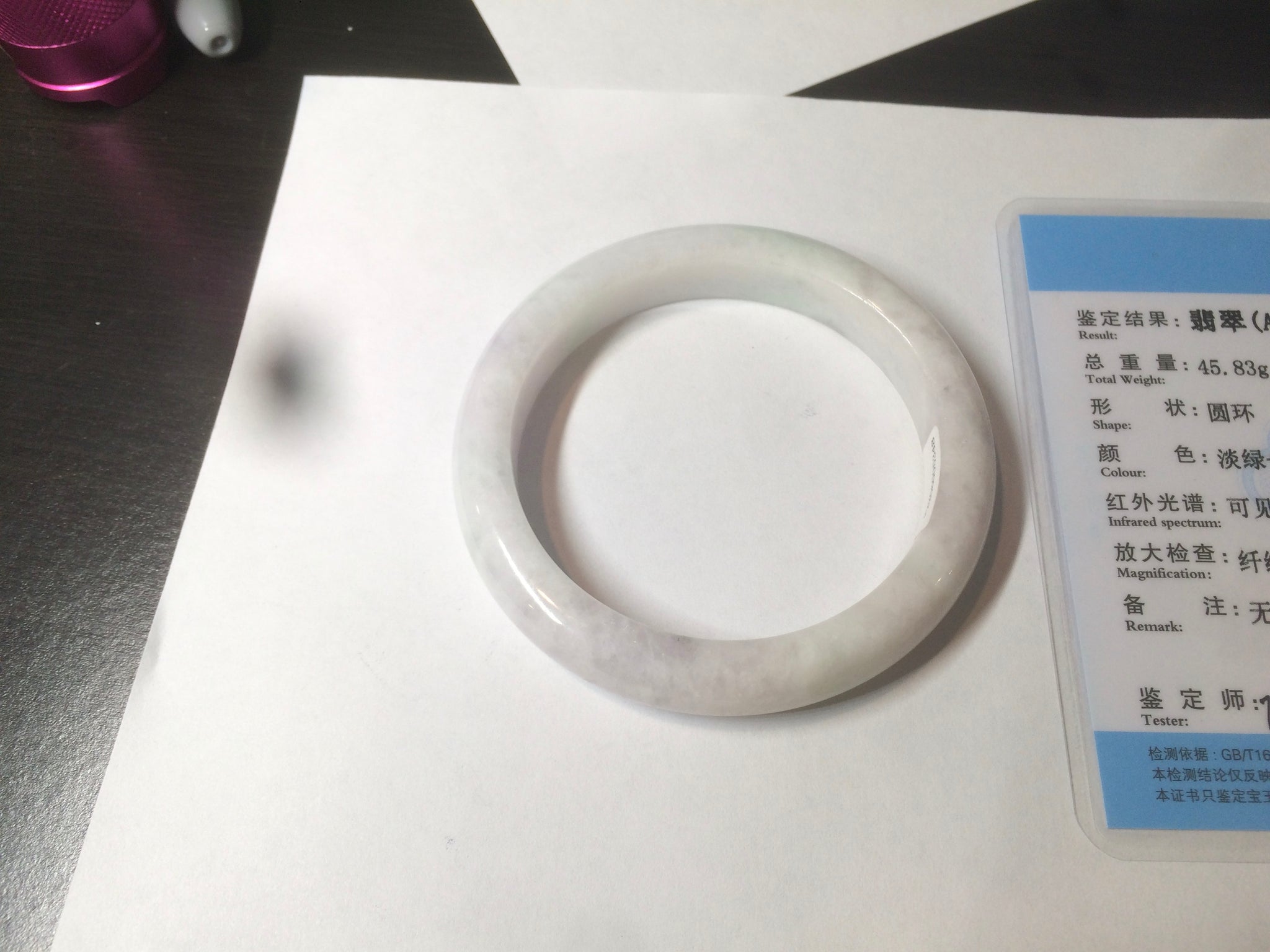 One U shape crack. The texture is not fine(coarse). You can see a lot jade structure. Cotton areas, lines, spots. Some purple blisters. The purple is lighter than in the photos.