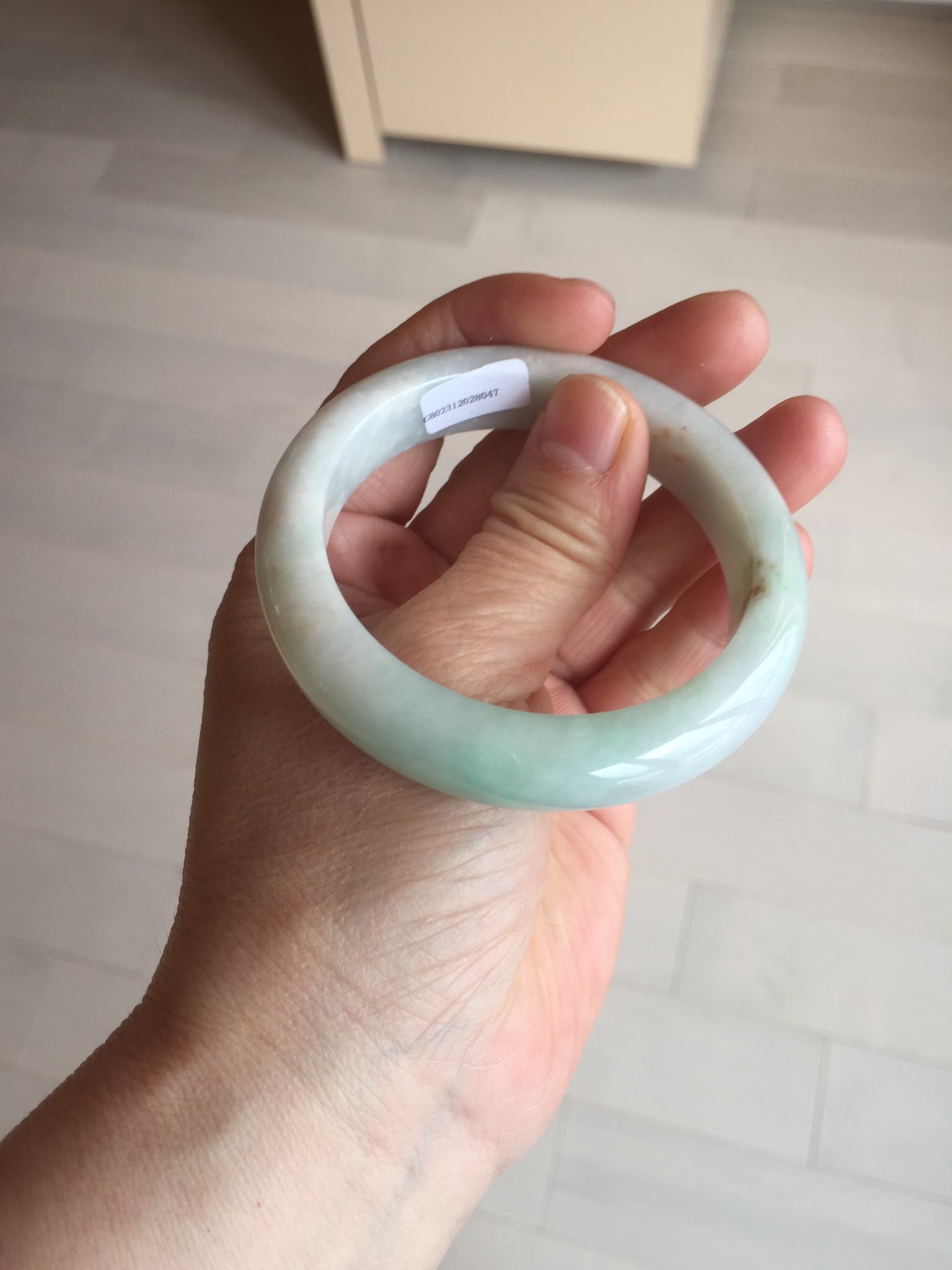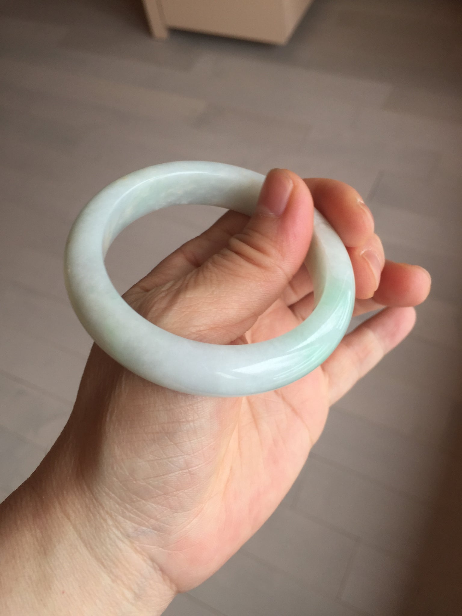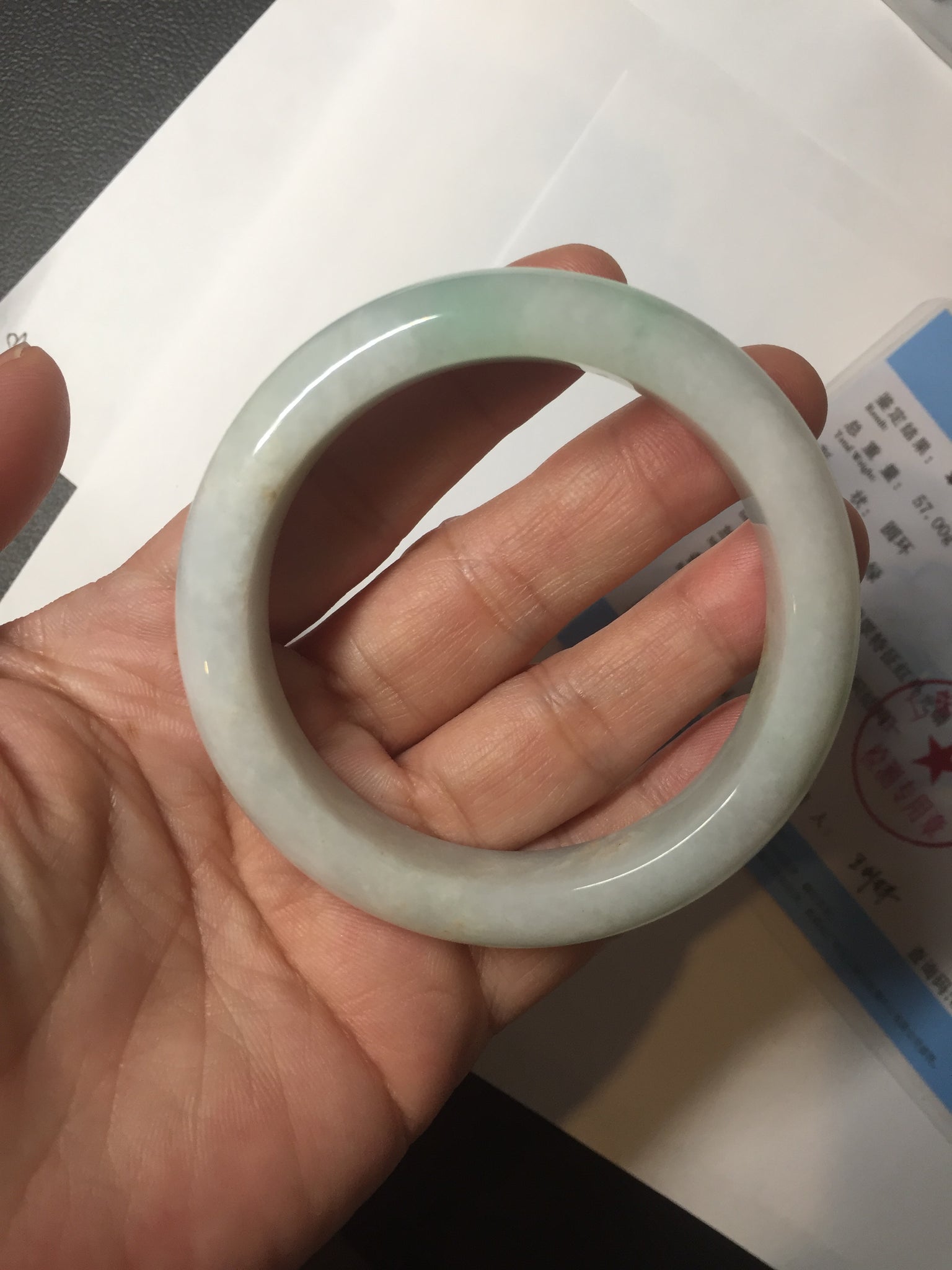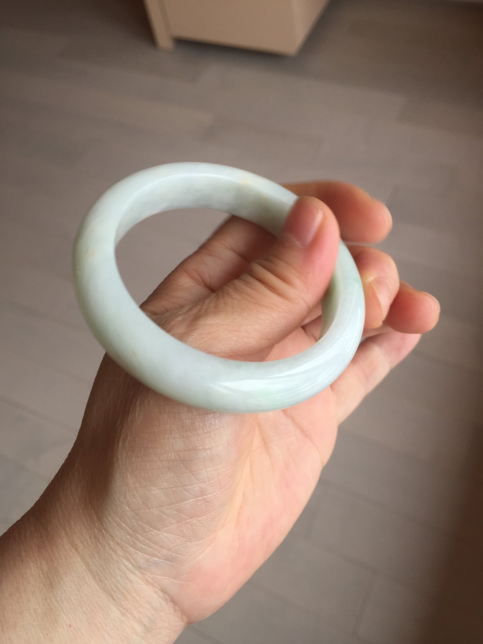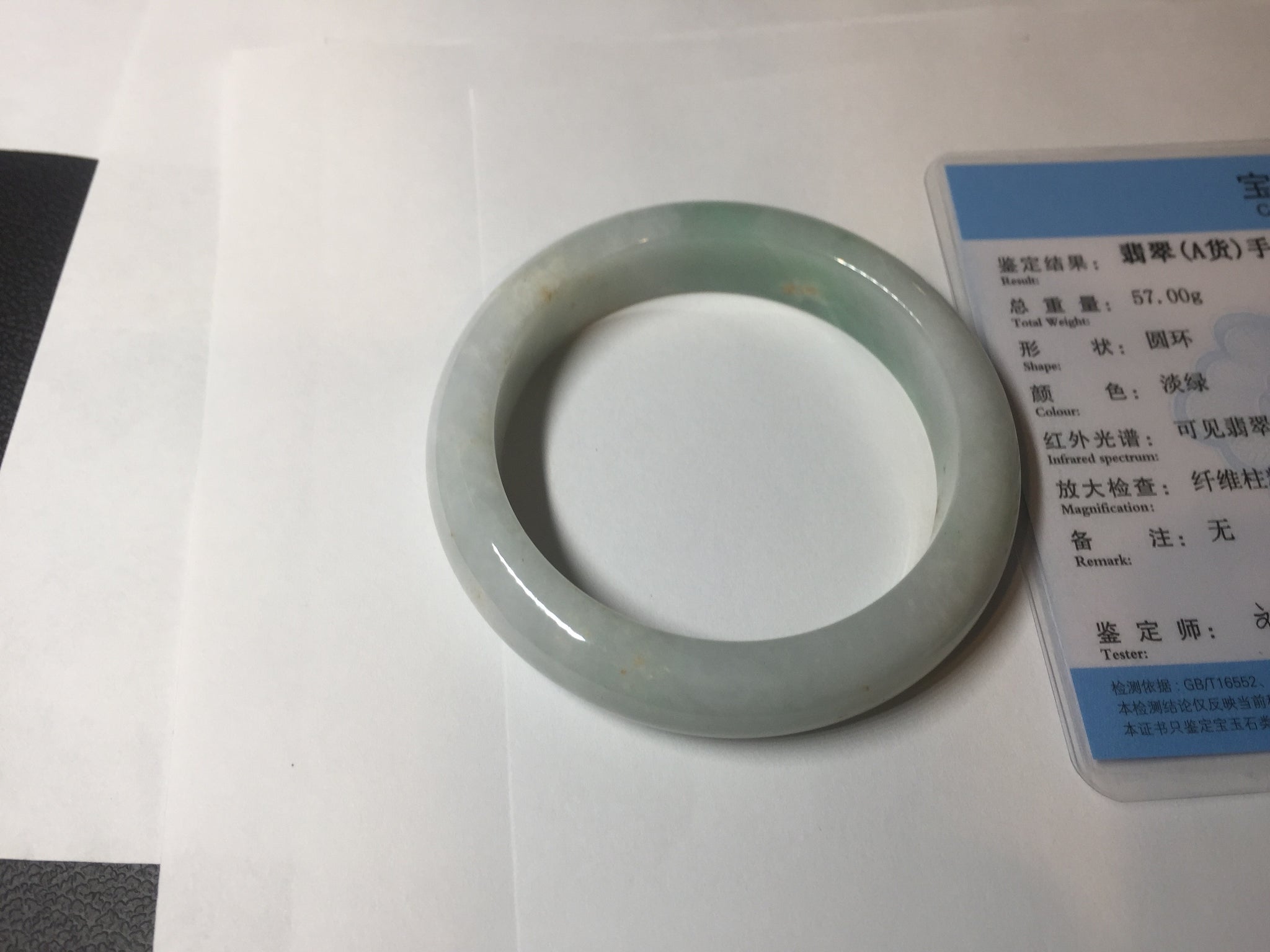 One crack. Some rough surface areas or spots with a tiny trace of wax. Some hairlines, one of them is around the bangle. The hairlines won't influence the firmness of the bangle. Some cotton lines and spots. Brown spots.