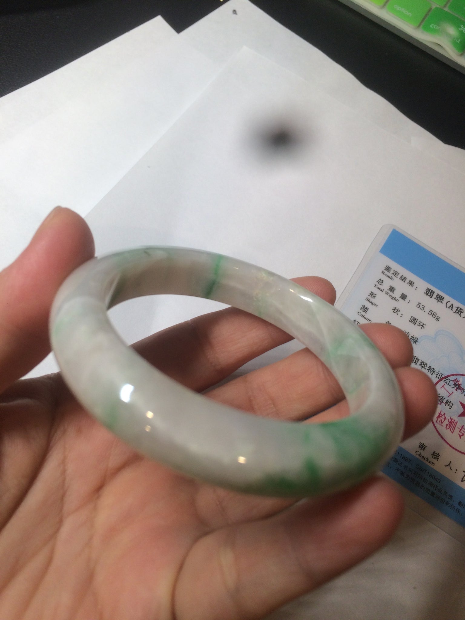 53.5mm Certified Type A 100% Natural sunny green Jadeite Jade bangle AZ130-4125