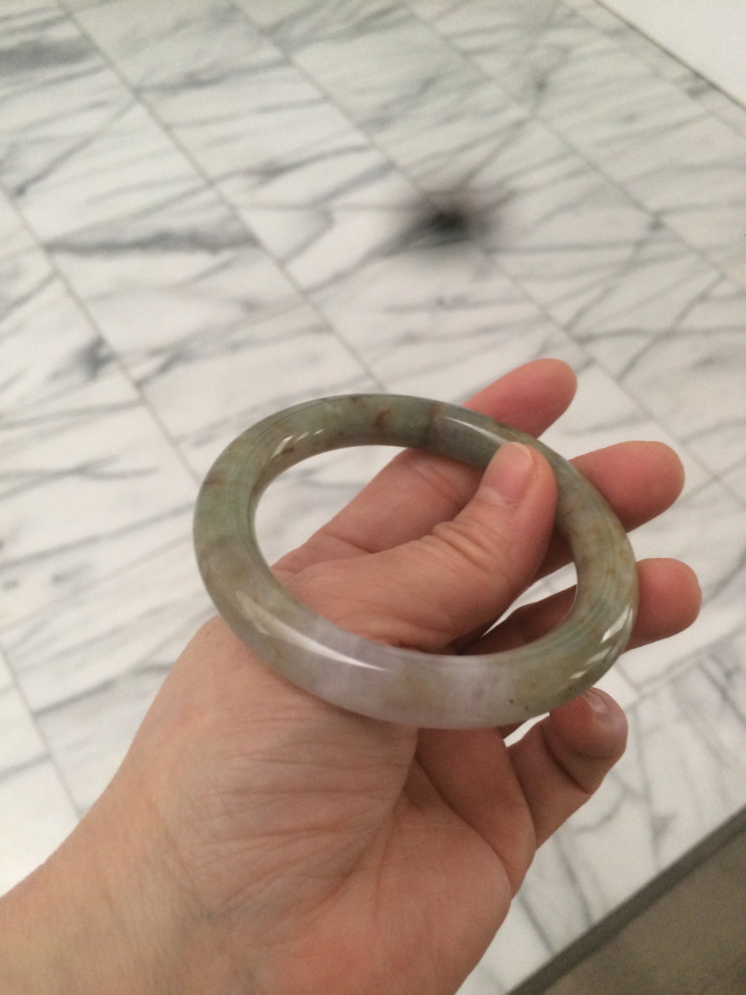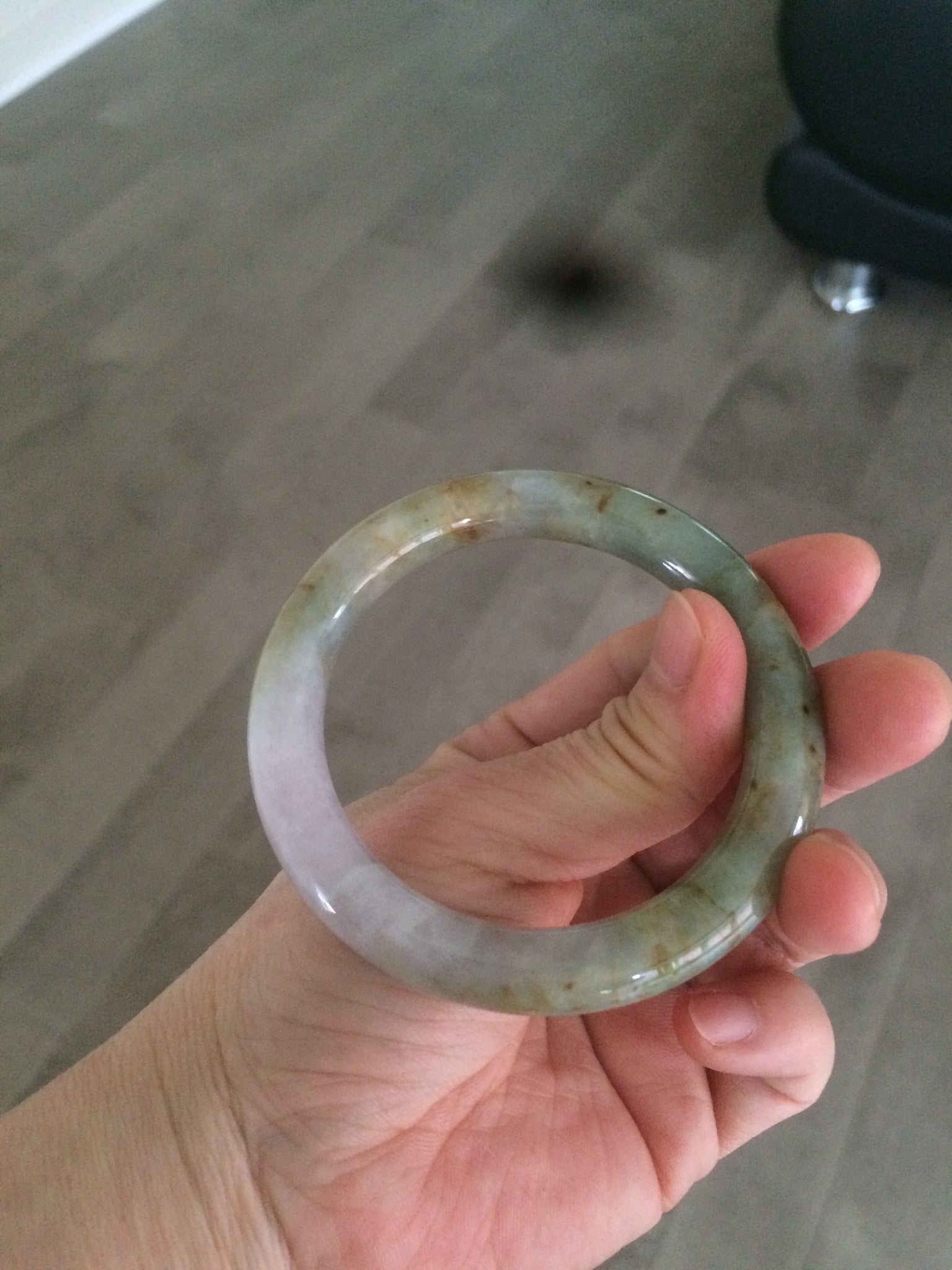 When a bangle has green, yellow(brown/orange), and purple, it means "Fu Lou Shou", Blessing, good fortune, and happy long life. It is very rare.