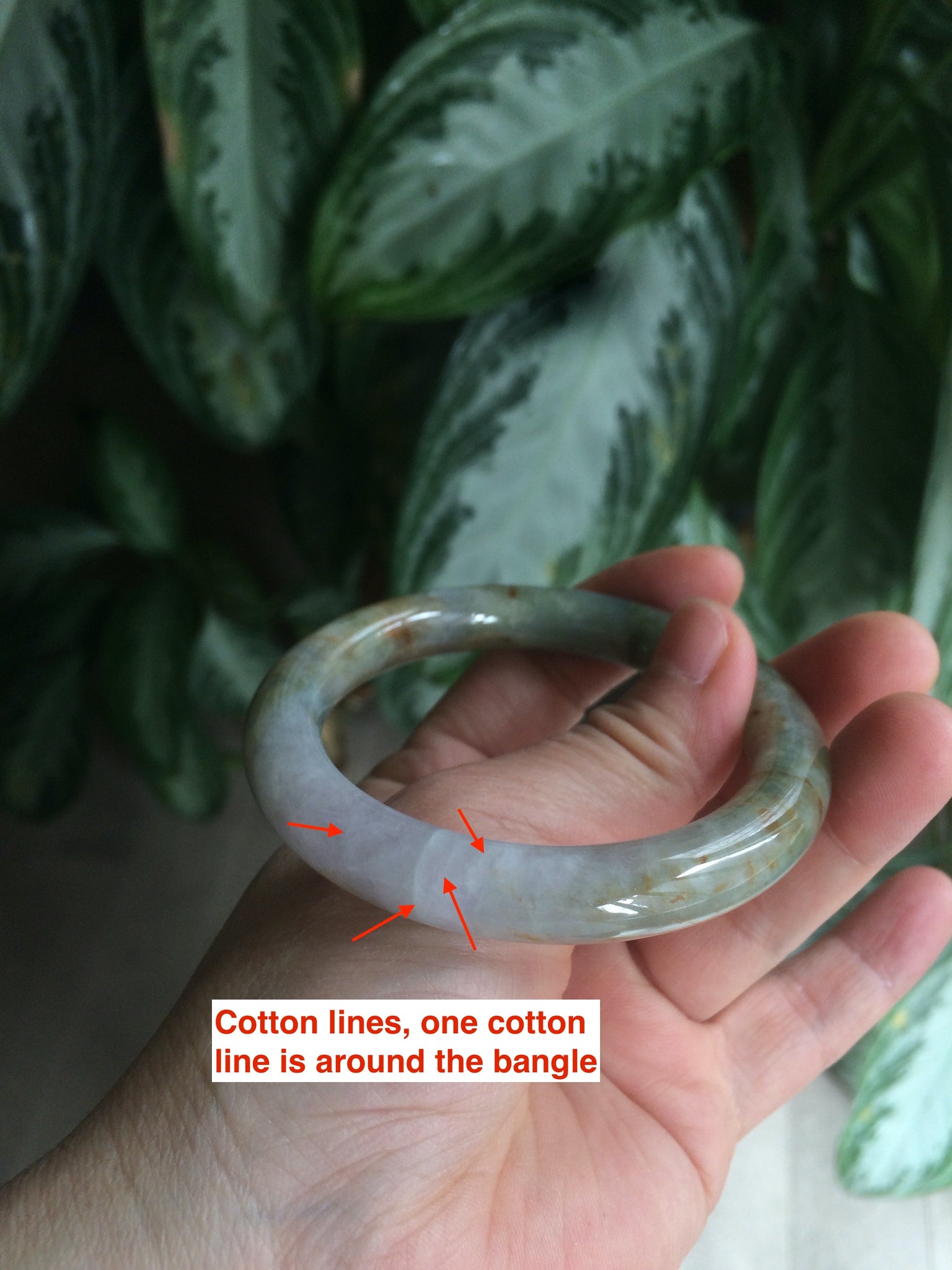 Some color roots with tiny cracks or rough surfaces. Some color roots with rough surfaces. Some cotton lines. One hairline is around the bangle. some cotton spots. The purple is very light. Lighter than photos since purple is very camera-friendly.