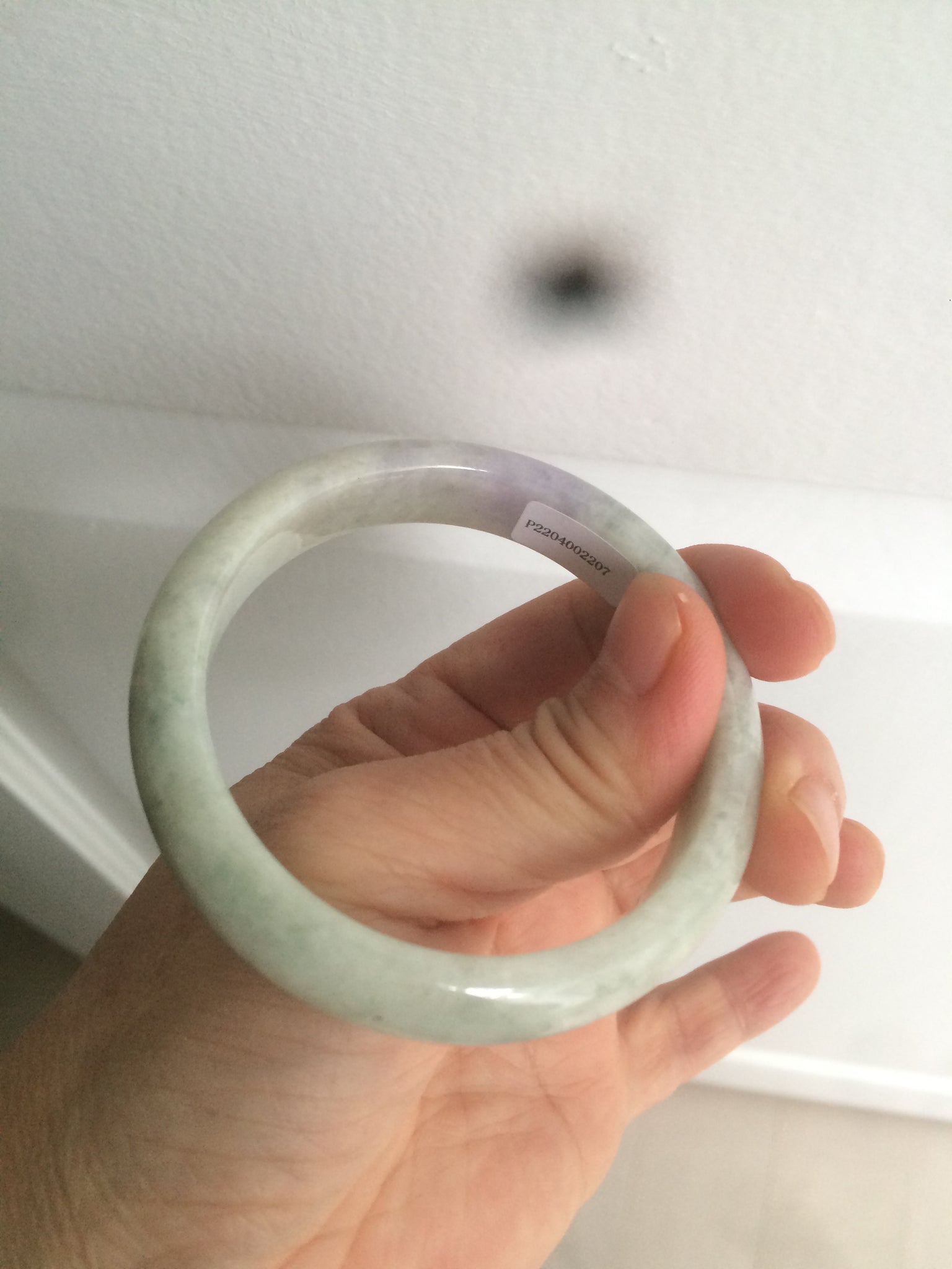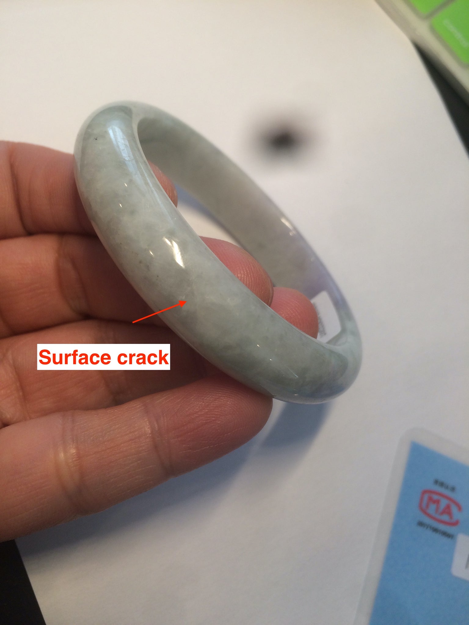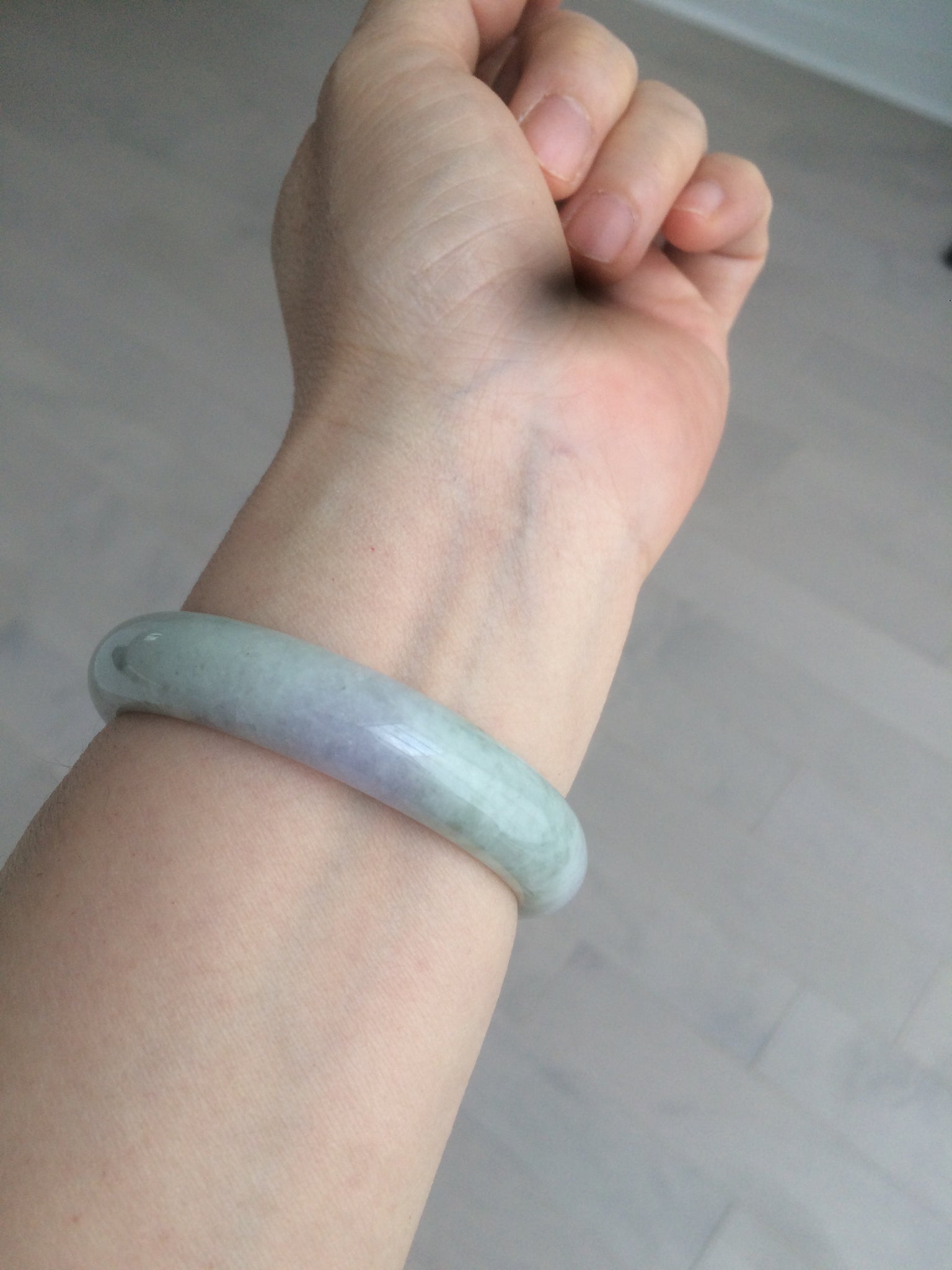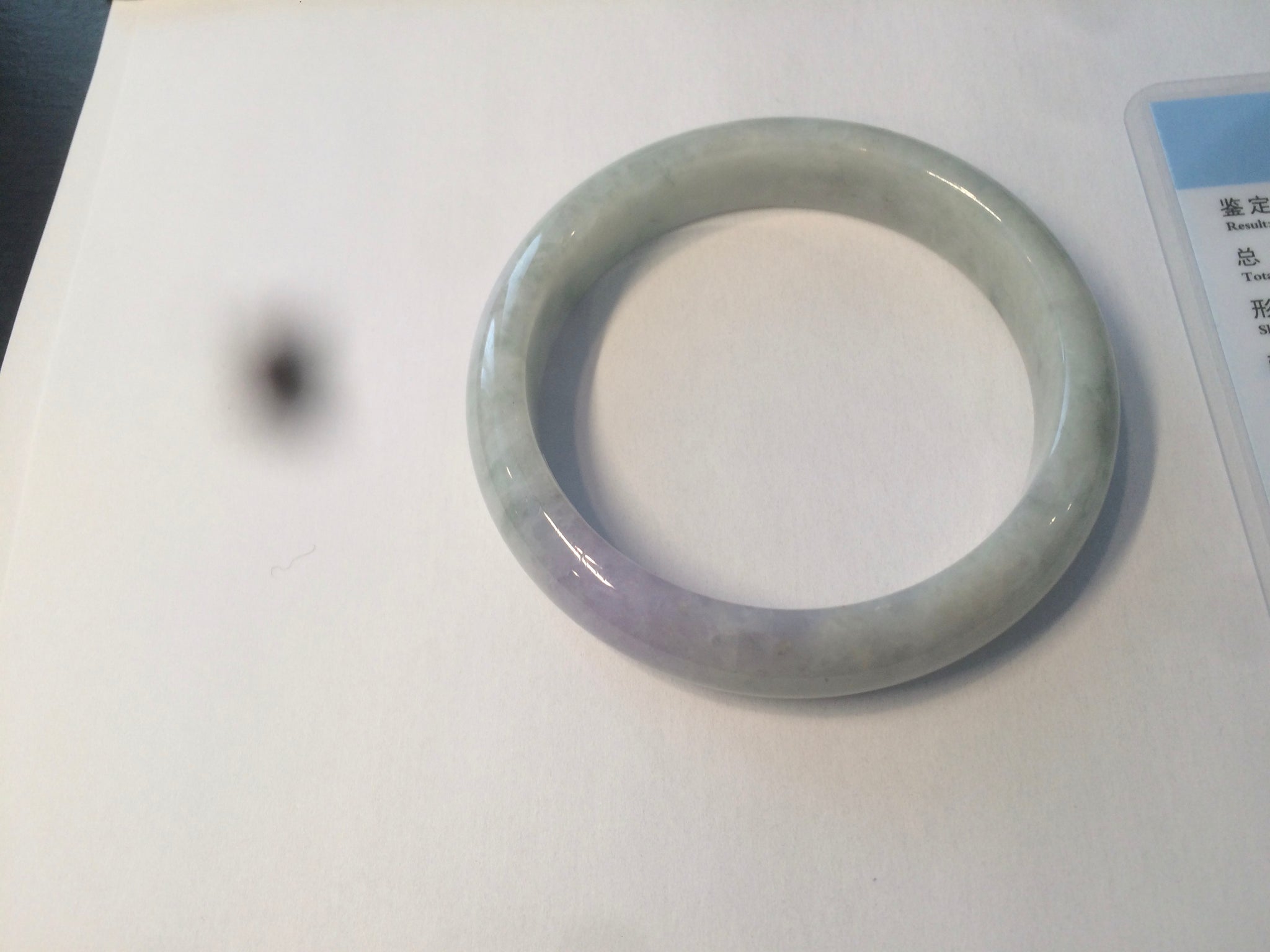 One surface crack Some rough surfaces. Some hairilne and cotton lines. The texture is not so fine. Some jade structures can be seen. Blisters. Some cotton lines and cotton spots. No transparent. Not watery. The purple is lighter than in the photos due to the purple being always more camera-friendly.