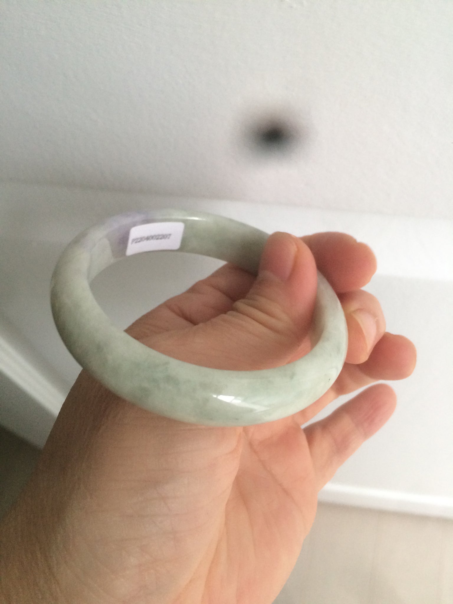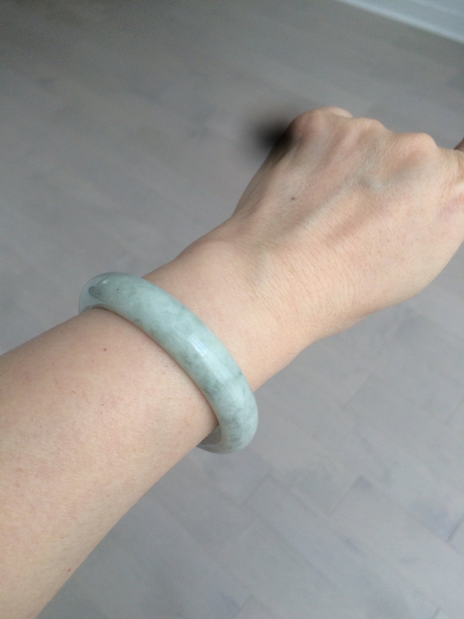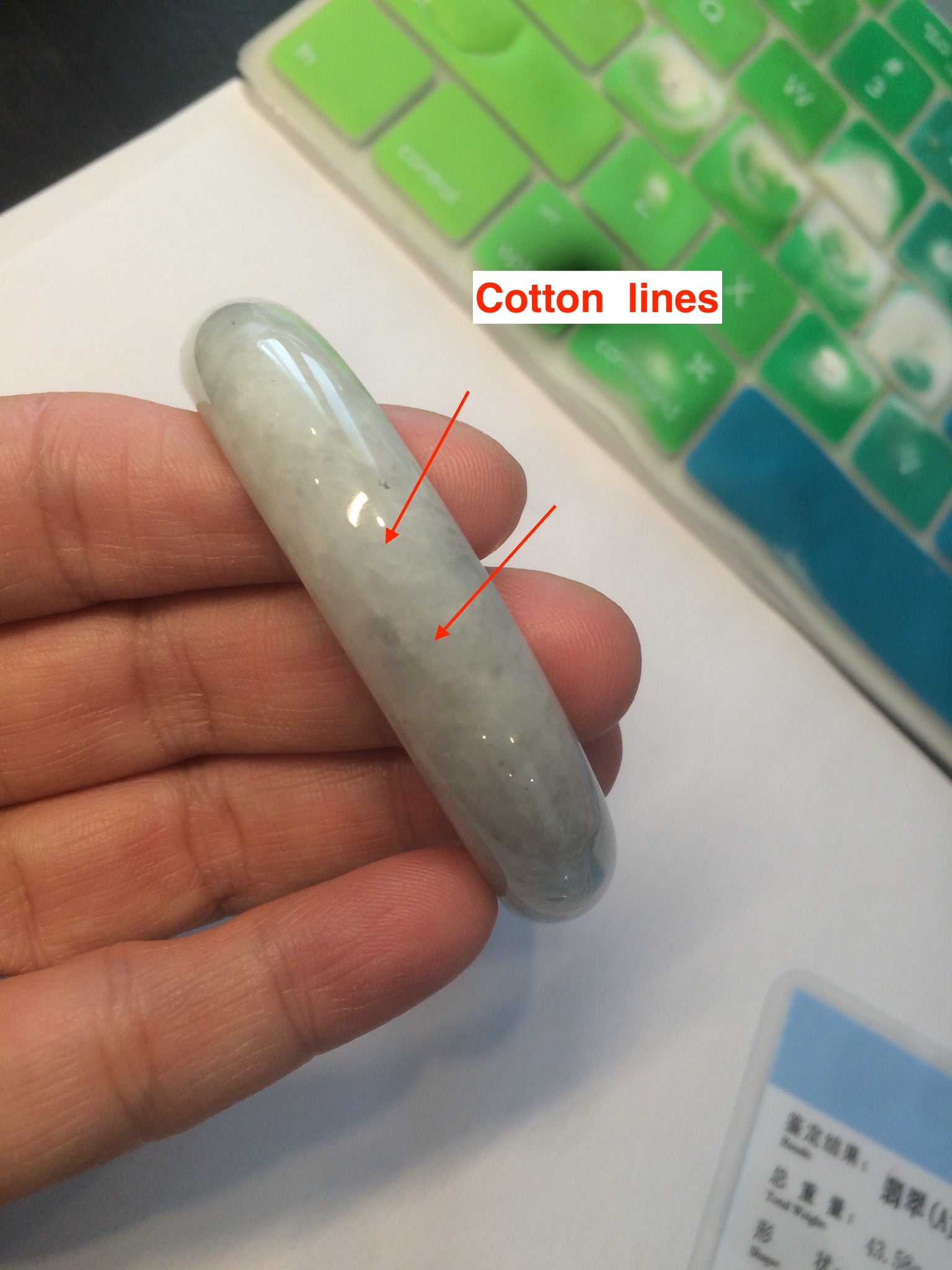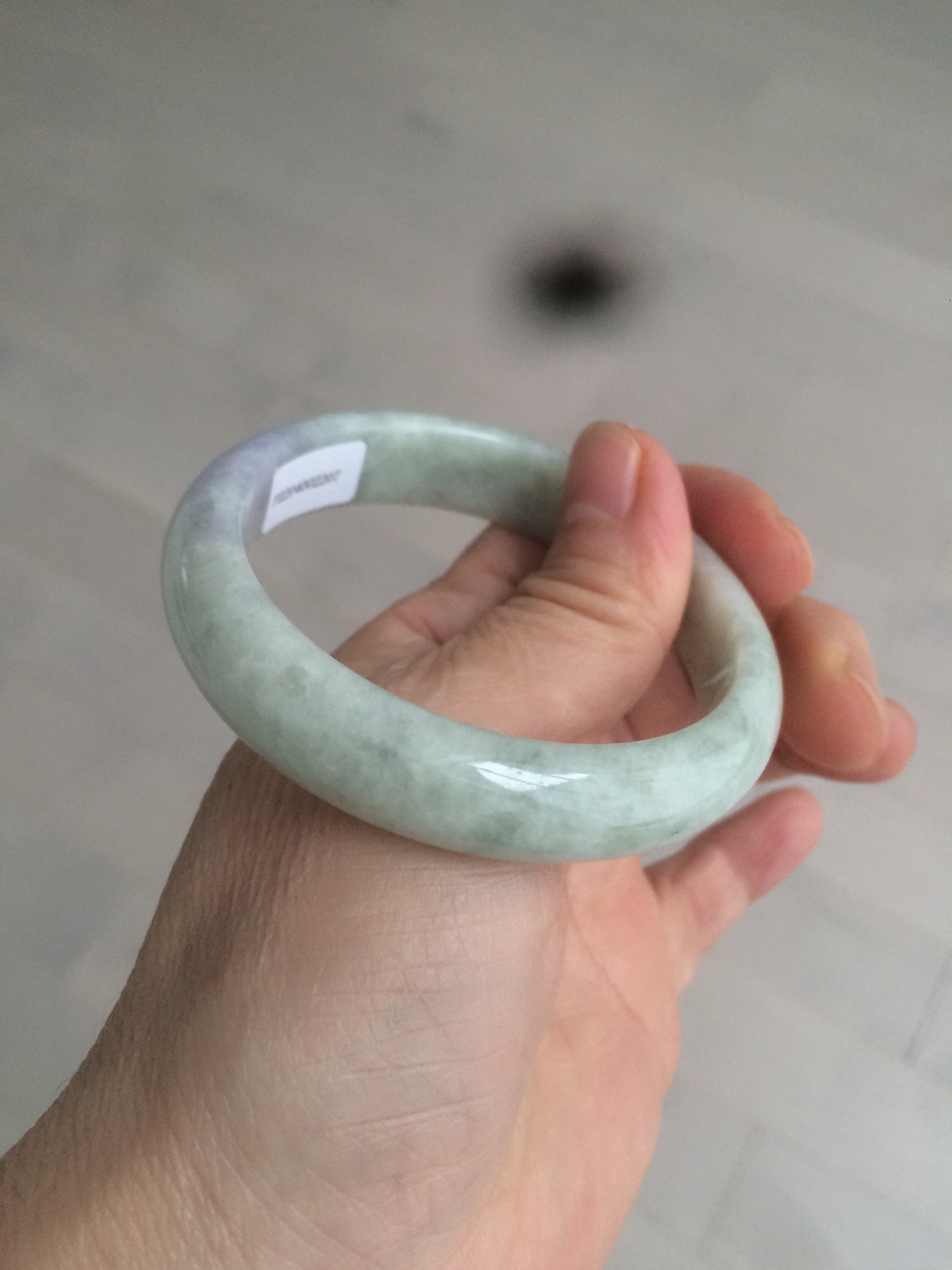 One surface crack Some rough surfaces. Some hairilne and cotton lines. The texture is not so fine. Some jade structures can be seen. Blisters. Some cotton lines and cotton spots. No transparent. Not watery. The purple is lighter than in the photos due to the purple being always more camera-friendly.