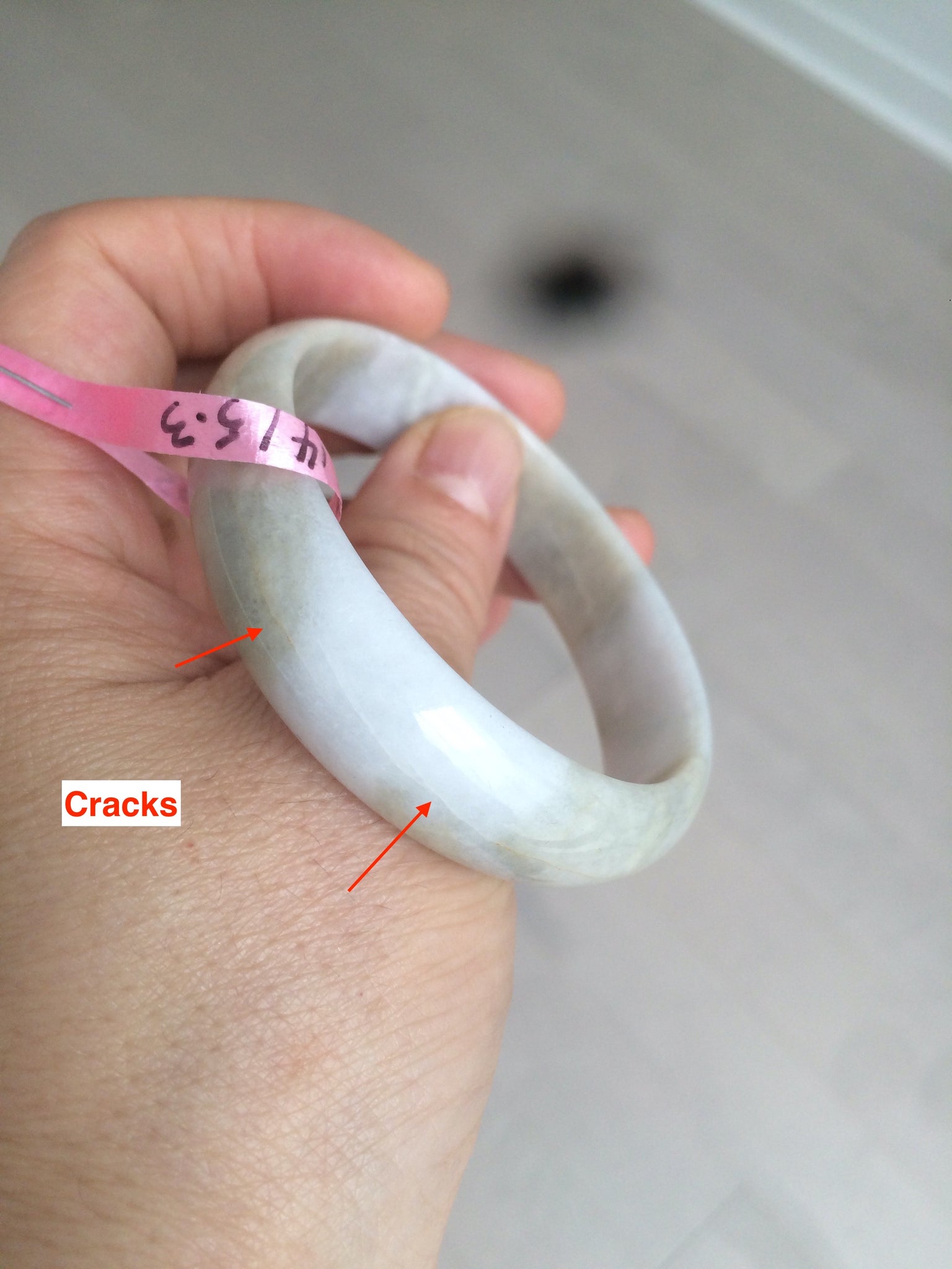 Imperfections: Some cracks. Alone side the bangle. Won't influence the firmness.Some cotton lines. Some cotton spots. Not transparent. Not transprent. Not watery. The purple is super light. Lighter than in the photos.