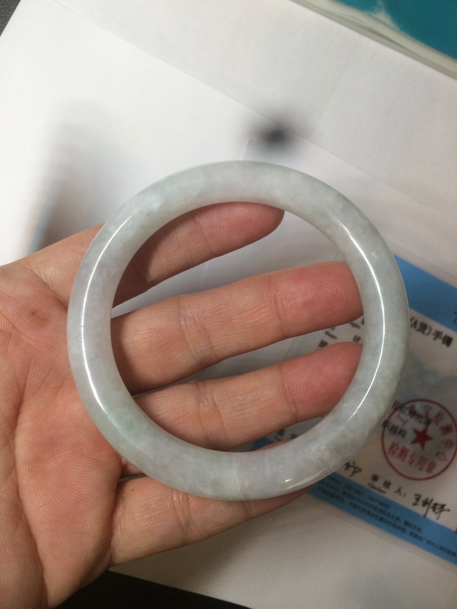 Some cracks(More than 8, photos may not show all). Some of the cracks may be around the bangle. But the bangle is still solid(guaranteed!). Some hairlines and cotton lines, cotton areas and spots.
