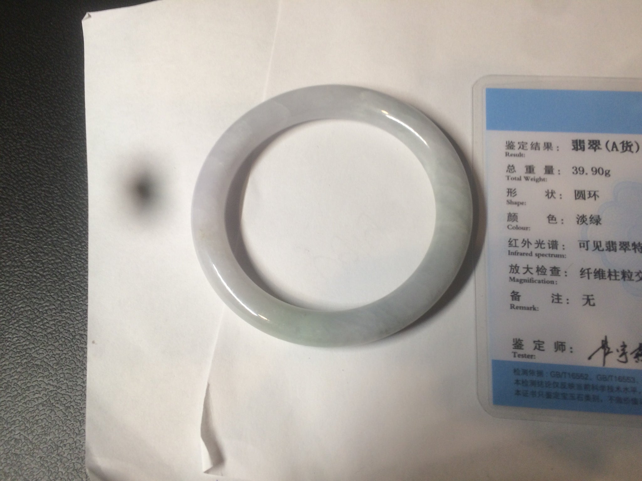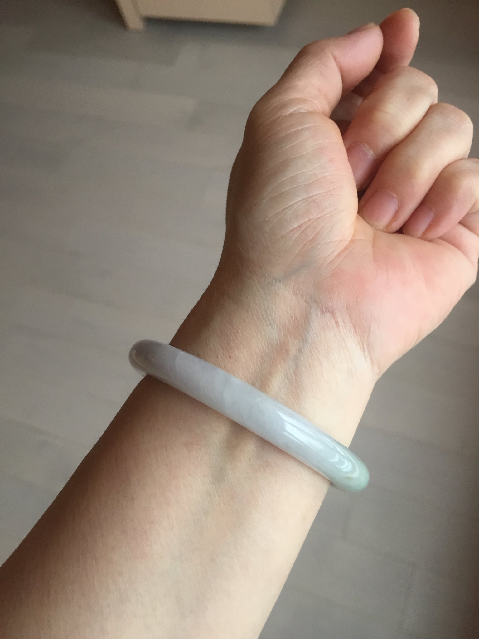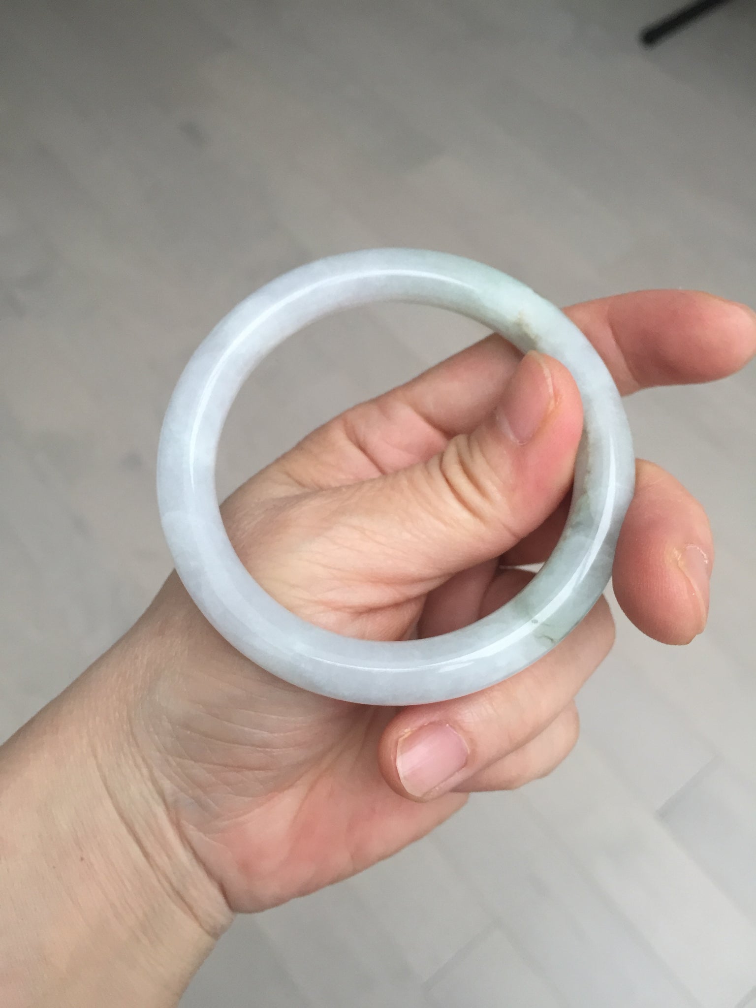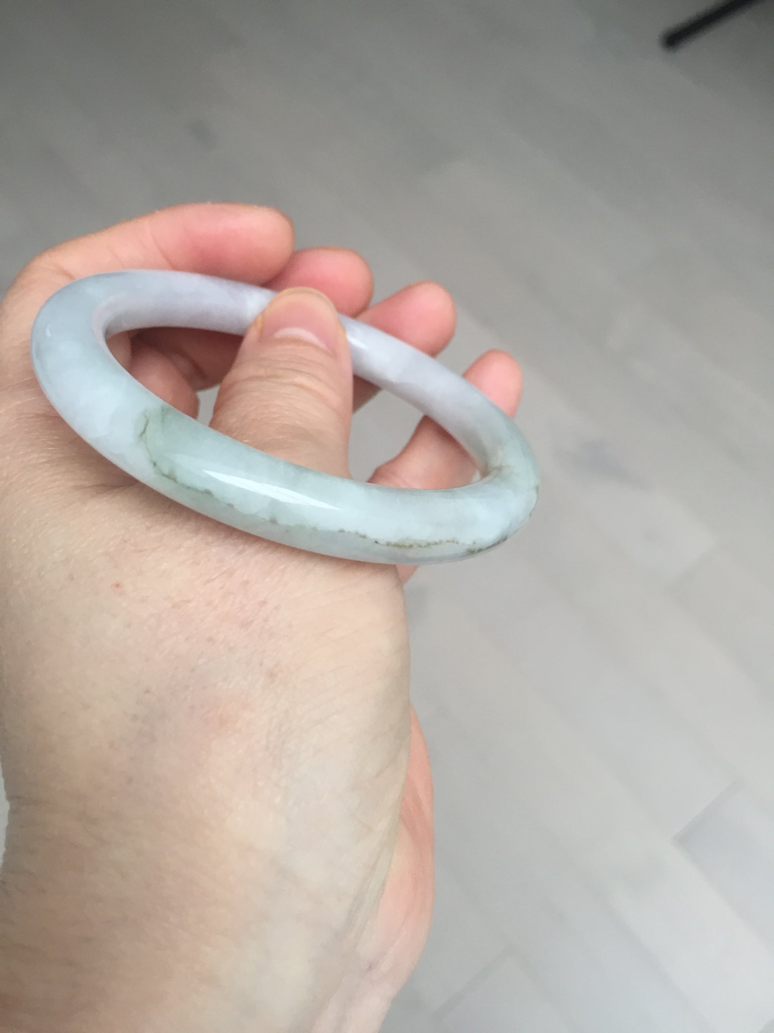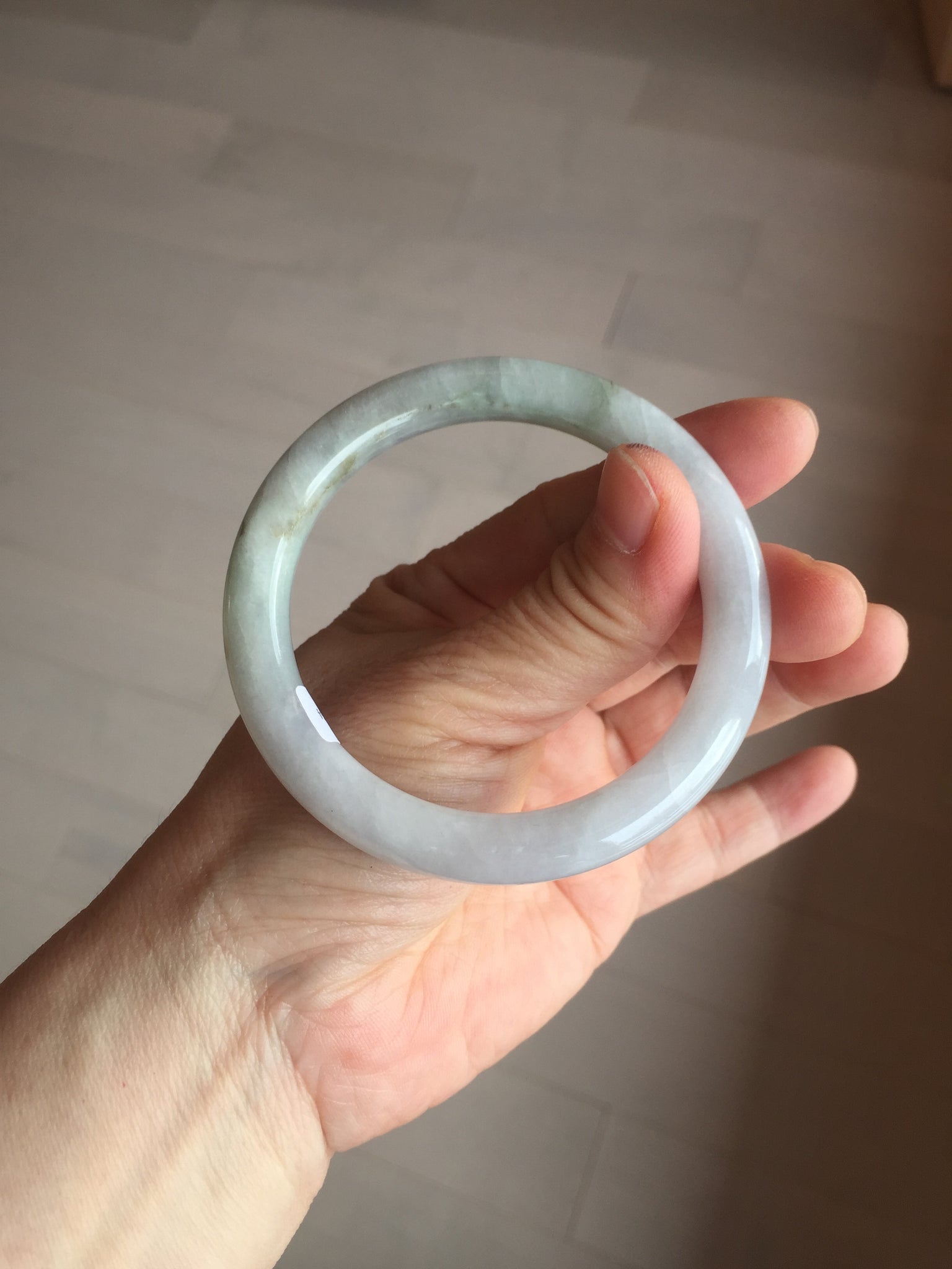 54mm certificated Type A 100% Natural light green/white round cut Jadeite Jade bangle BK70-9864