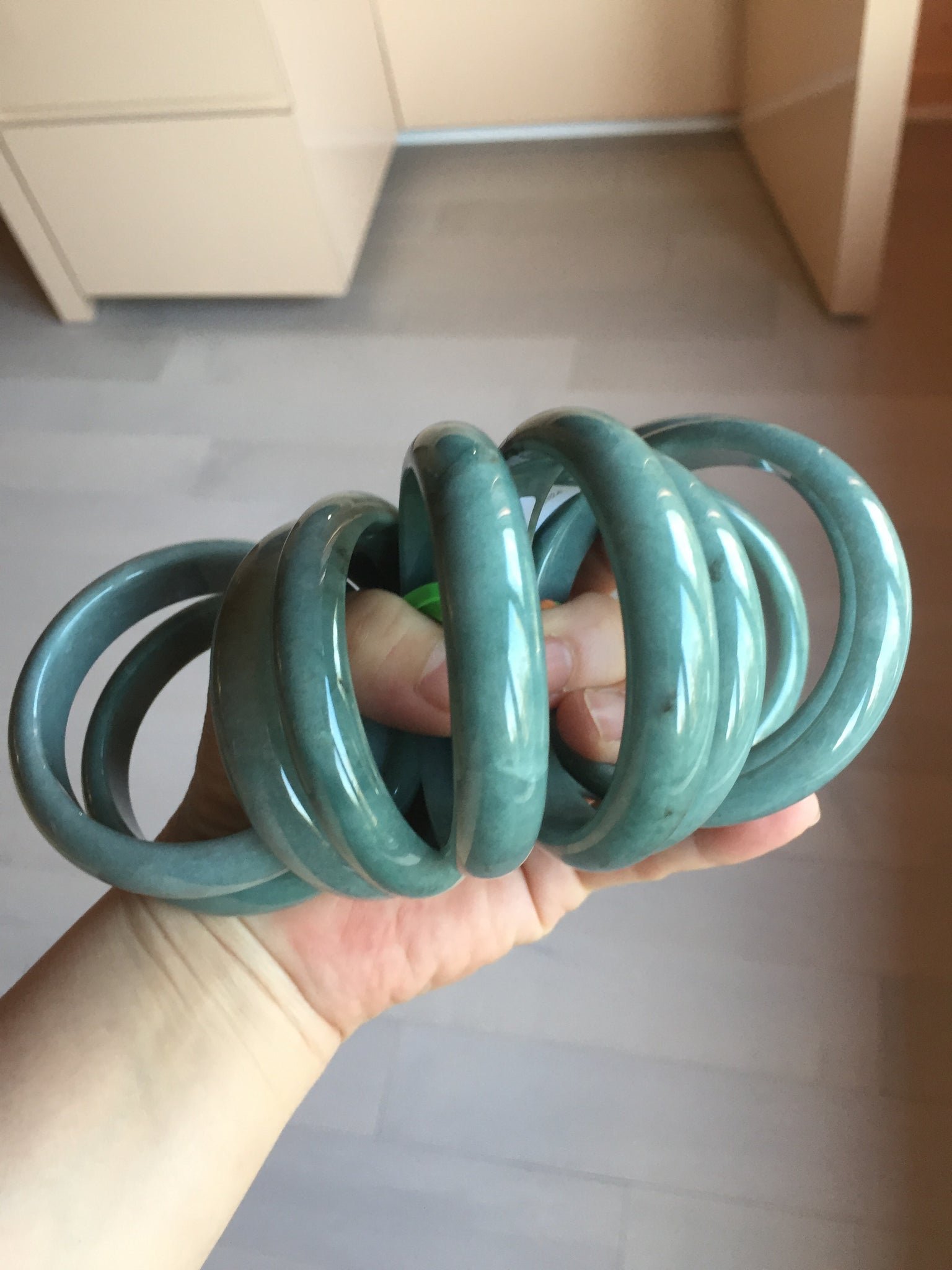 Jadeite Jade Bangles in size 53-54mm. They more or less have defects but guarantee firmness.
