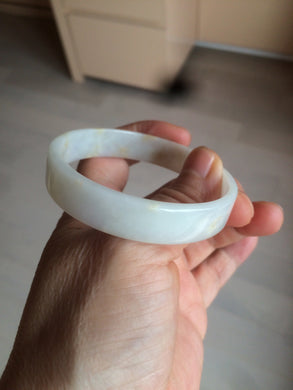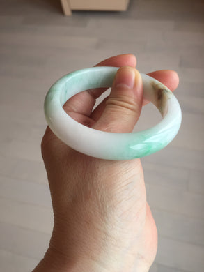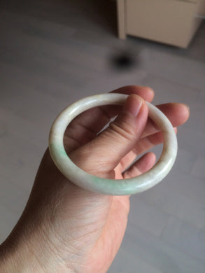 54mm certificated Type A 100% Natural light green/white round cut Jadeite Jade bangle BK70-9864