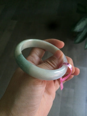 52mm Certified Type A 100% Natural light green/white Jadeite Jade bangle Y69-8442