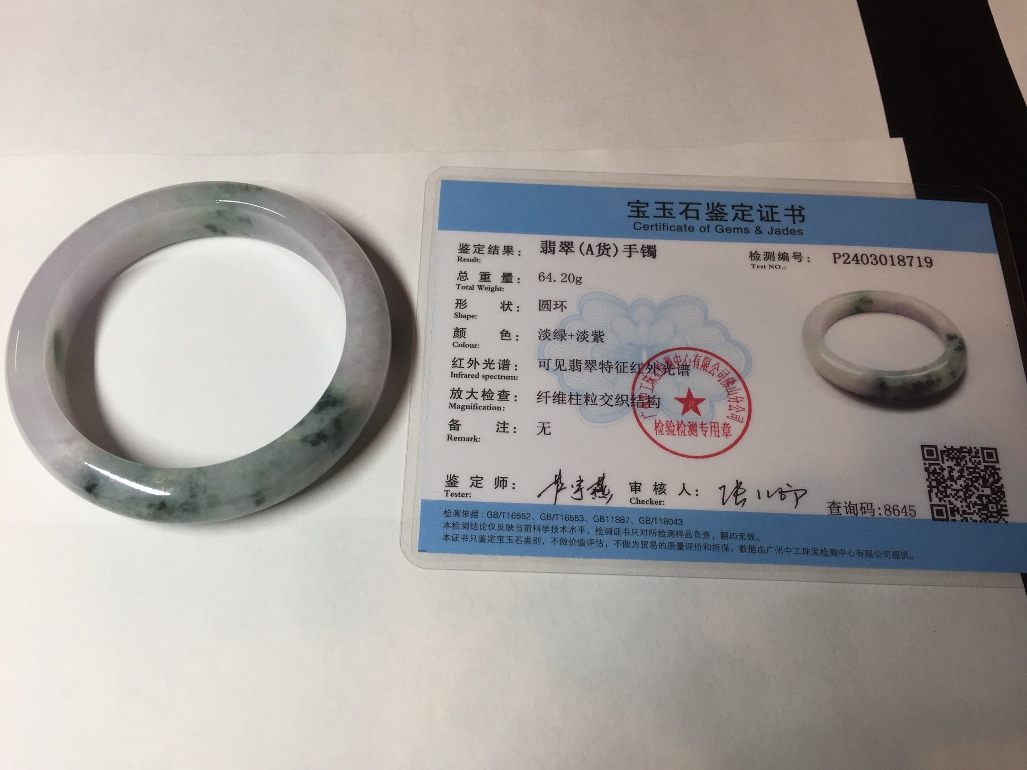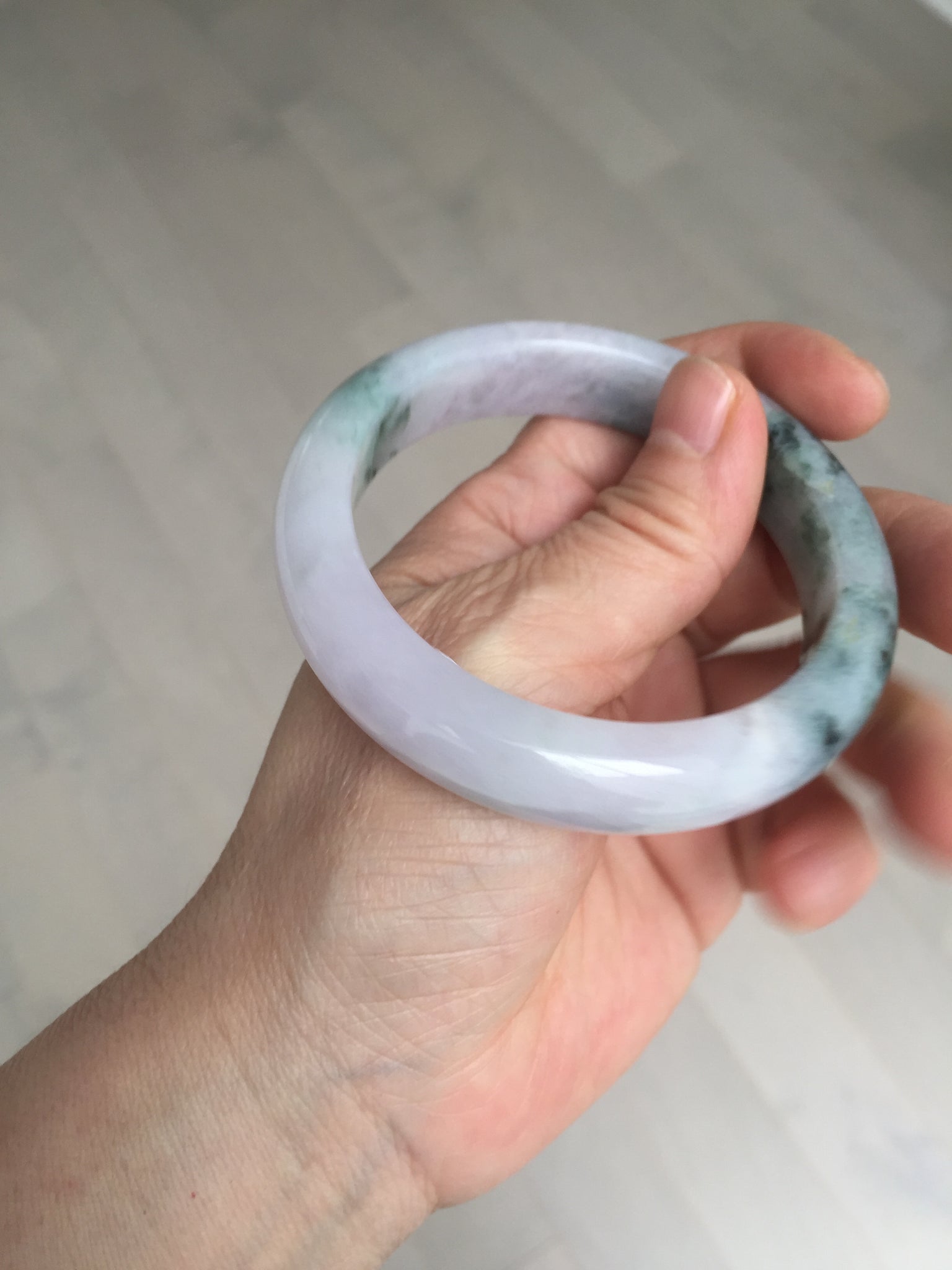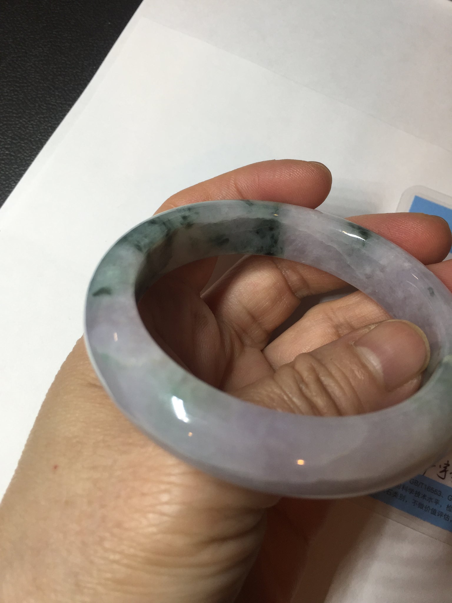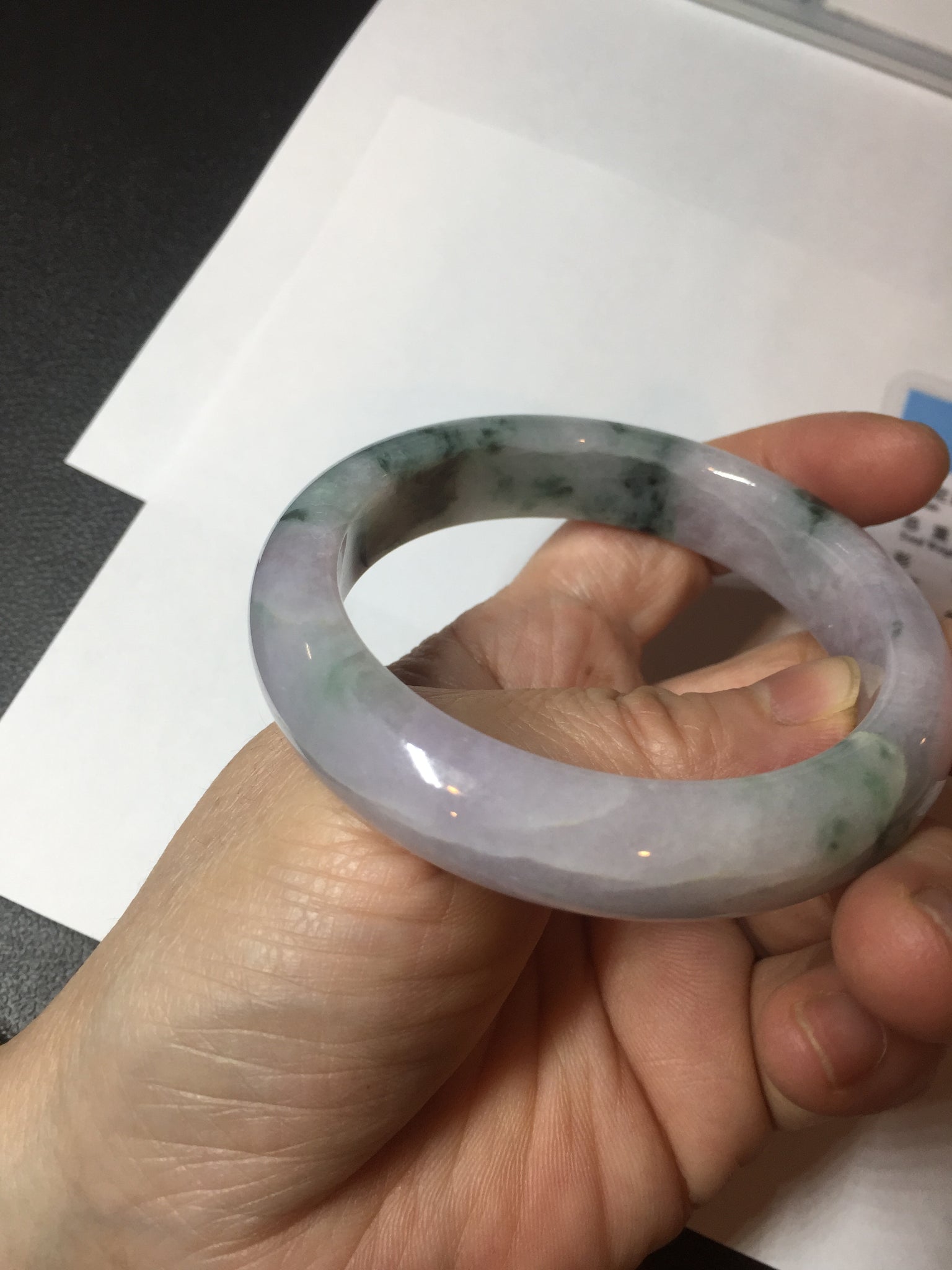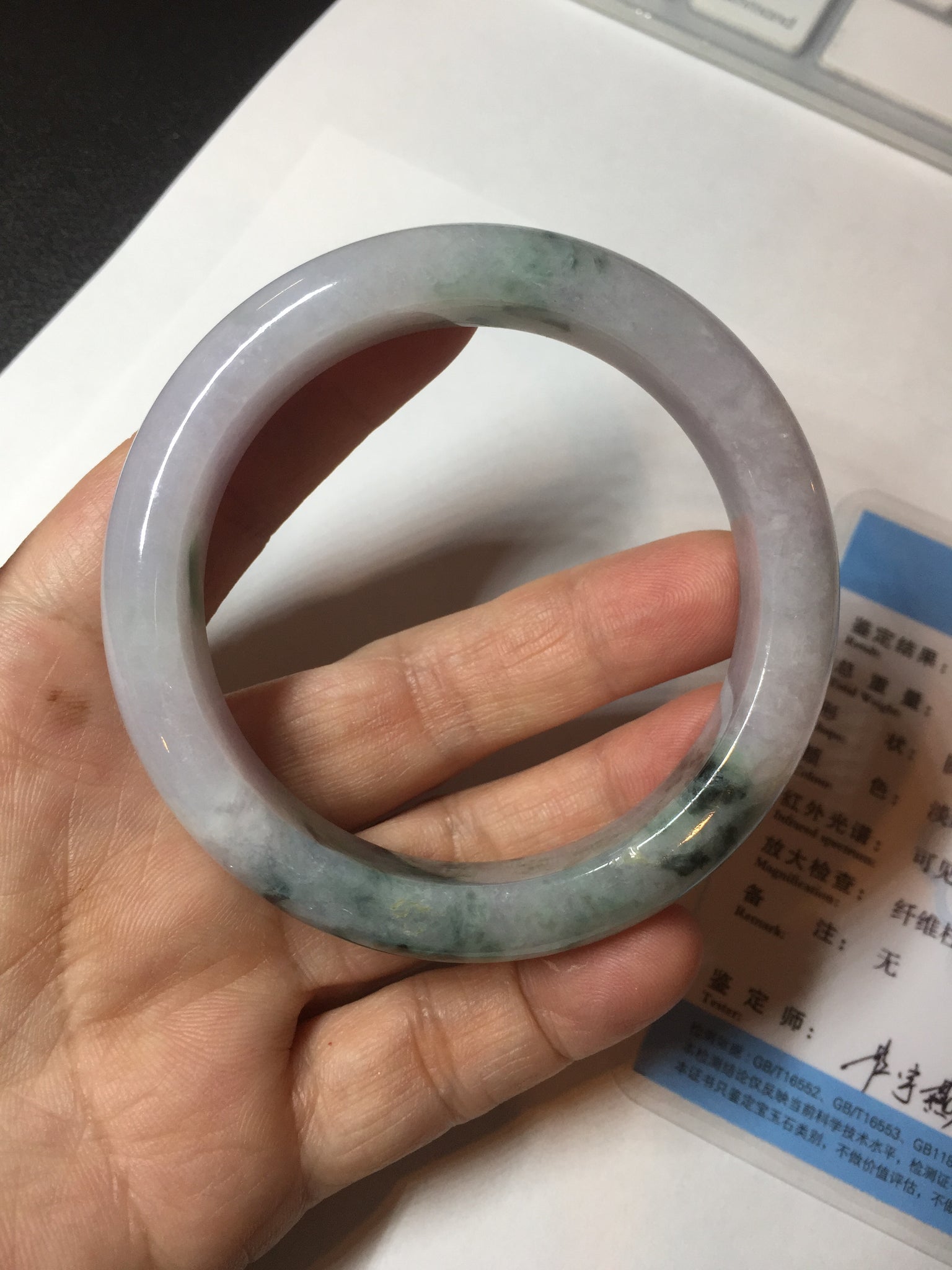 55.9mm Certified 100% natural Type A light purple with sunny flying flowers jadeite jade bangle BL106-8719