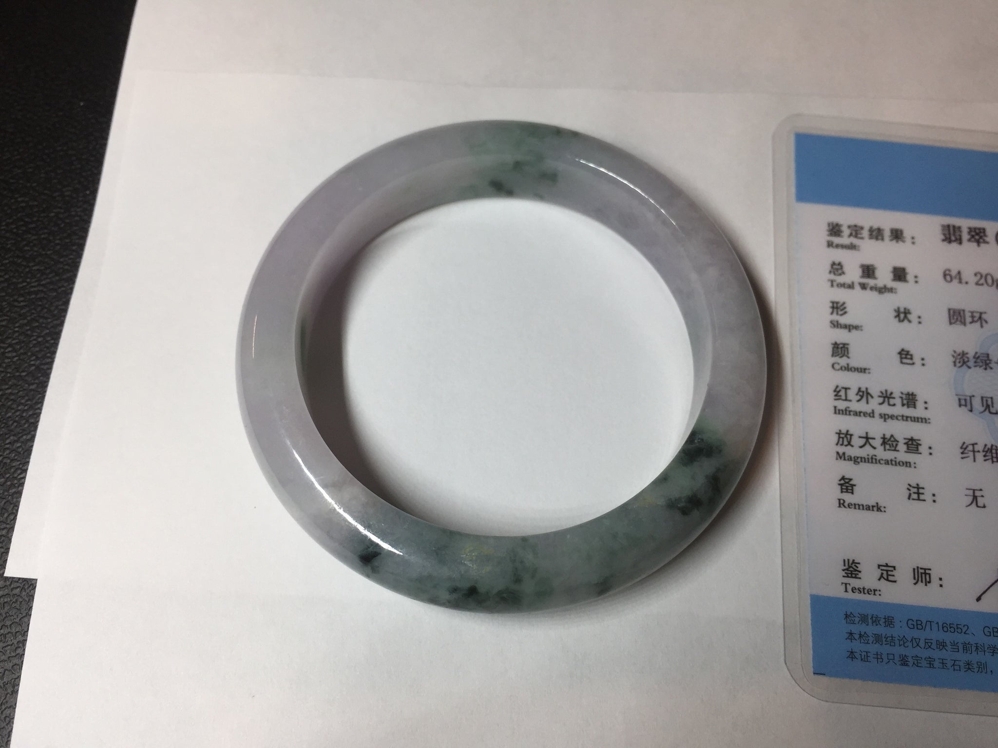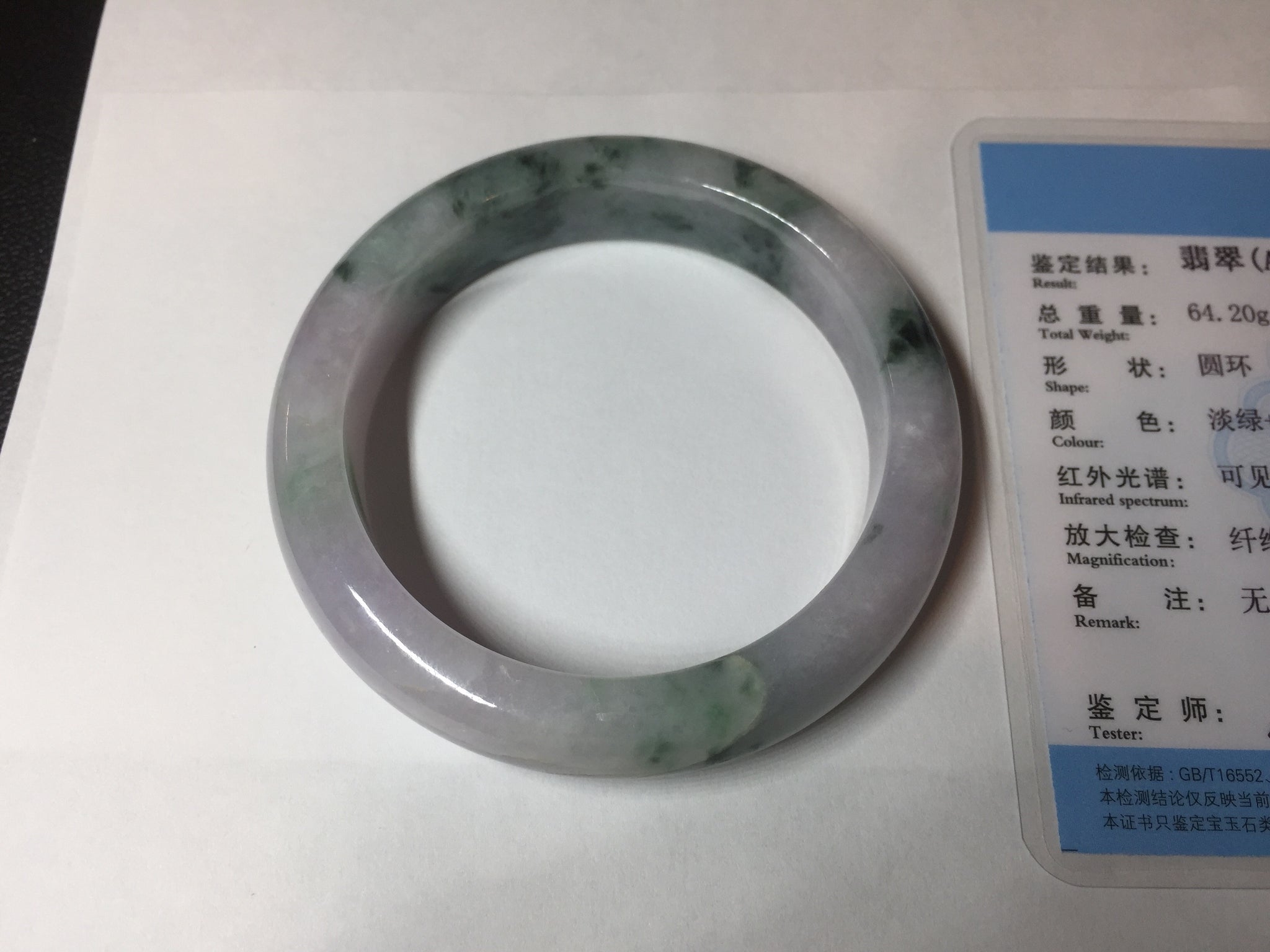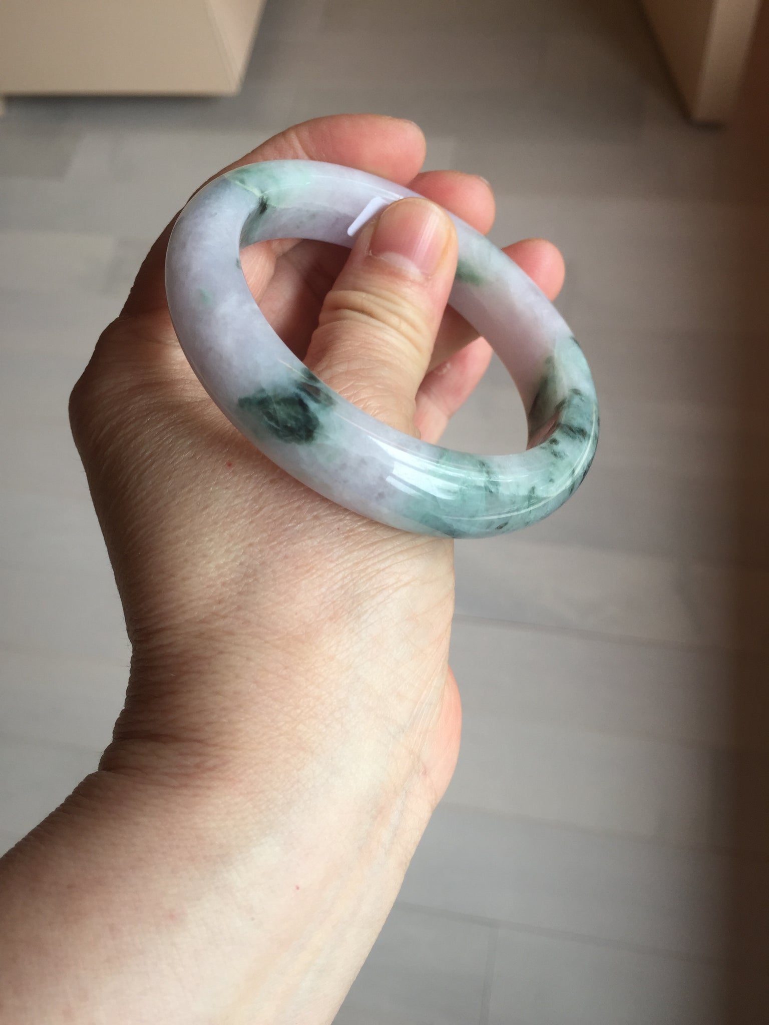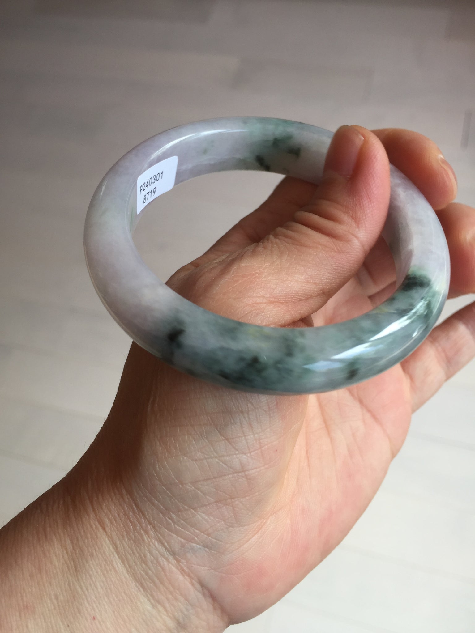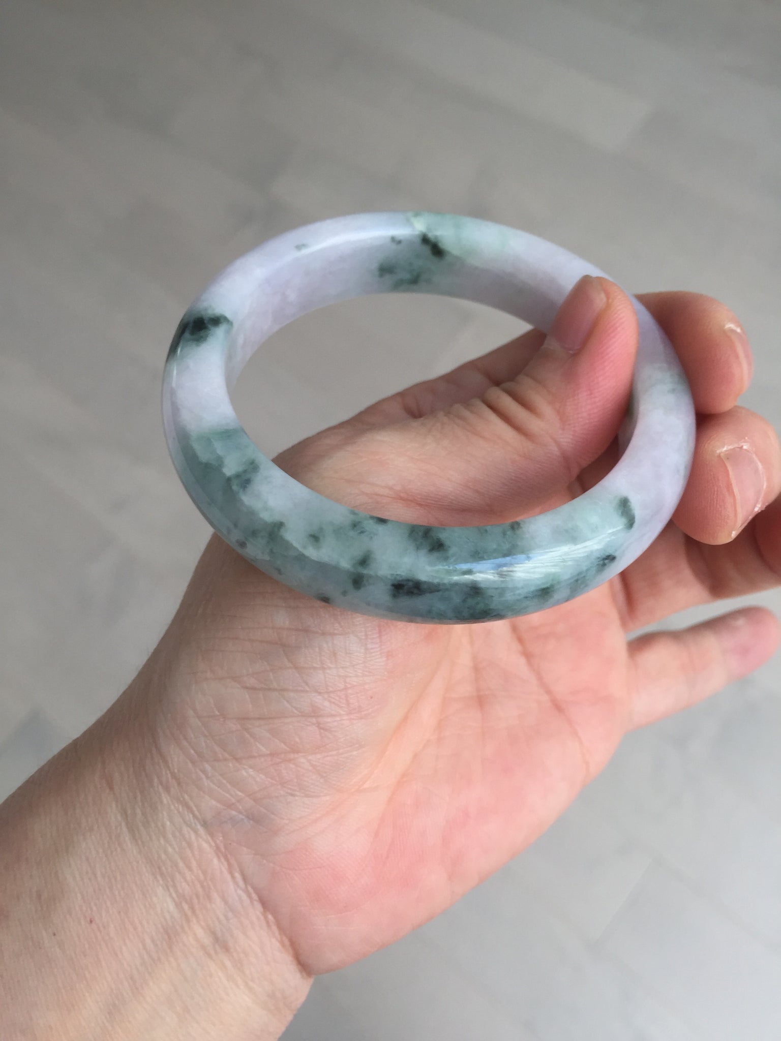 55.9mm Certified 100% natural Type A light purple with sunny flying flowers jadeite jade bangle BL106-8719