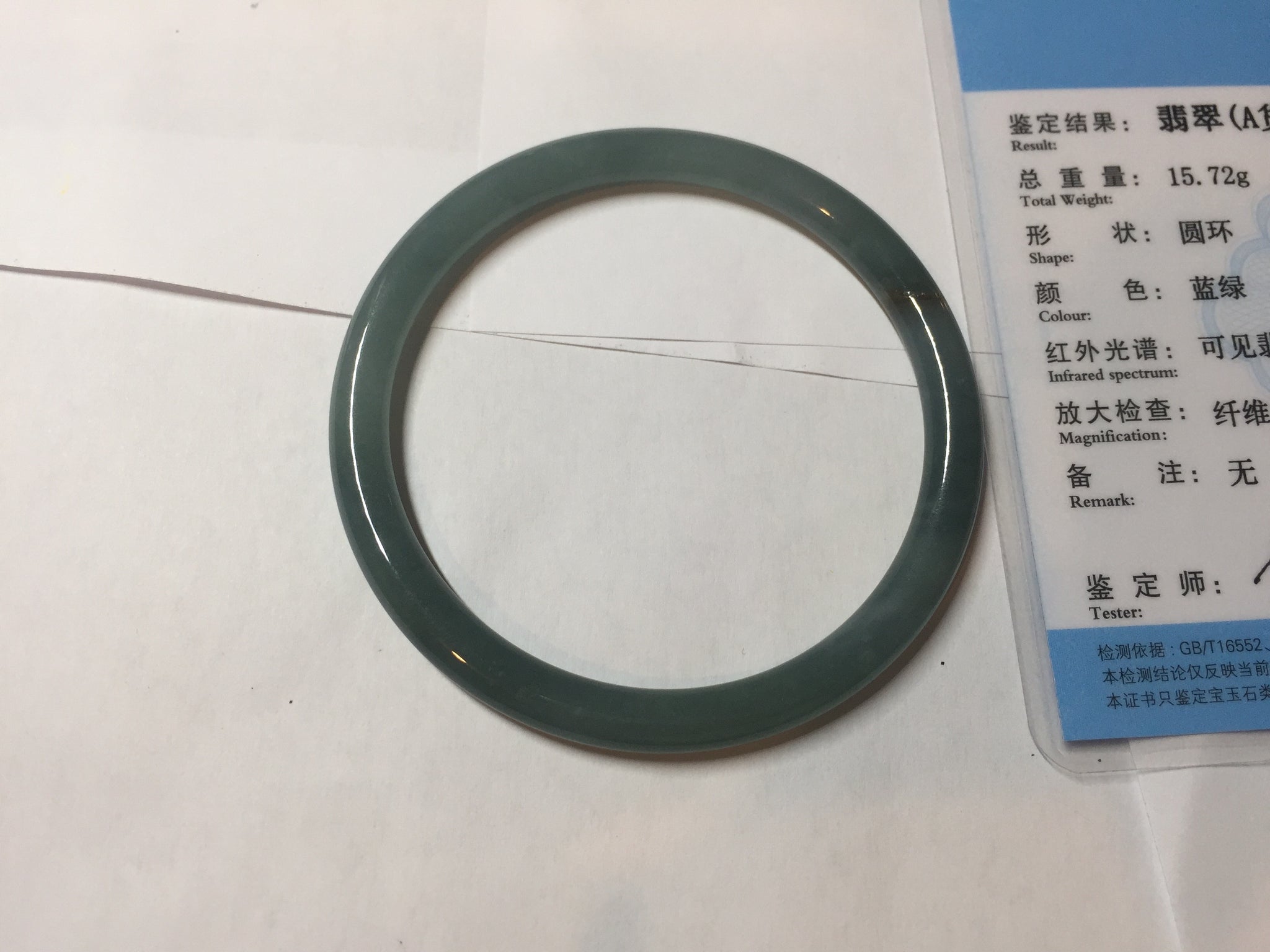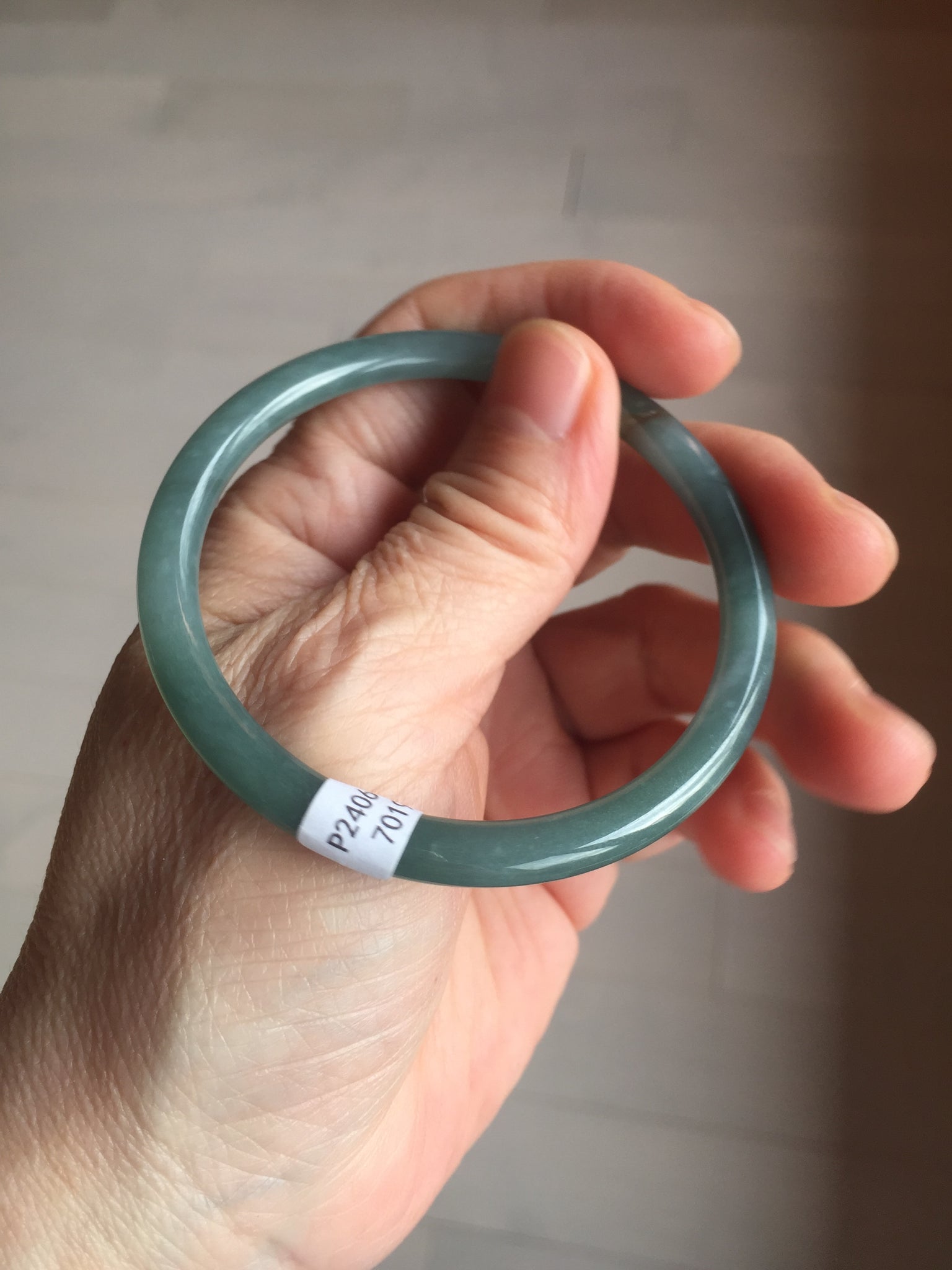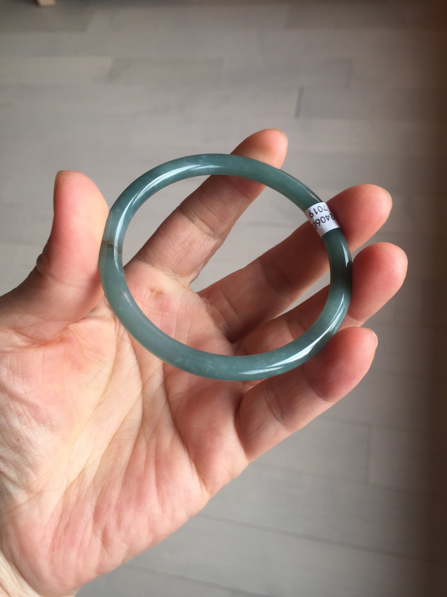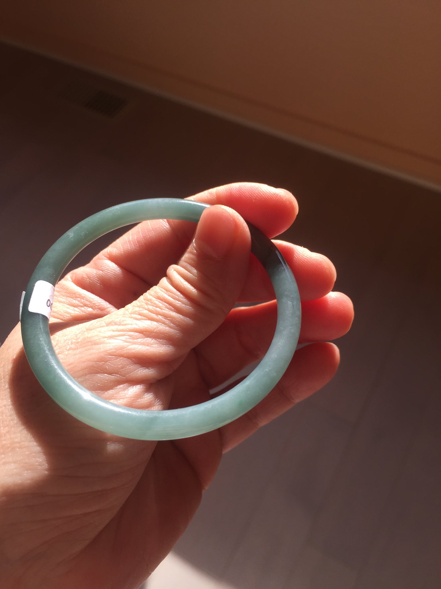 One brown mineral impurity band with rough surface or tiny mine pits. Some cotton areas, cotton lines, and cotton spots. Not transparent. The bangle has some gray/ black color.