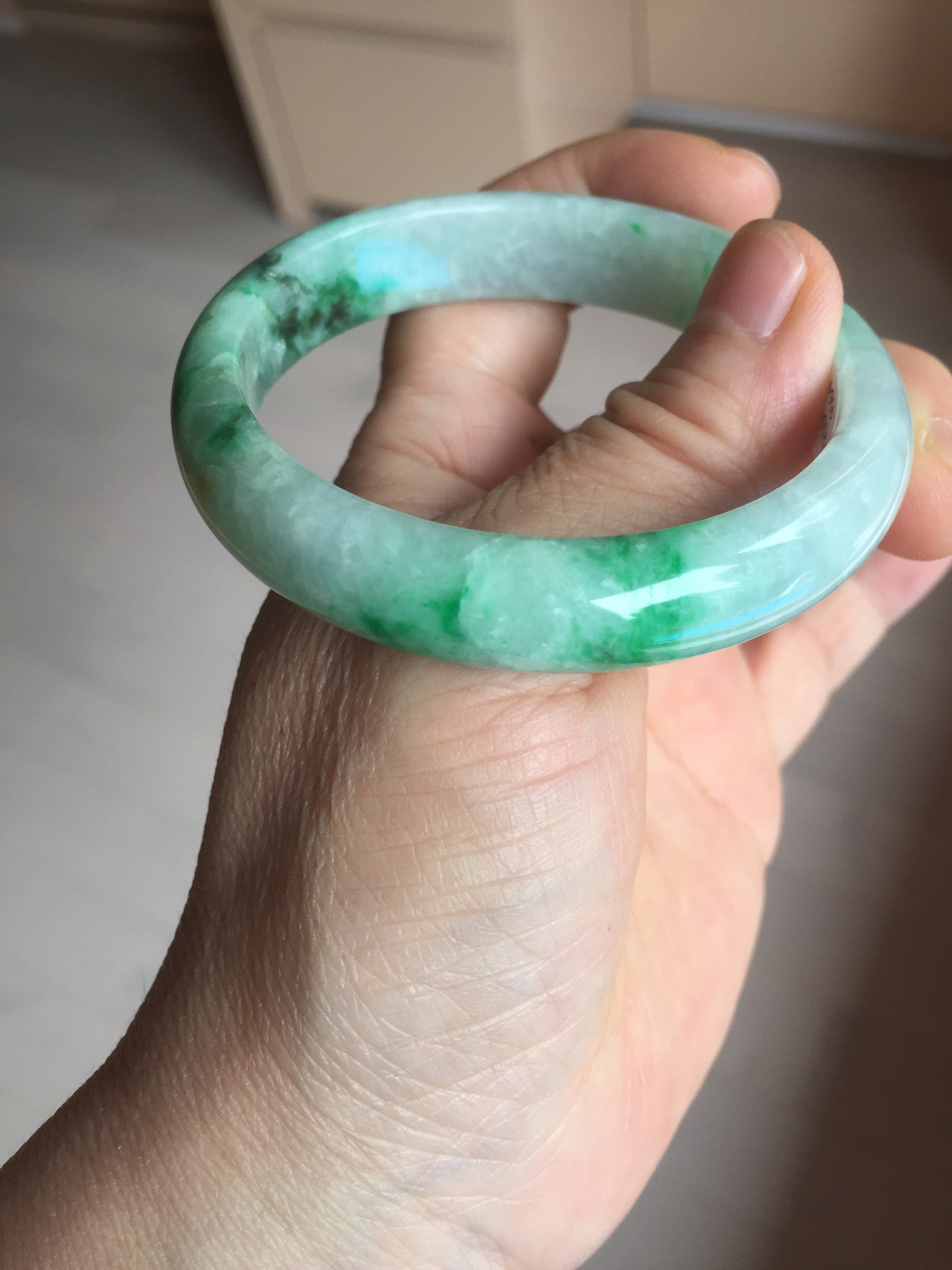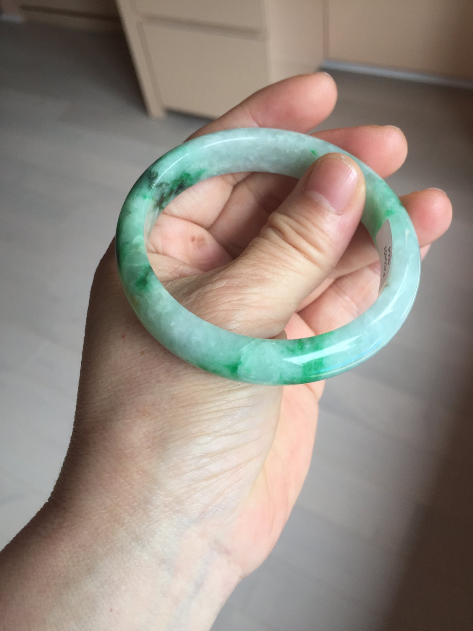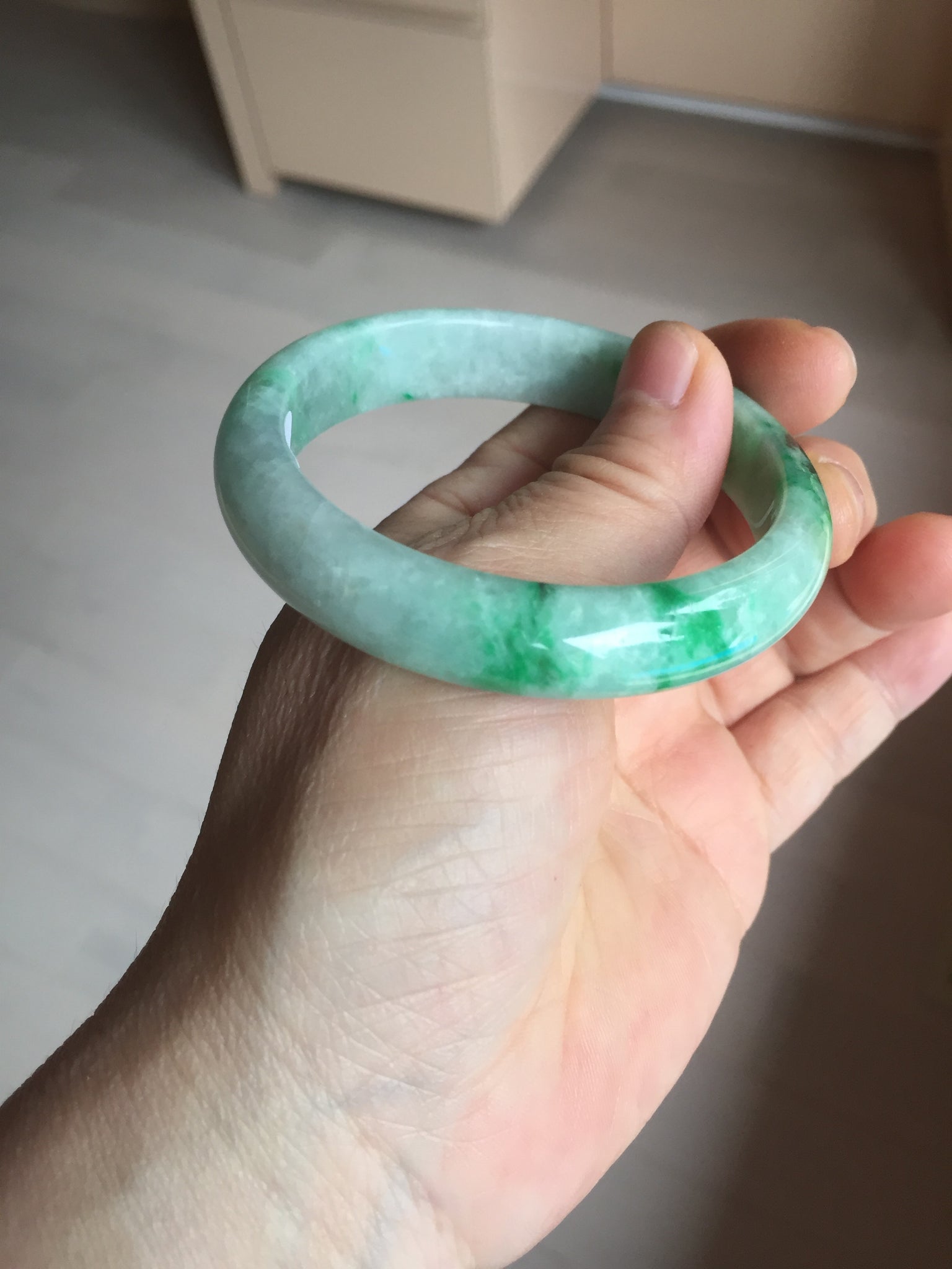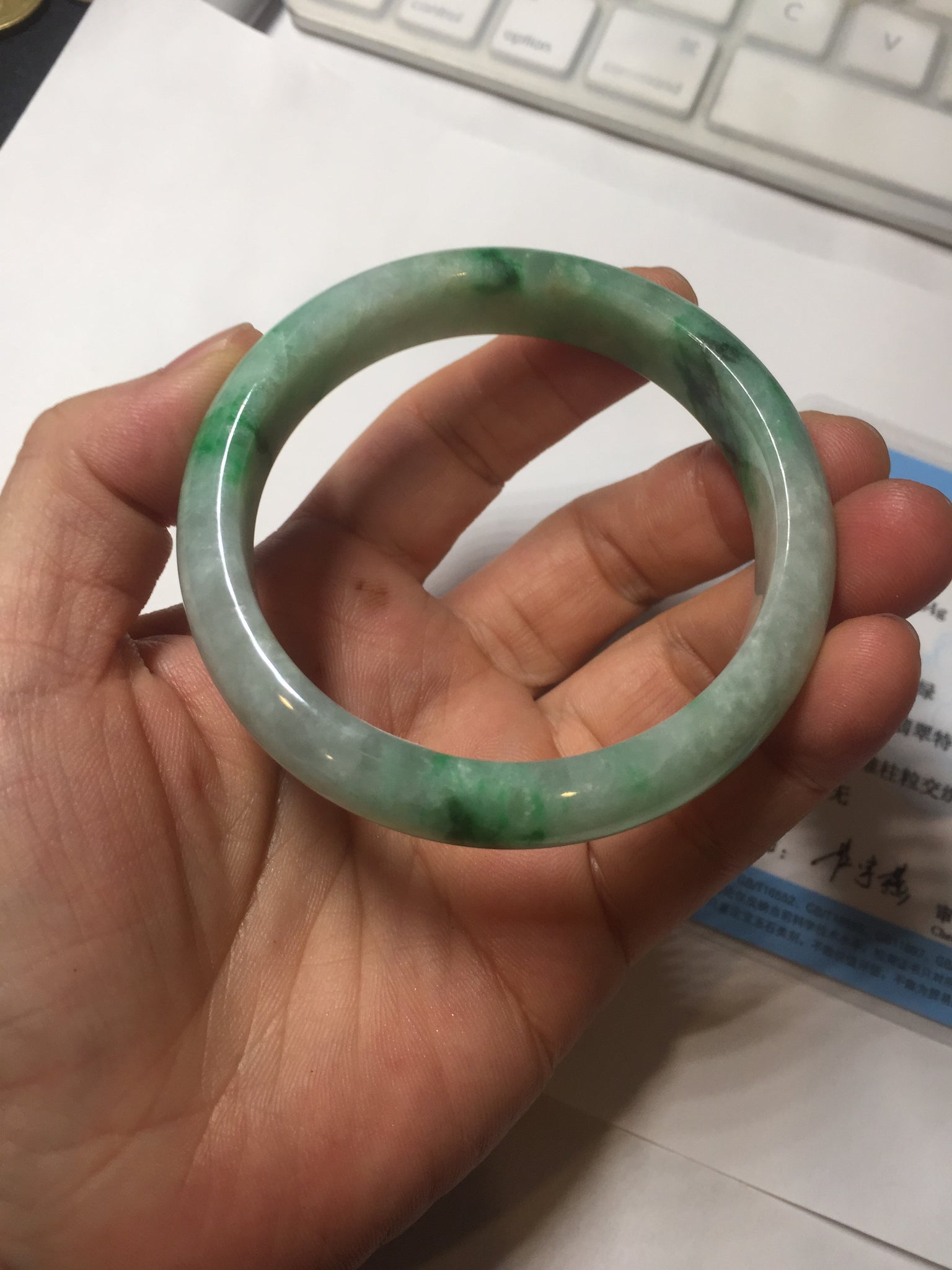 Some cracks. Some rough surface areas with surface fissures or cracks. The bangle is solid. Some hairlines. Some cotton lines and cotton spots. The texture is not delicate.