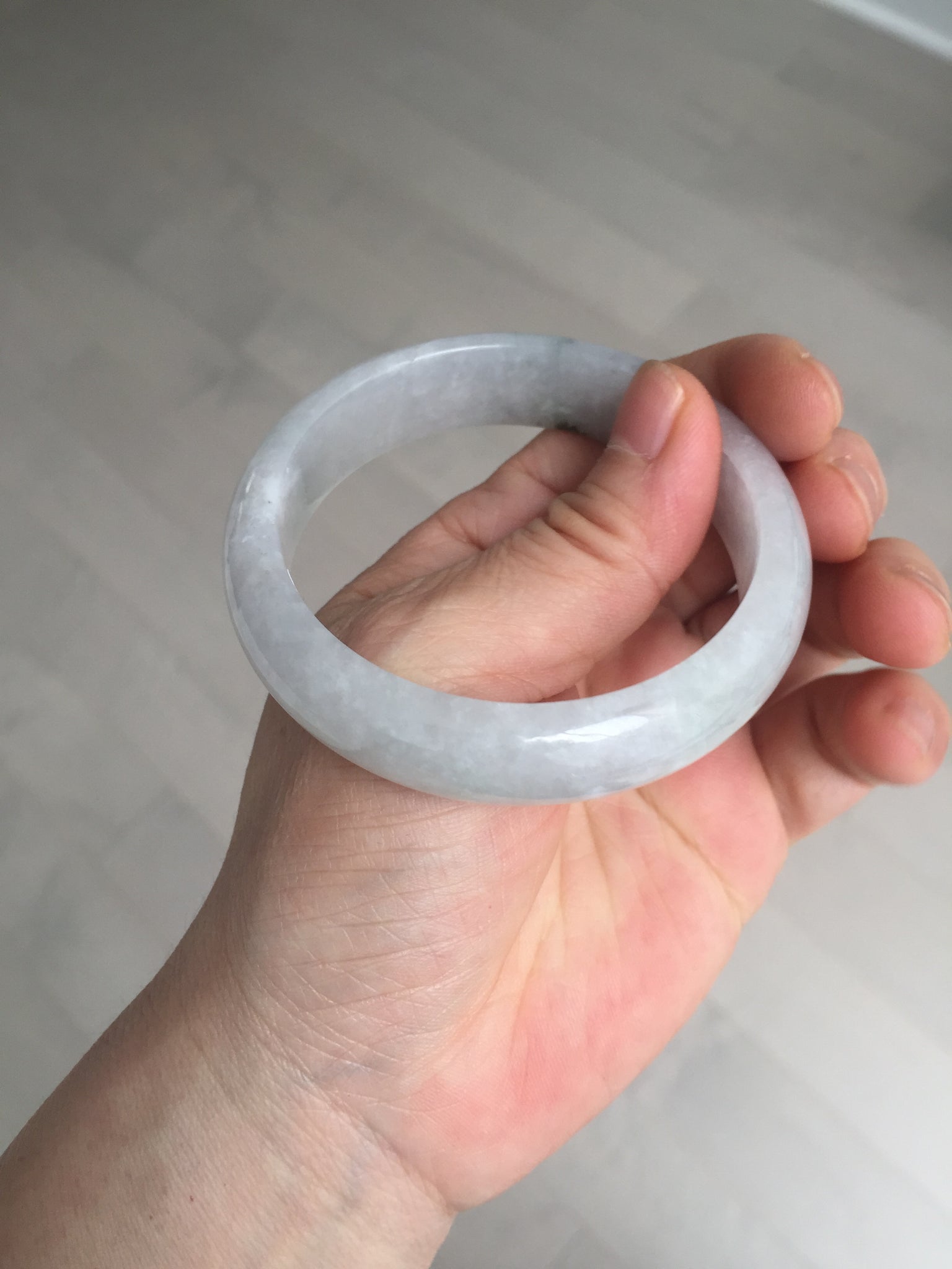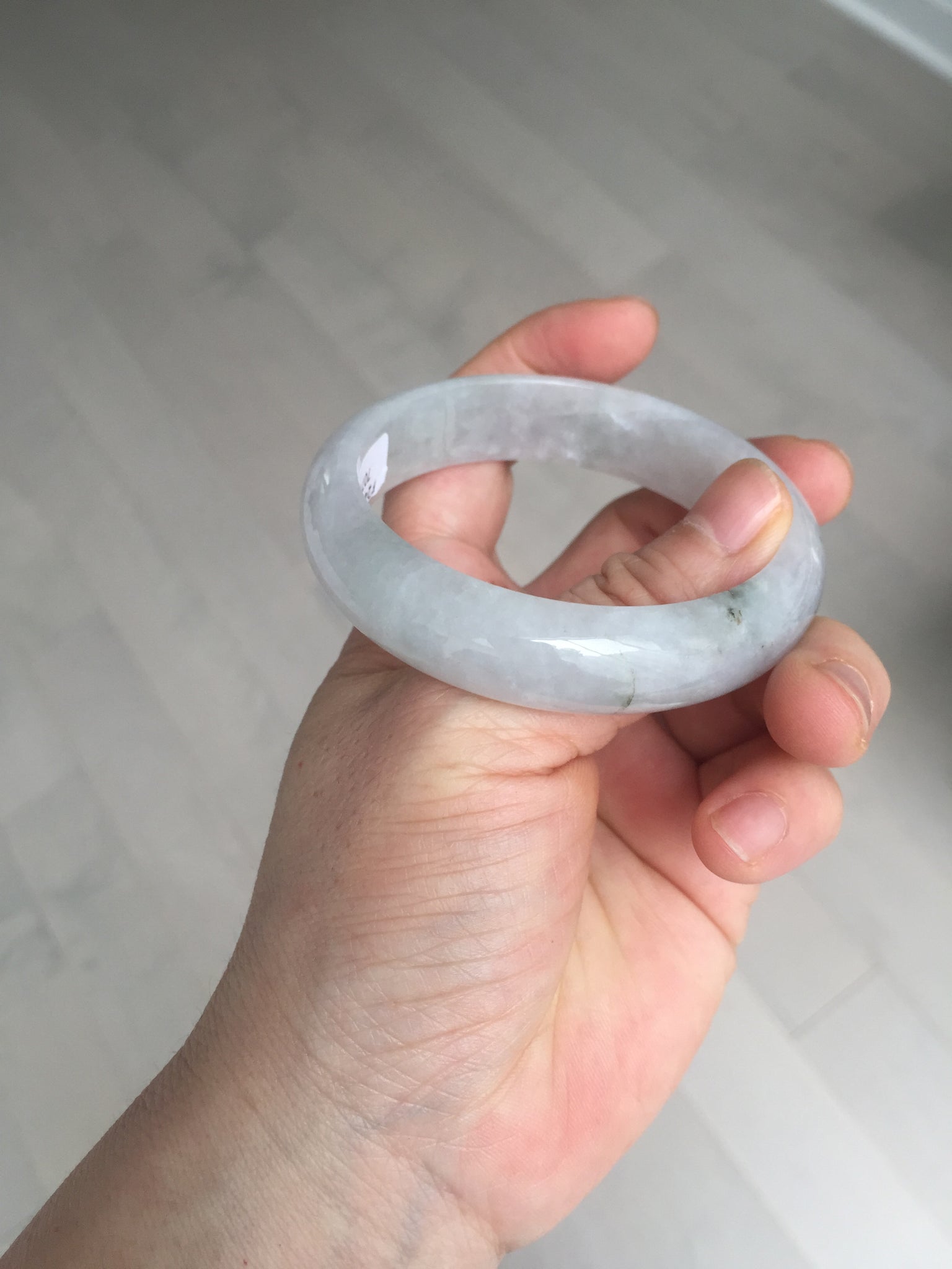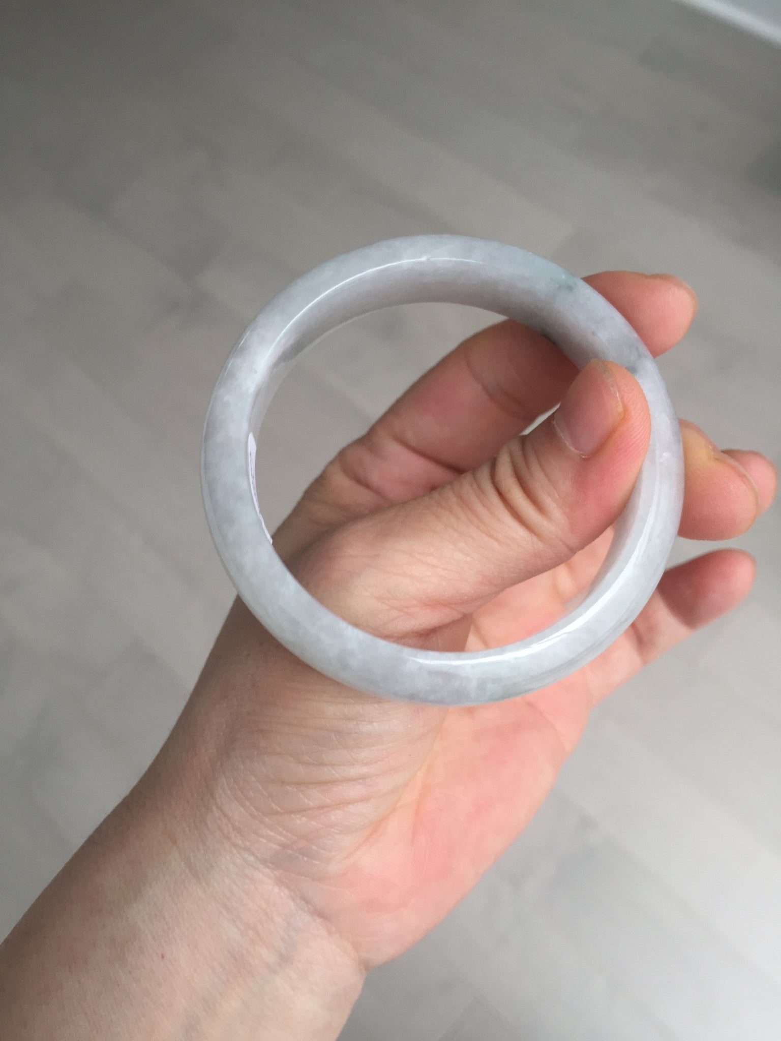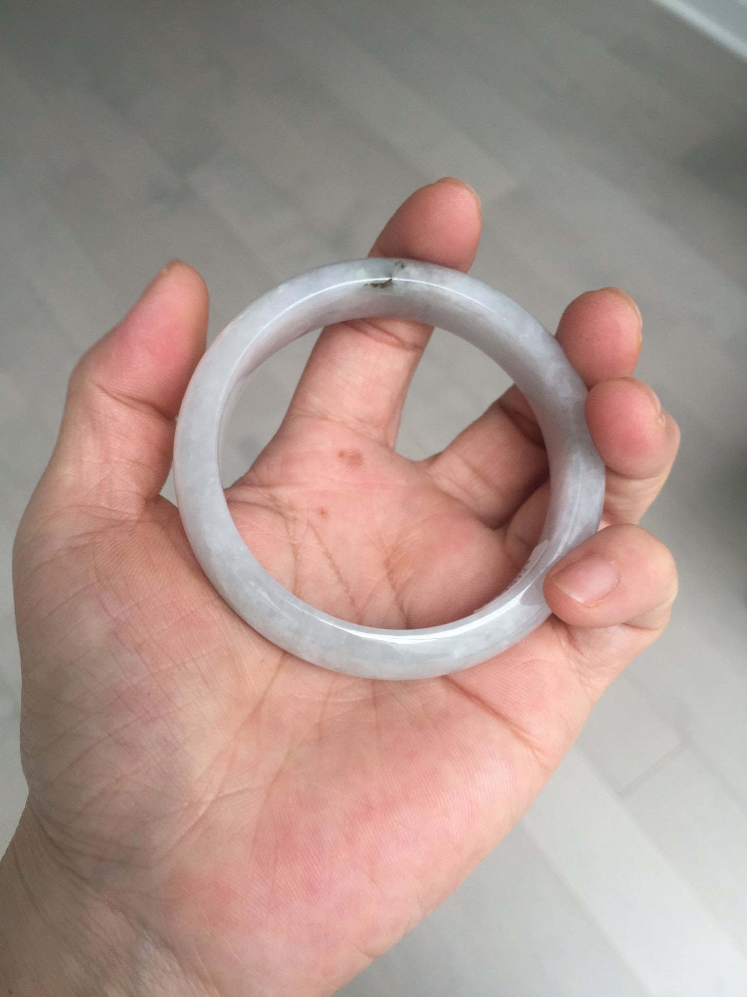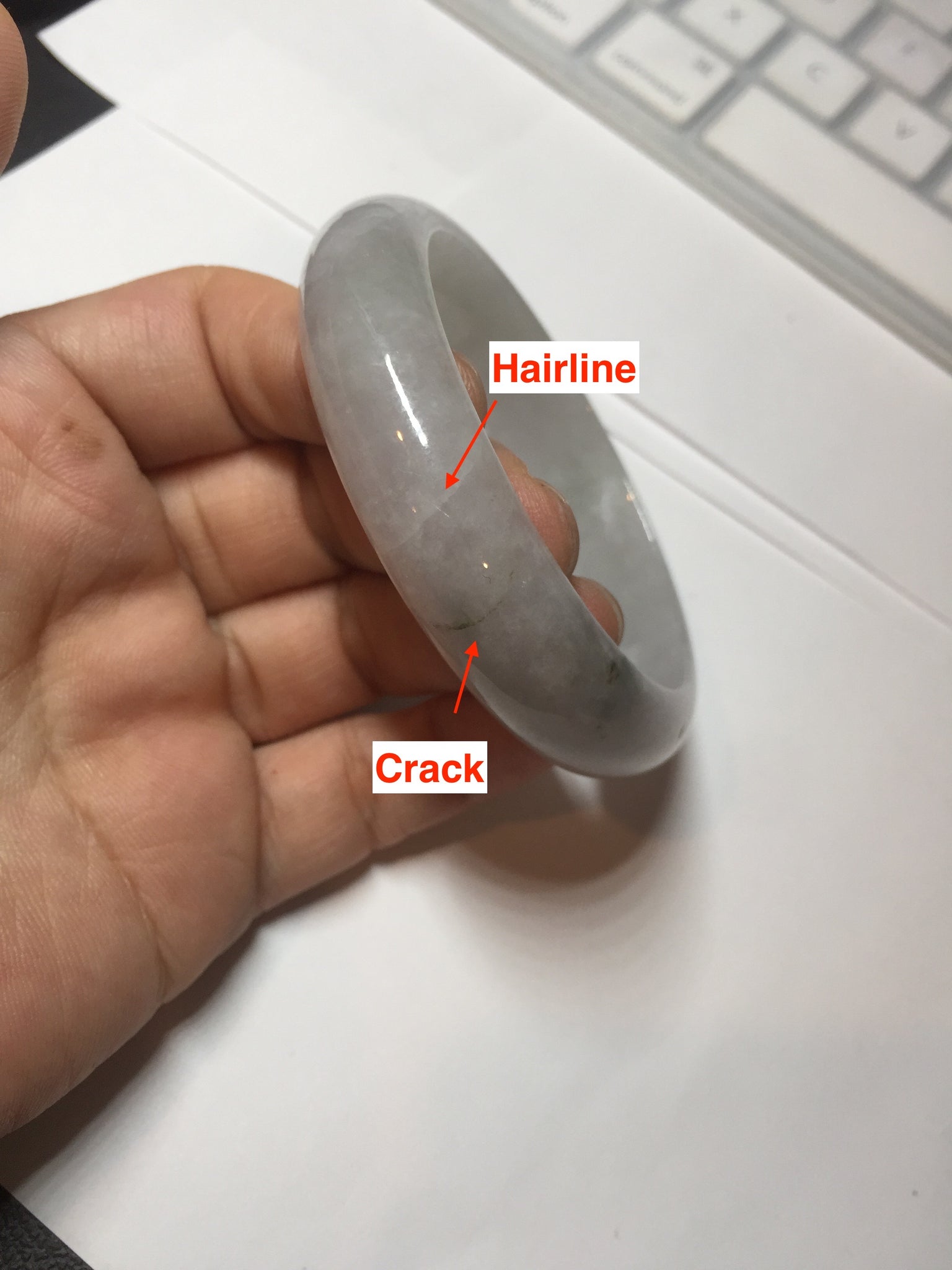 One color root crack. Some hairlines and one of them is a ring-shape. Another is a V-shaped. Some cotton lines and small rough surfaces. The purple is super light. Way lighter than in the photos.
