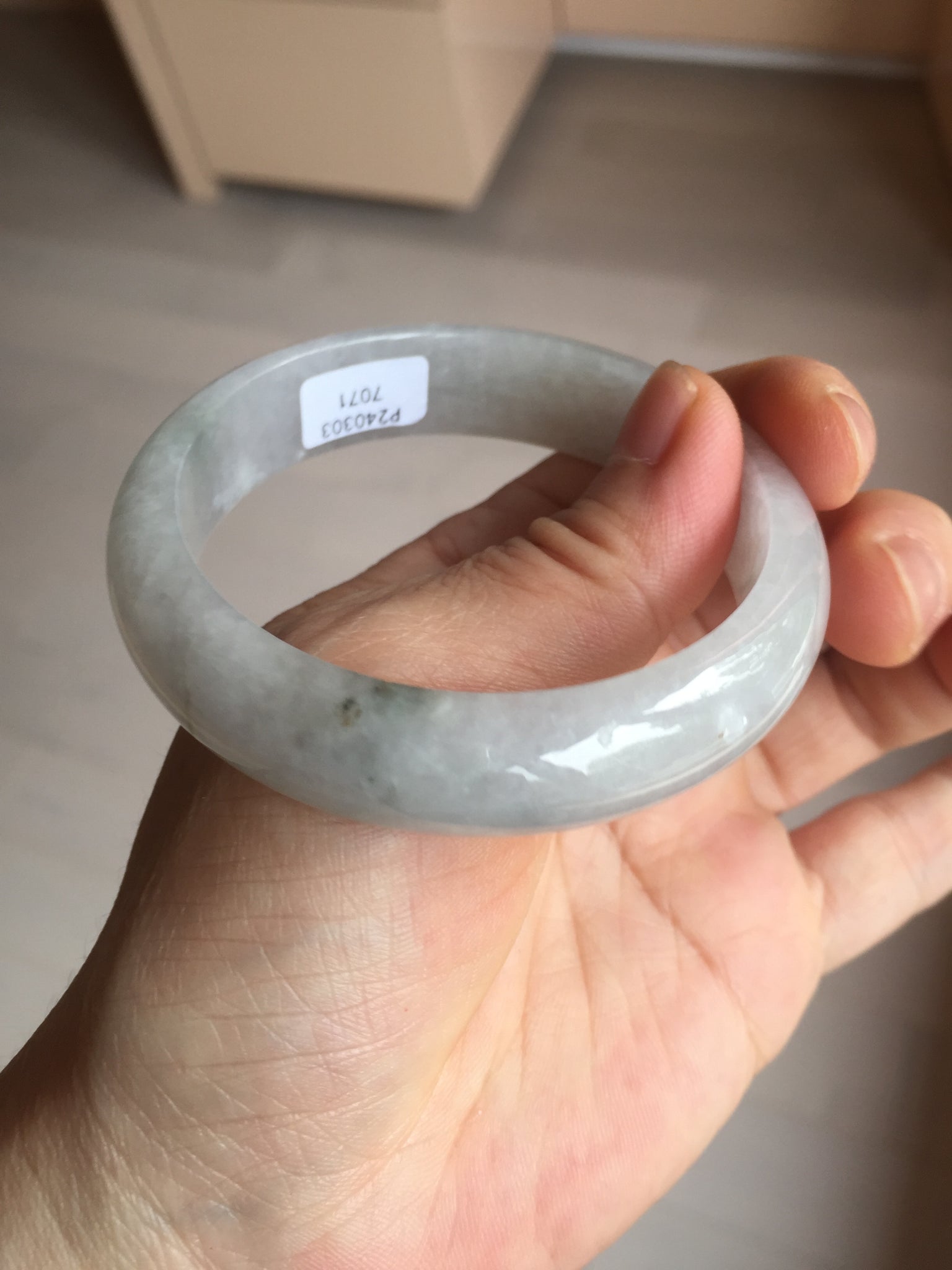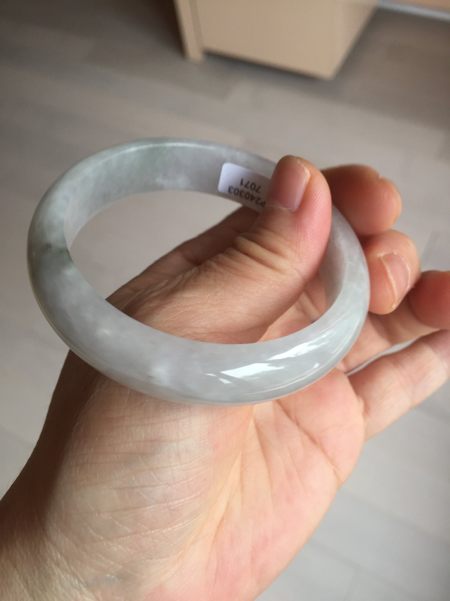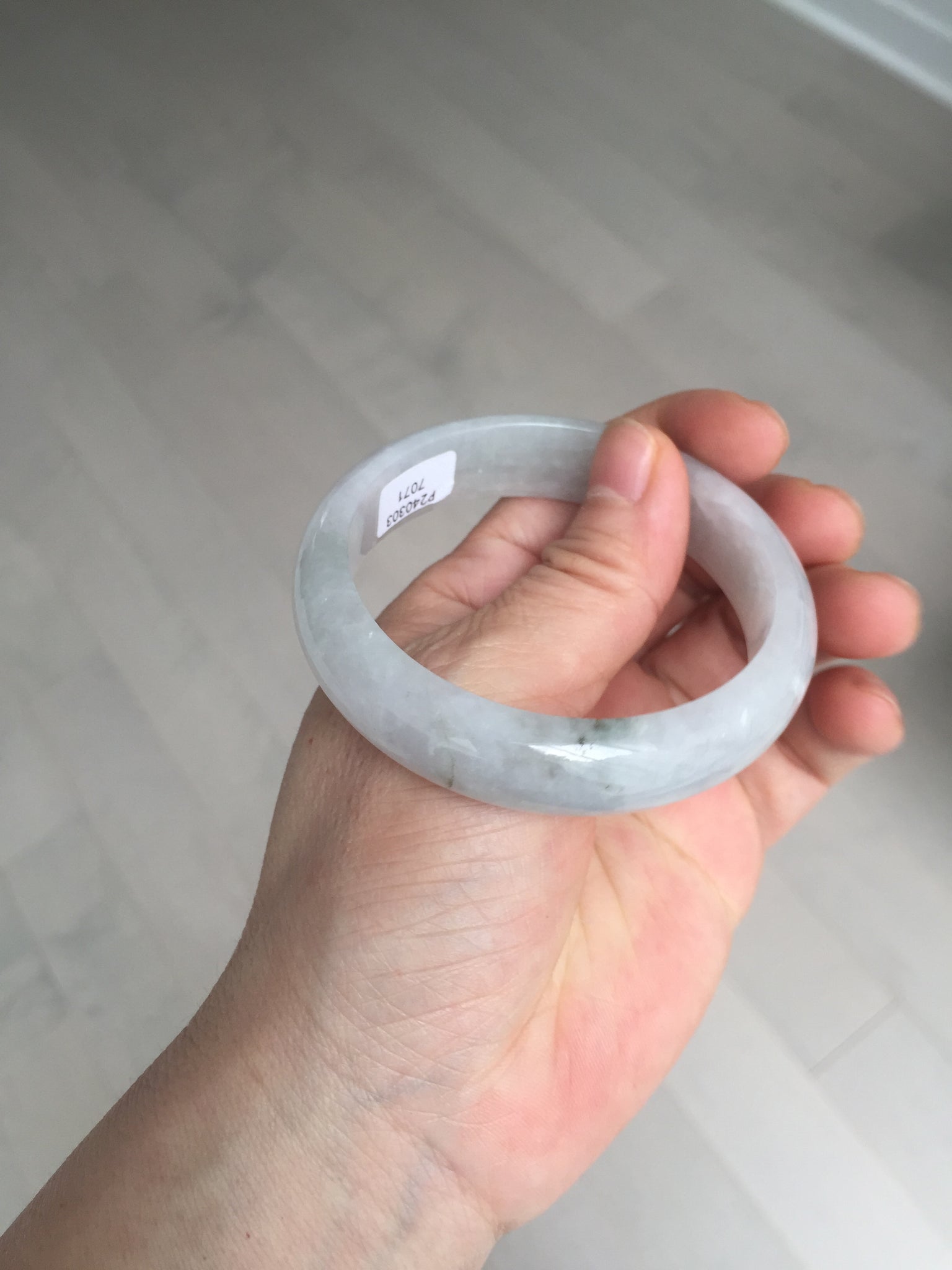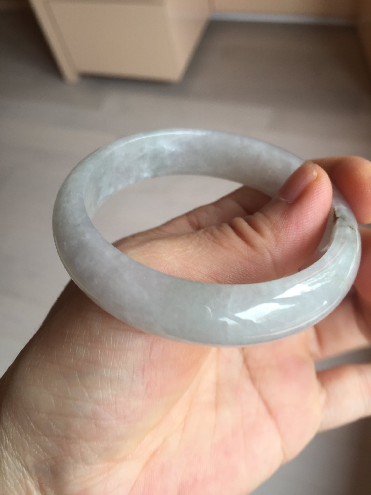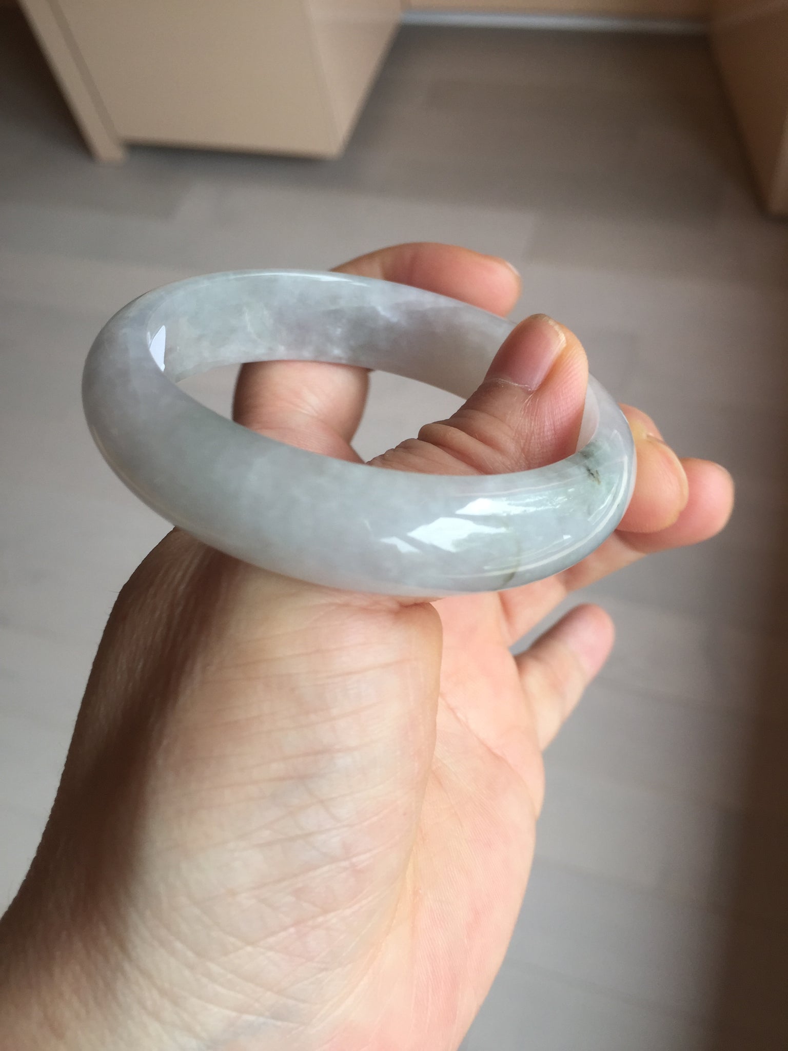 One color root crack. Some hairlines and one of them is a ring-shape. Another is a V-shaped. Some cotton lines and small rough surfaces. The purple is super light. Way lighter than in the photos.