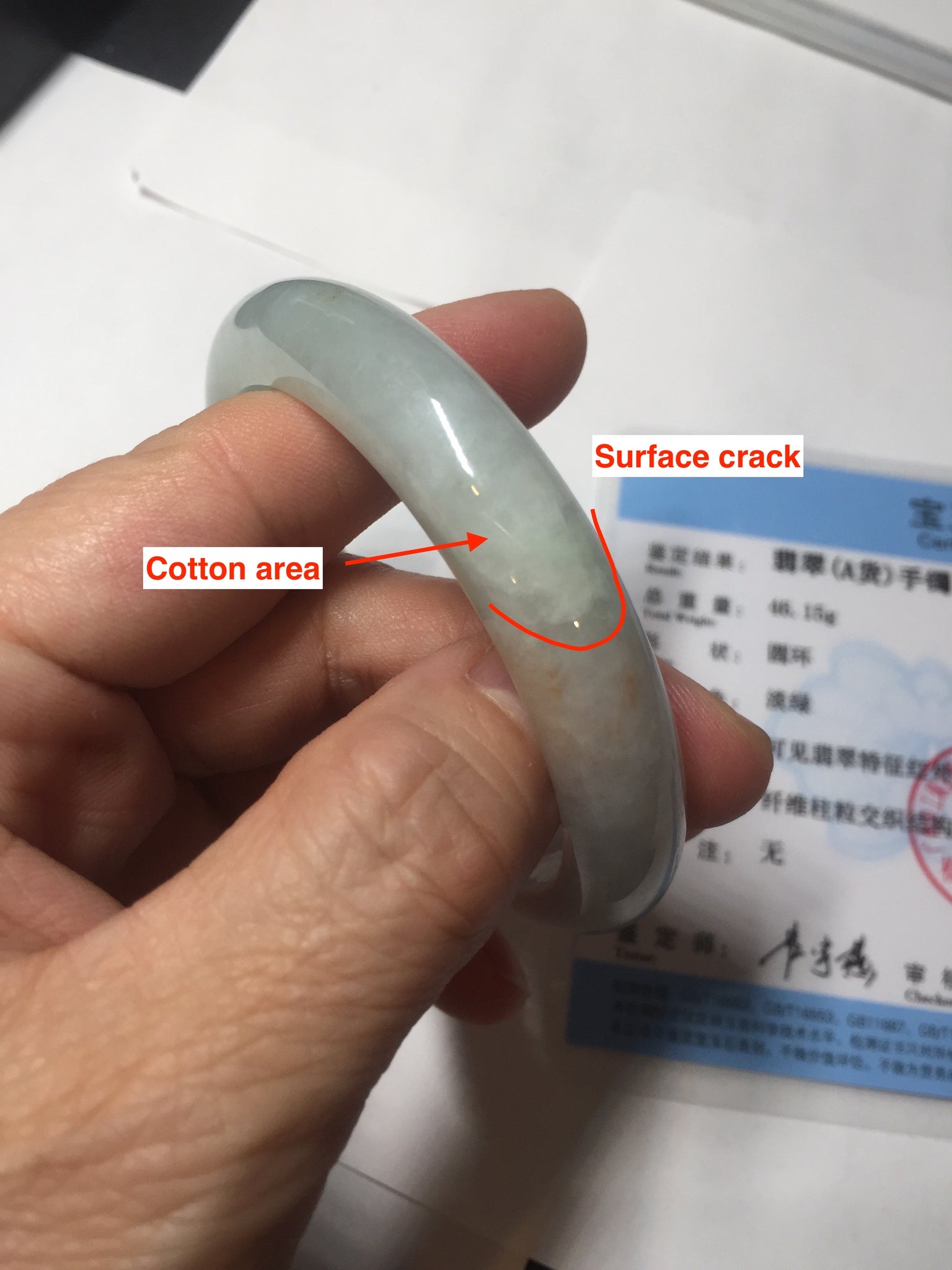 Some cracks and one of them is a U-shape. Two hairlines. Some cotton areas and cotton lines.