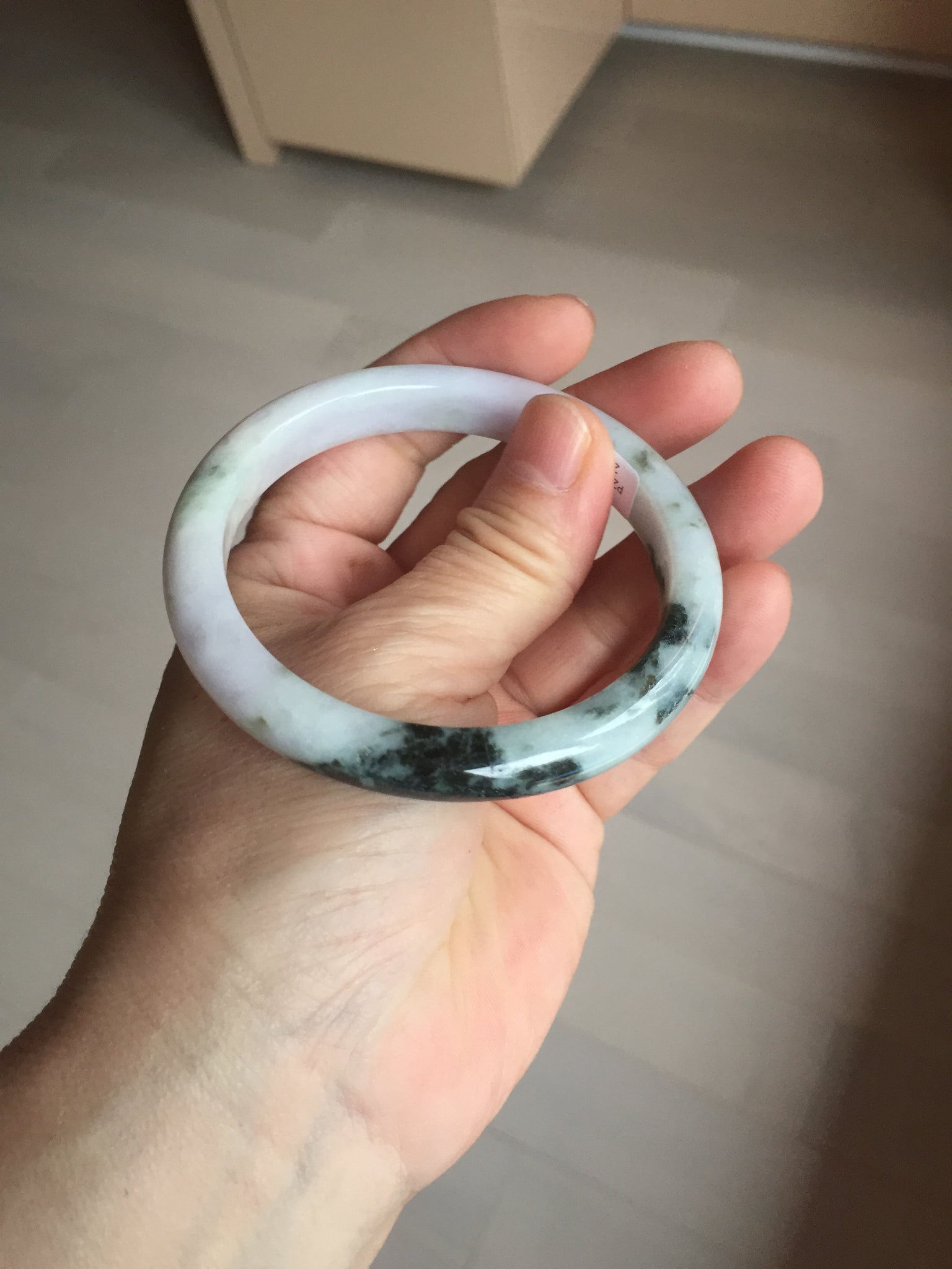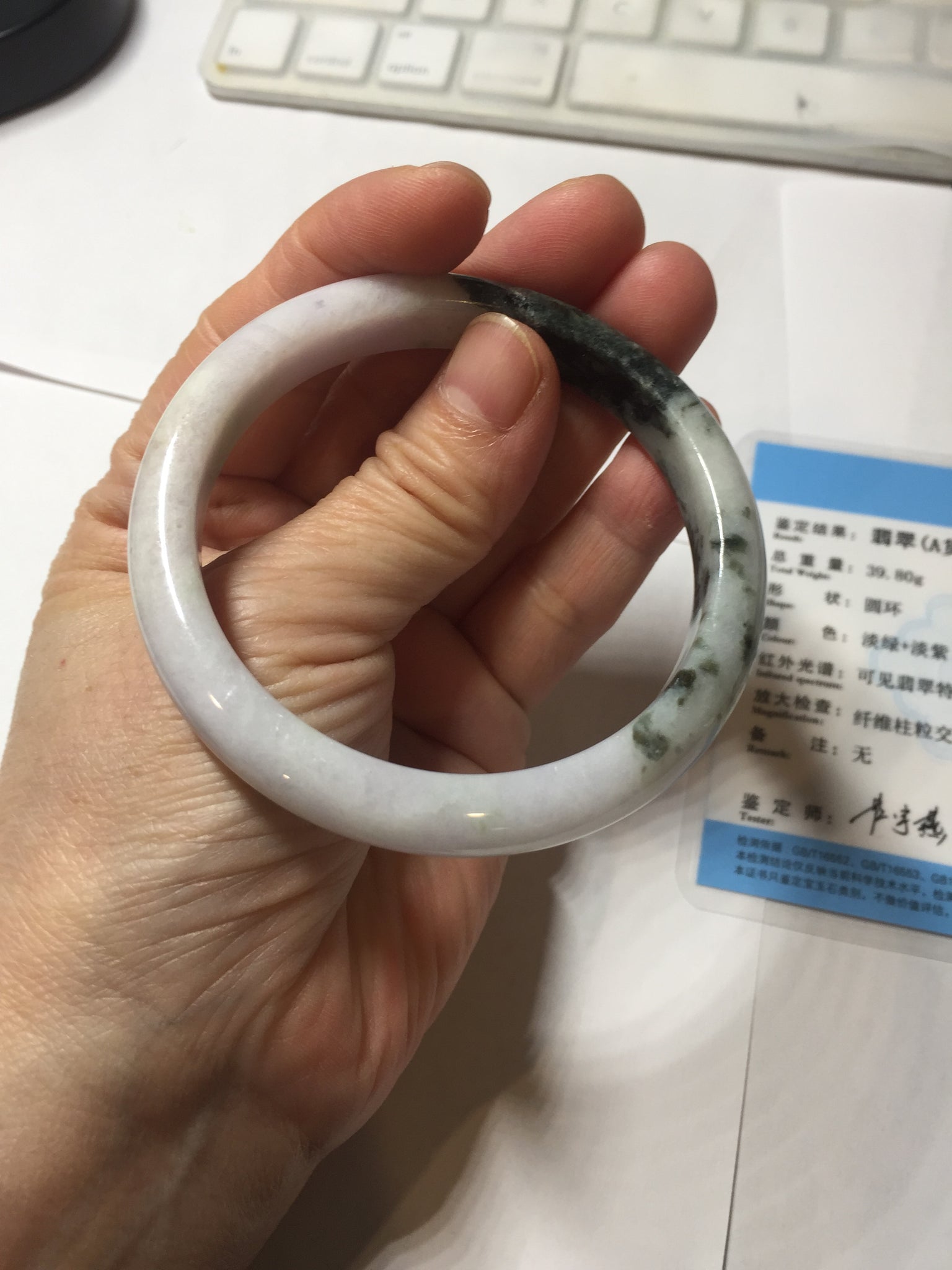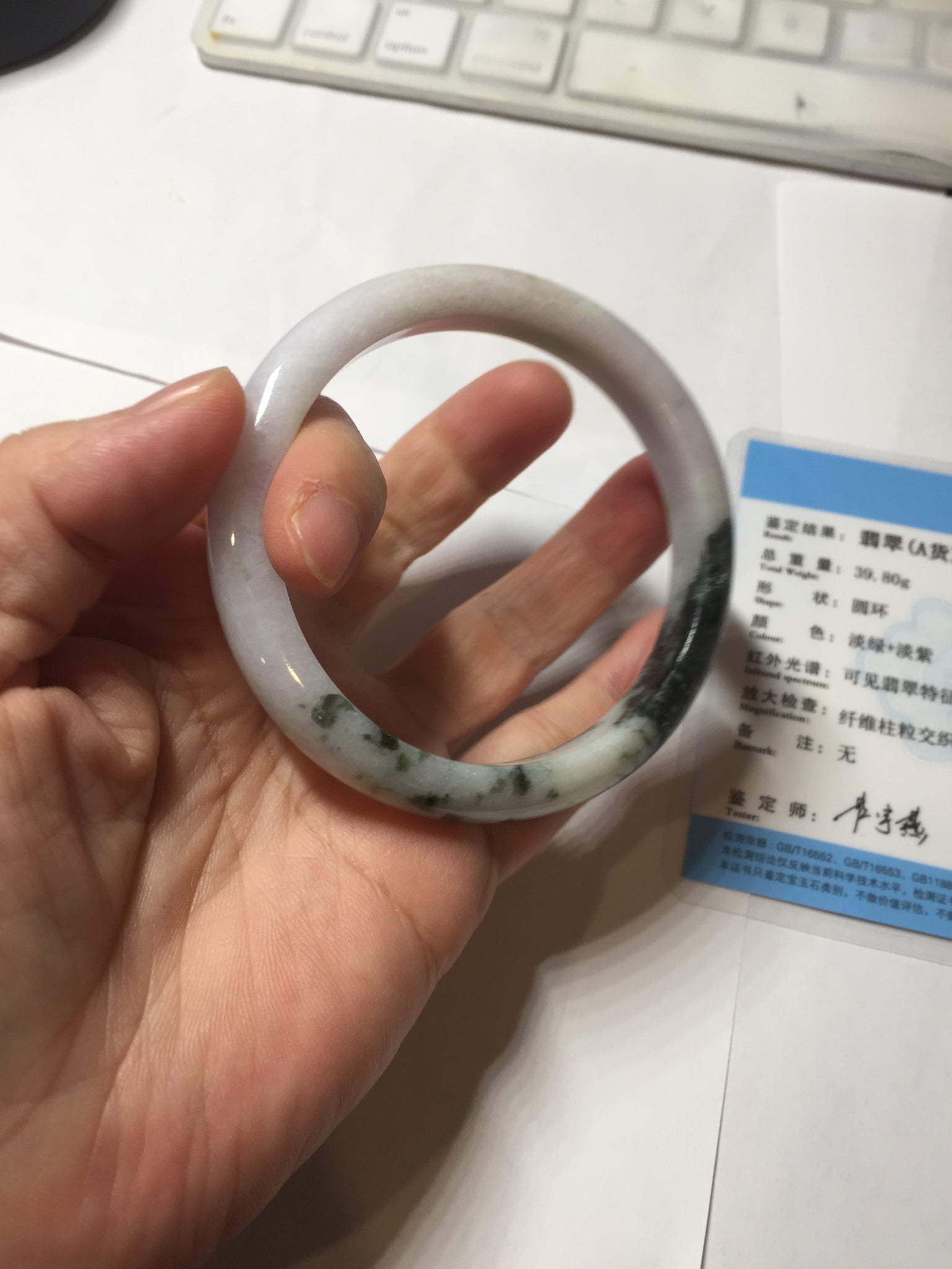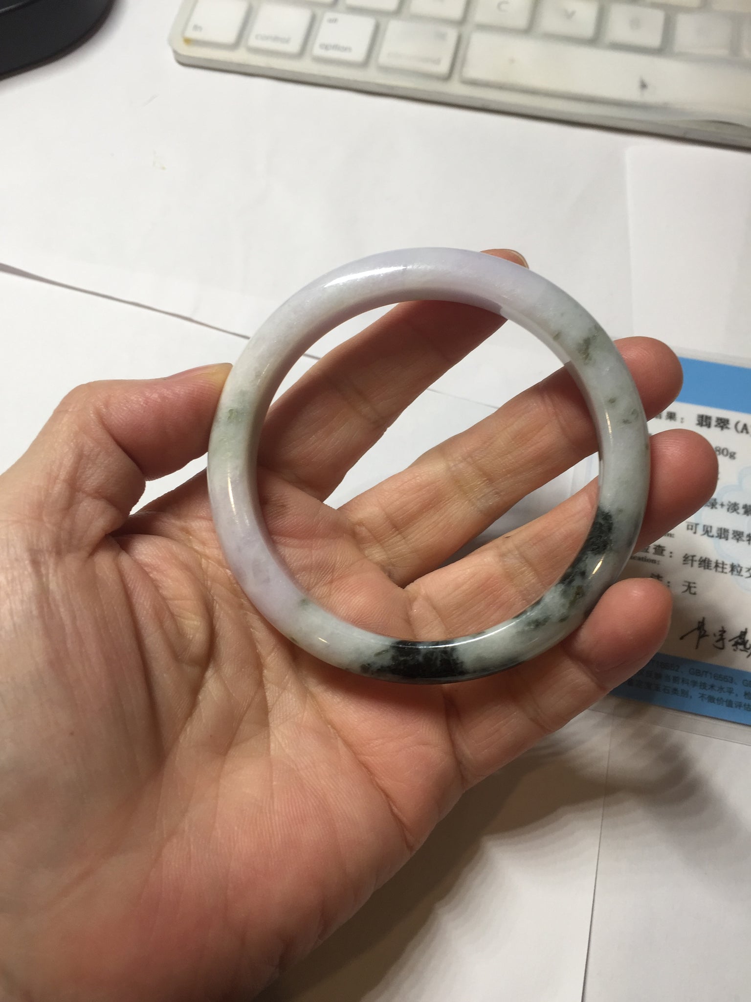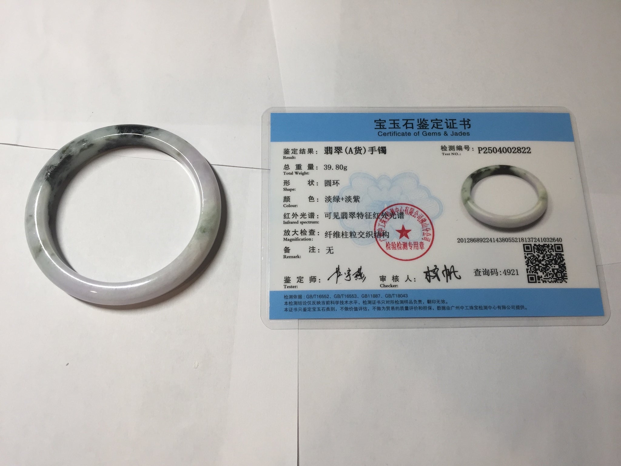 54.5mm certified 100% natural Type A dark green/purple/white with green floating flowers jadeite jade bangle PB230-2822