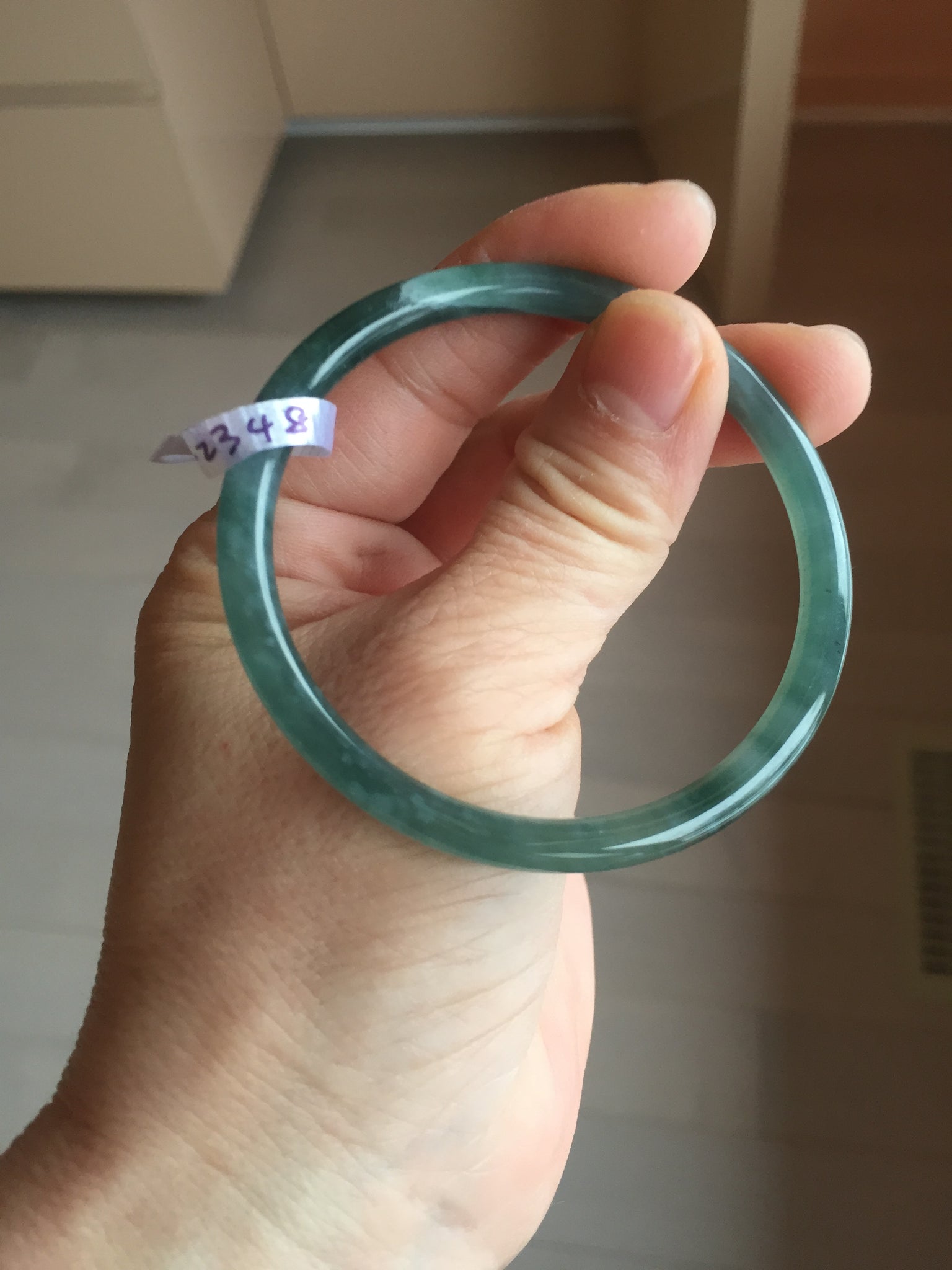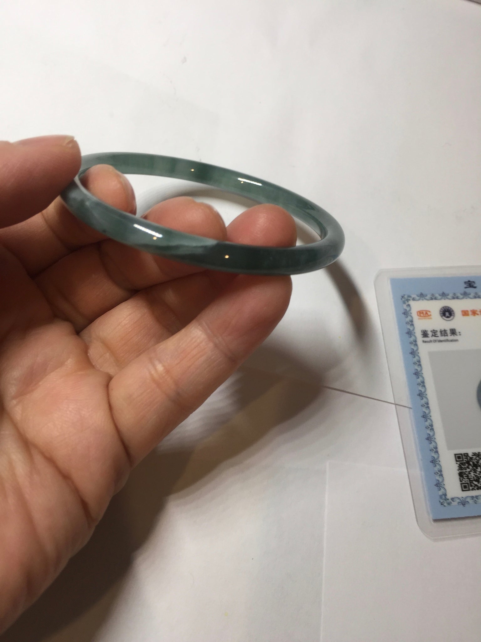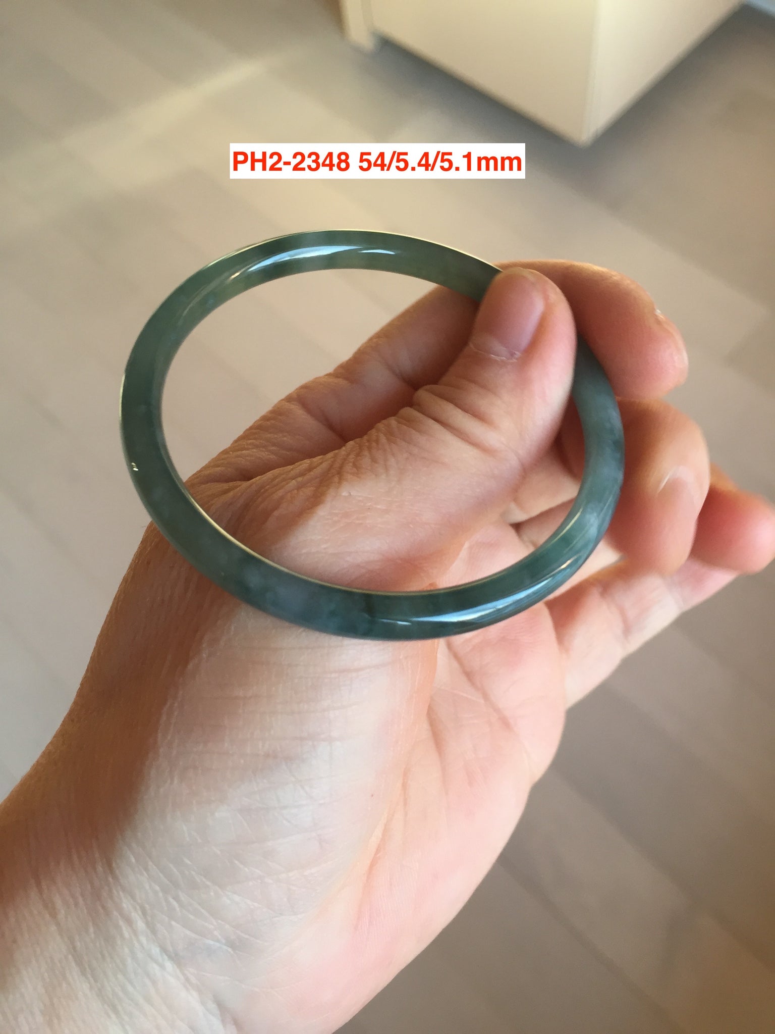 54mm Certified Type A 100% Natural dark green/blue/gray with Guatemala slim round cut Jadeite bangle PH2-2348