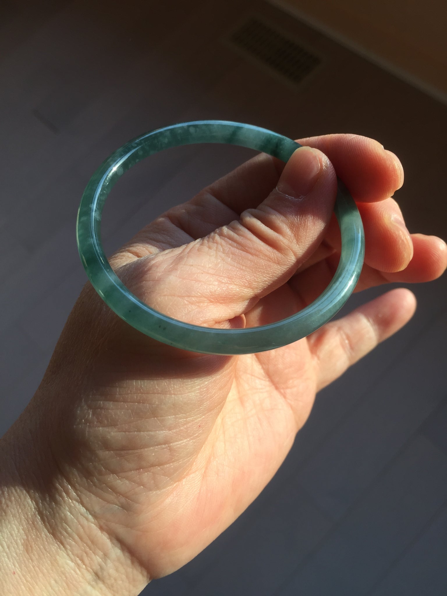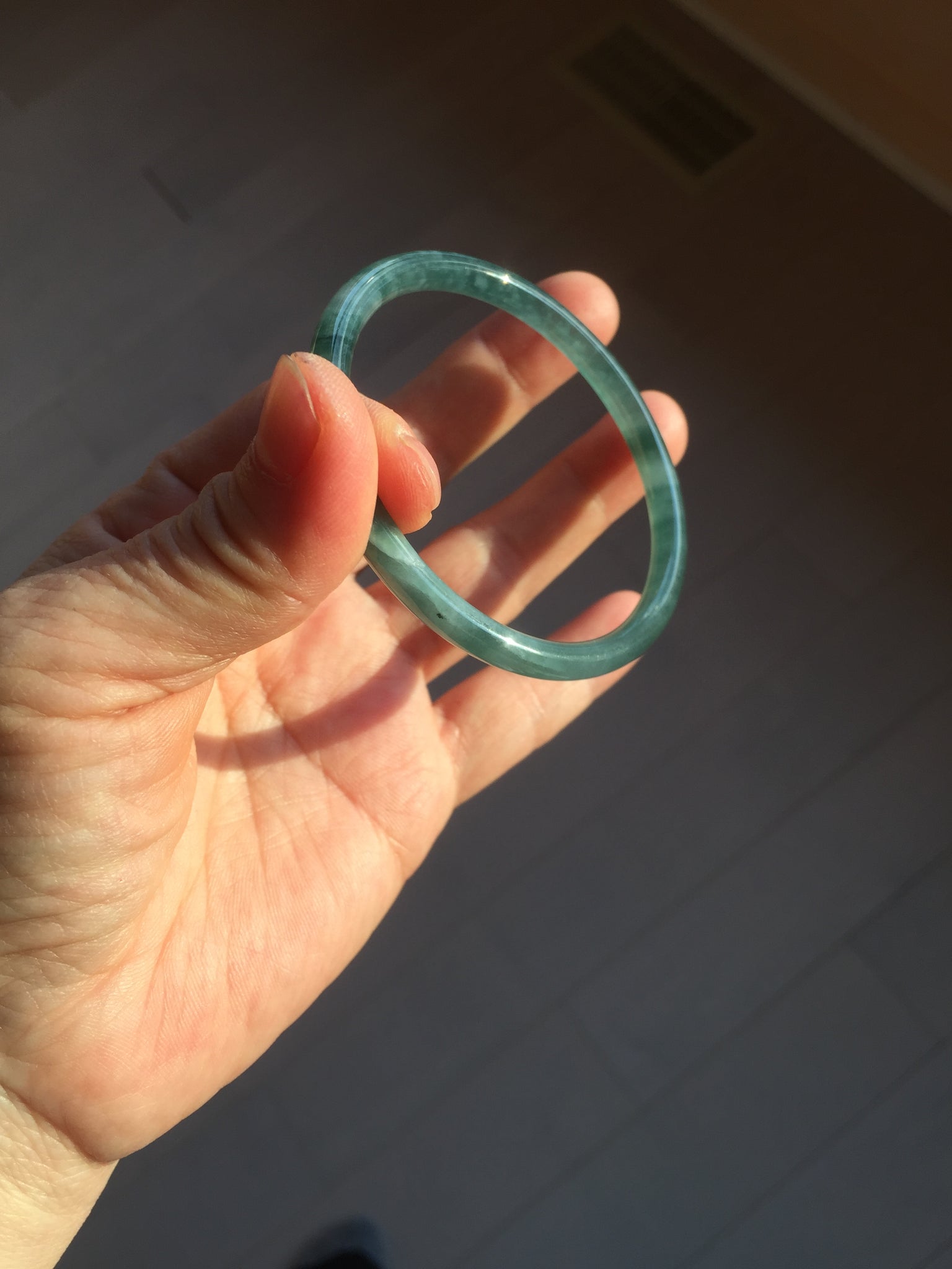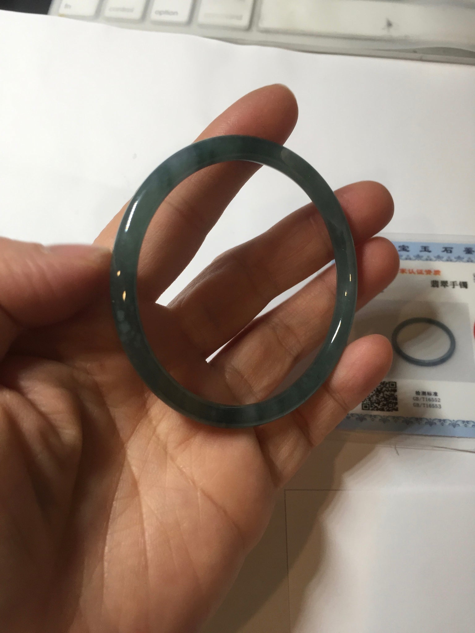 54mm Certified Type A 100% Natural dark green/blue/gray with Guatemala slim round cut Jadeite bangle PH2-2348