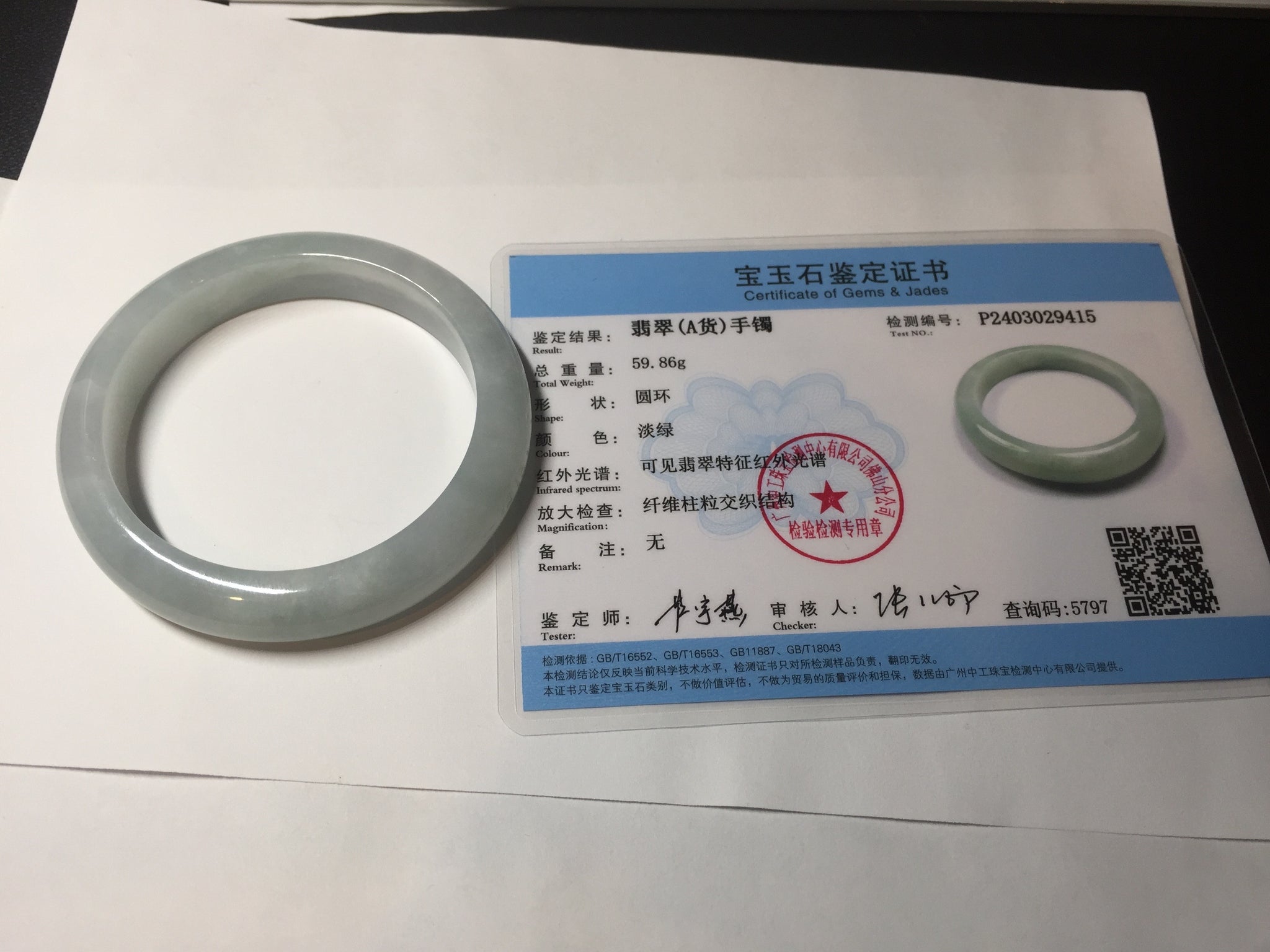 55.2mm Certified Type A 100% Natural light green Jadeite Jade bangle E91-9415