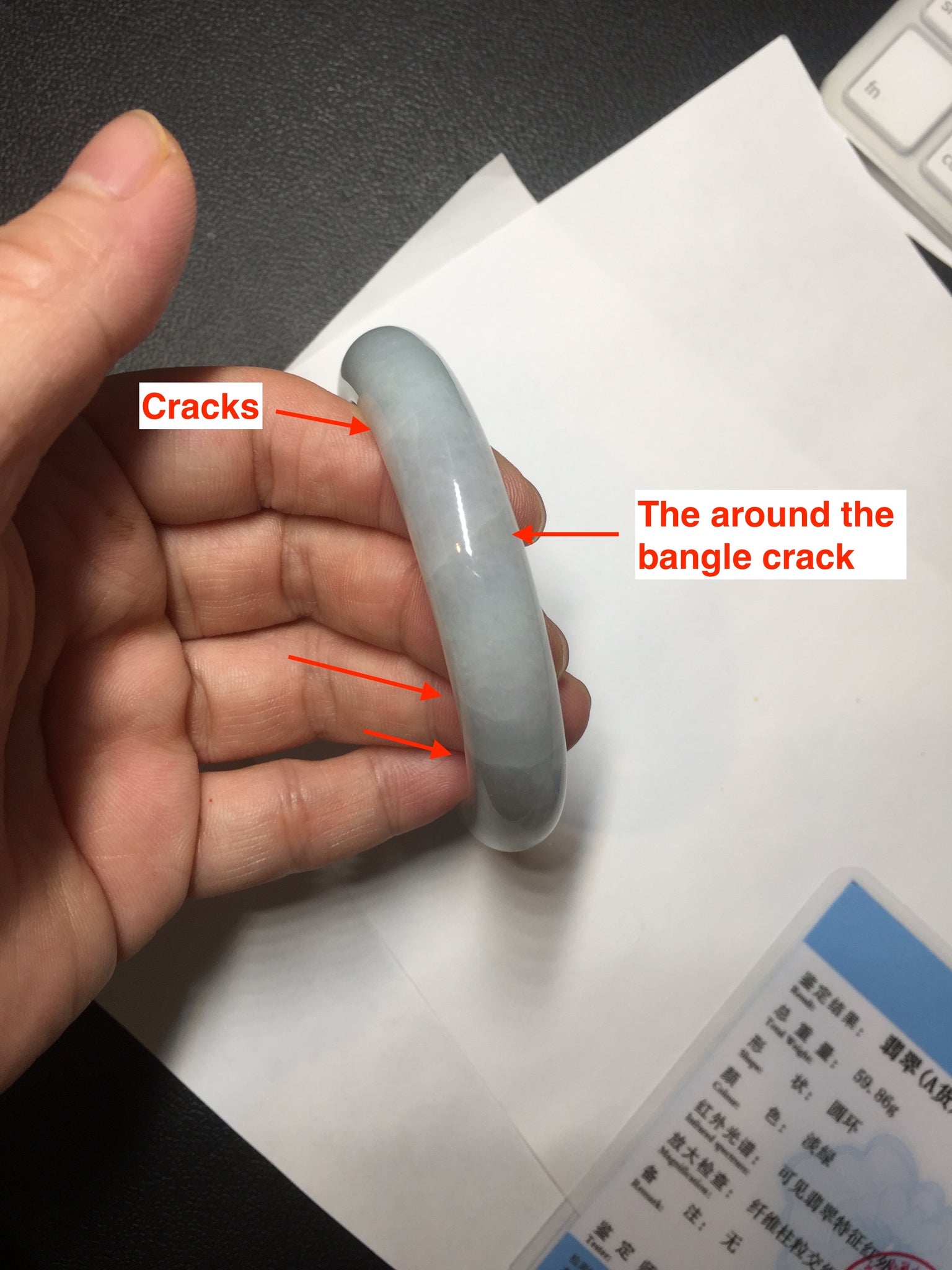 Some cracks. One of them is around the bangle crack. The firmness is decreased. Tight fit is not commanded. Some hairlines or cotton lines, and cotton areas. Some of them are long.