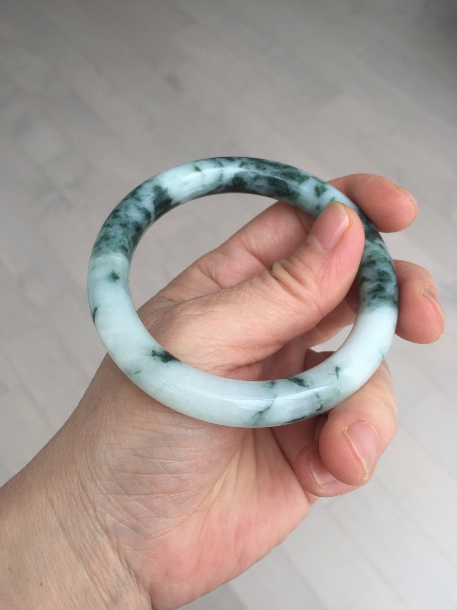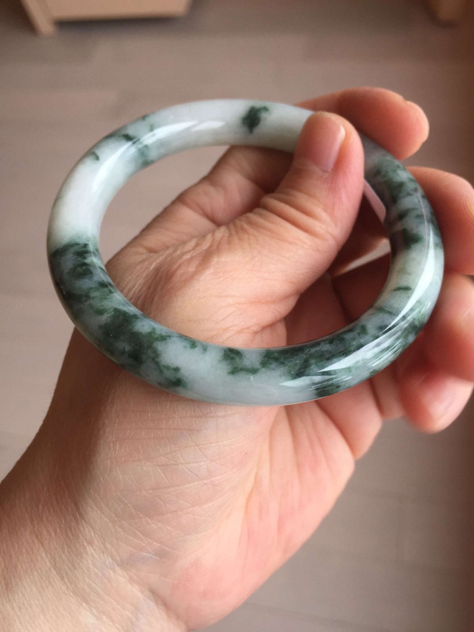 55.5mm certified 100% natural Type A silent snow and green fire forest round cut jadeite jade bangle AA35-4285