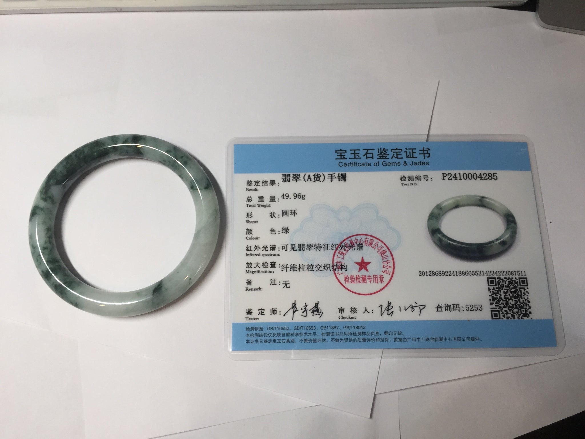 One crack. The bangle is solid(Guaranteed!). Some small rough surfaces. Some hairlines and cotton lines. Not transparent.