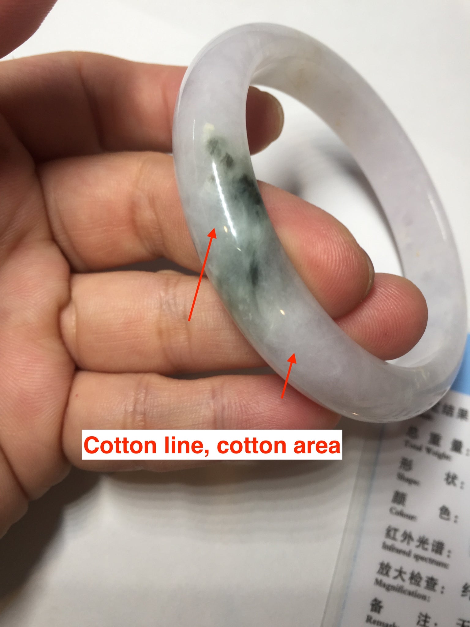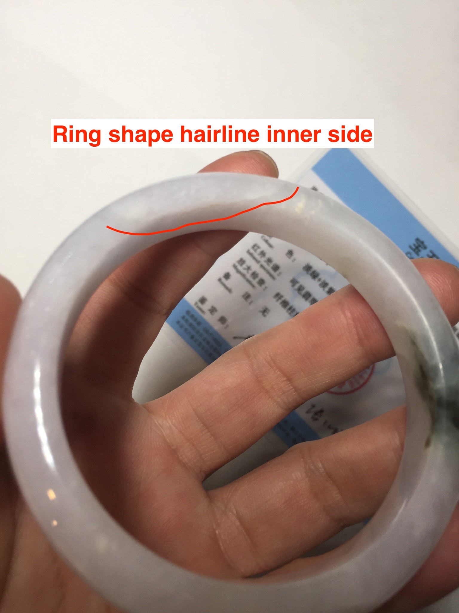 No cracks. Some hairlines and two of them are ring-shaped. Some cotton and cotton areas. The purple is lighter than in the photos. The yellow is just a line.