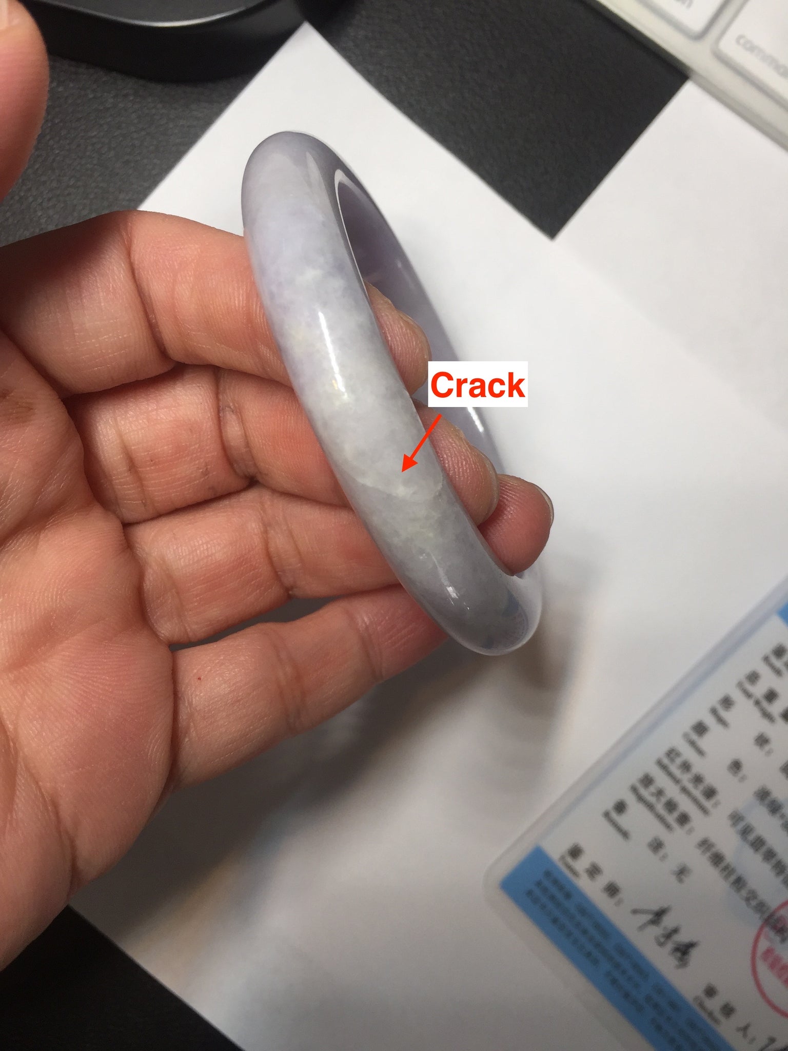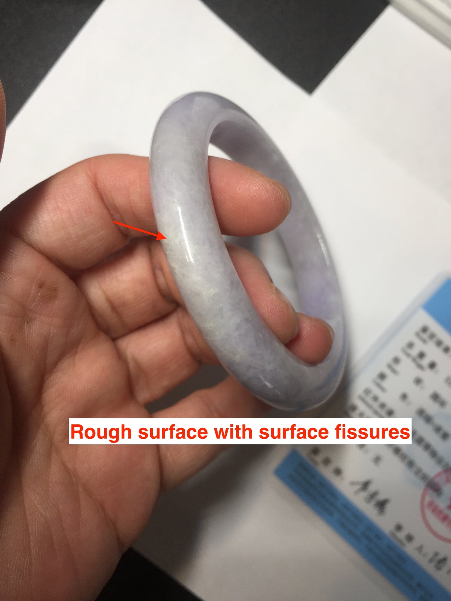 Some cracks. The bangle is solid(Guaranteed!). Some hairlines and cotton lines, rough surfaces, spots, cotton areas, and cotton spots. The purple is lighter than in the photos due to the purple color always being more camera-friendly.