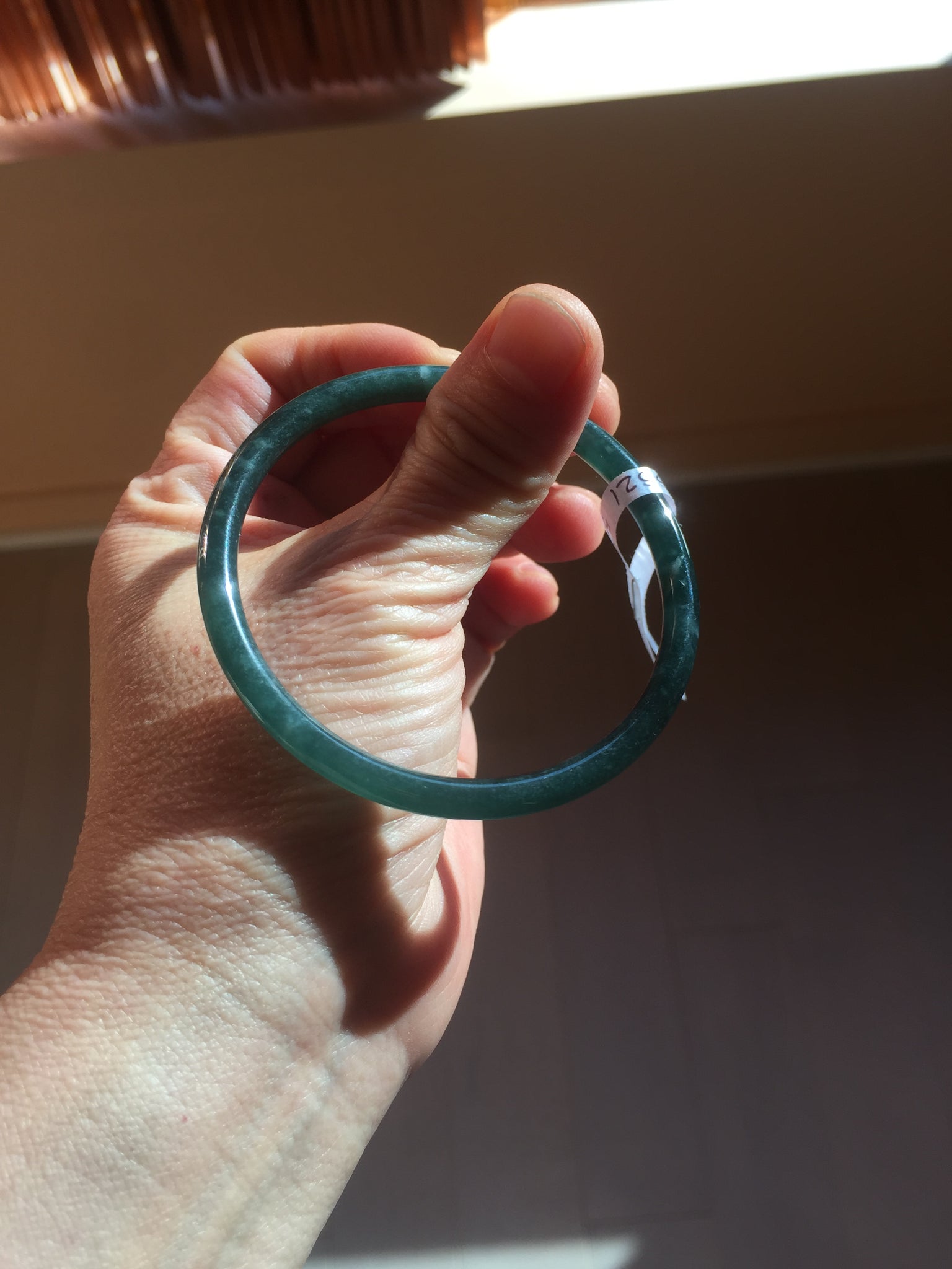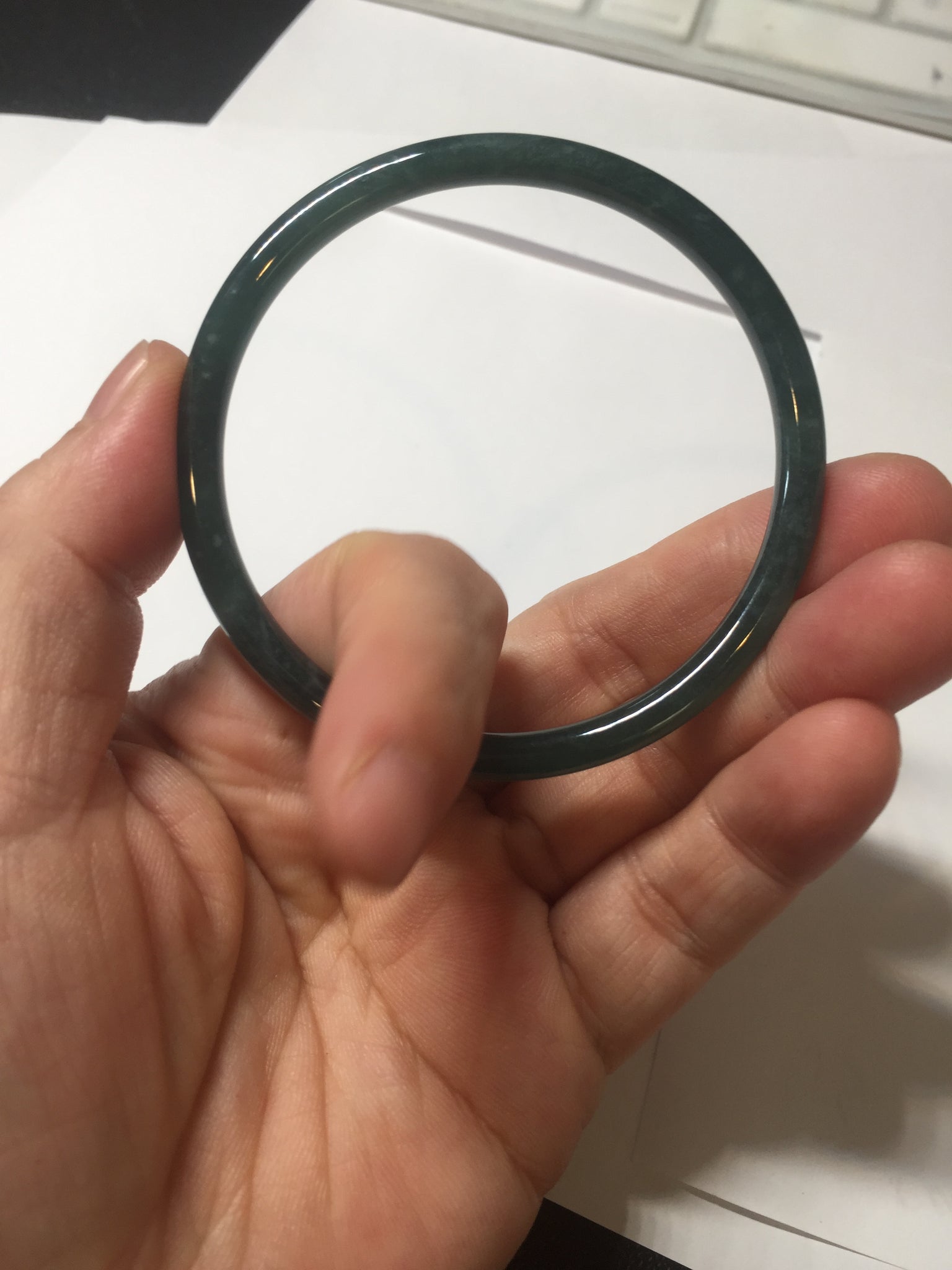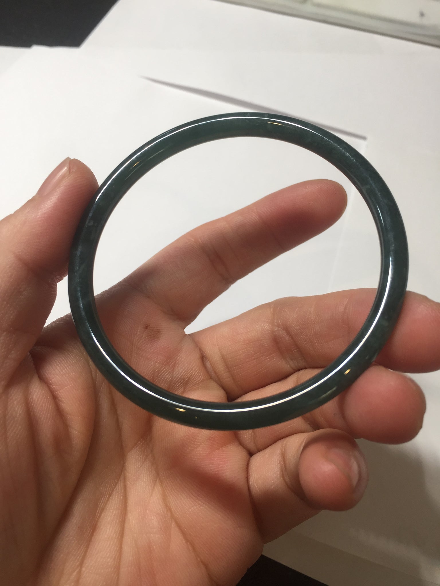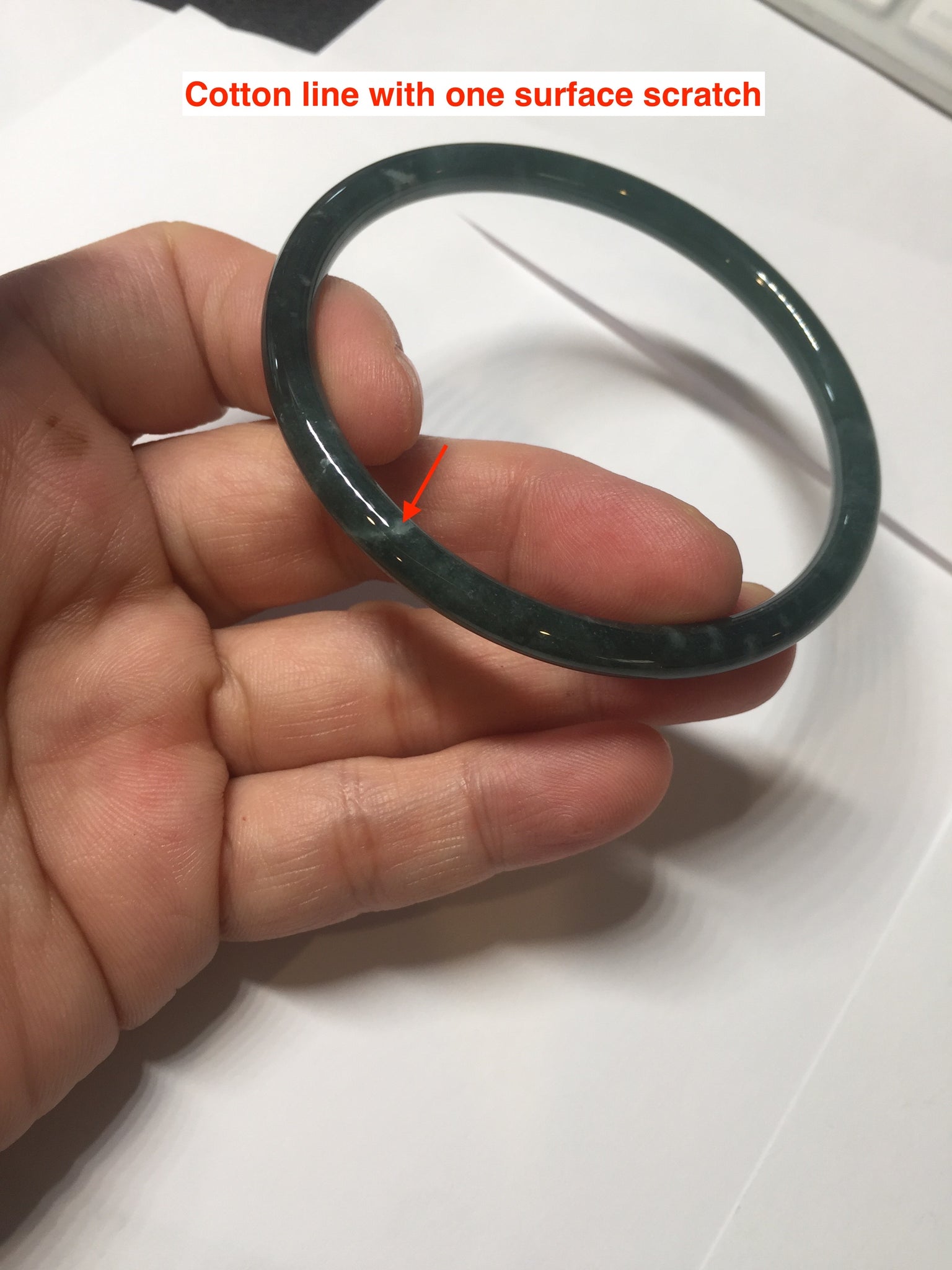 One cotton area with surface scratch. Some cotton areas,cotton lines and cotton spots. The bangle has some gray/ black color. Has a hint of purple color.