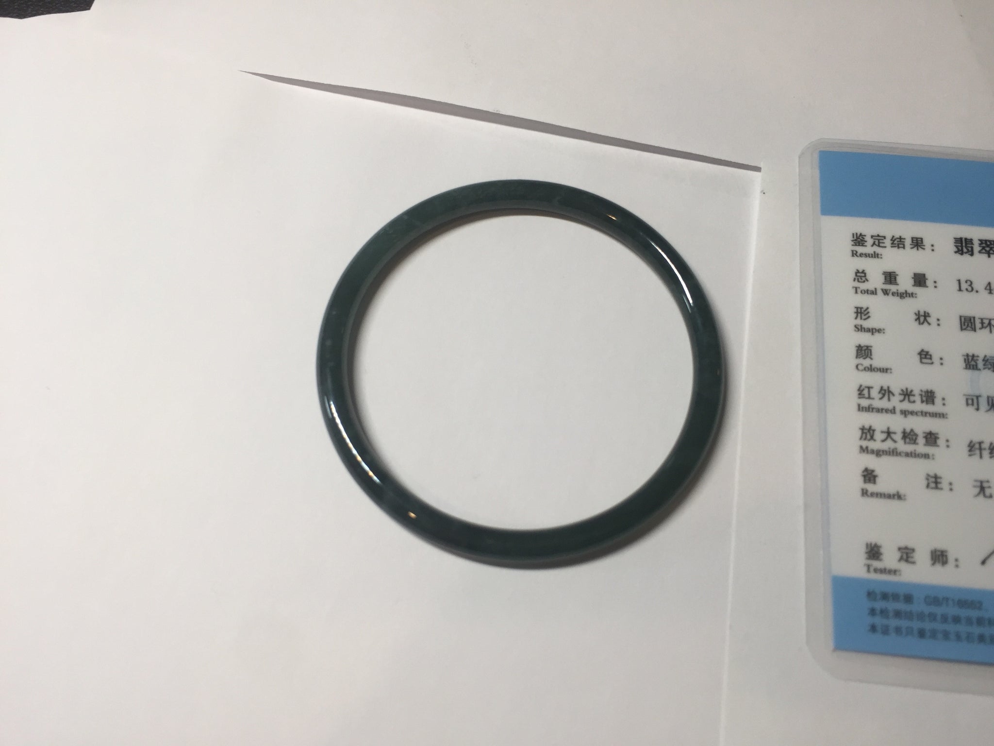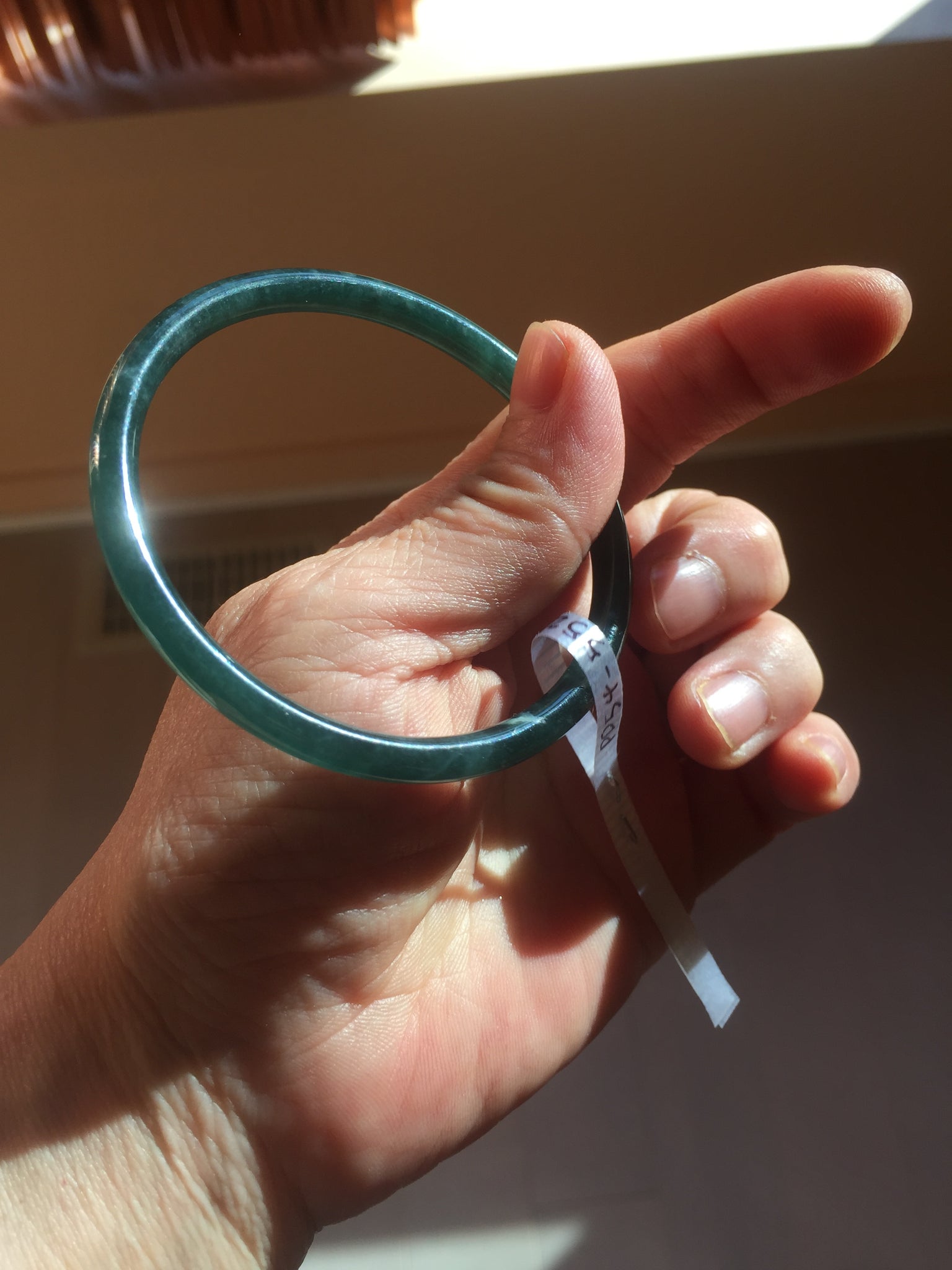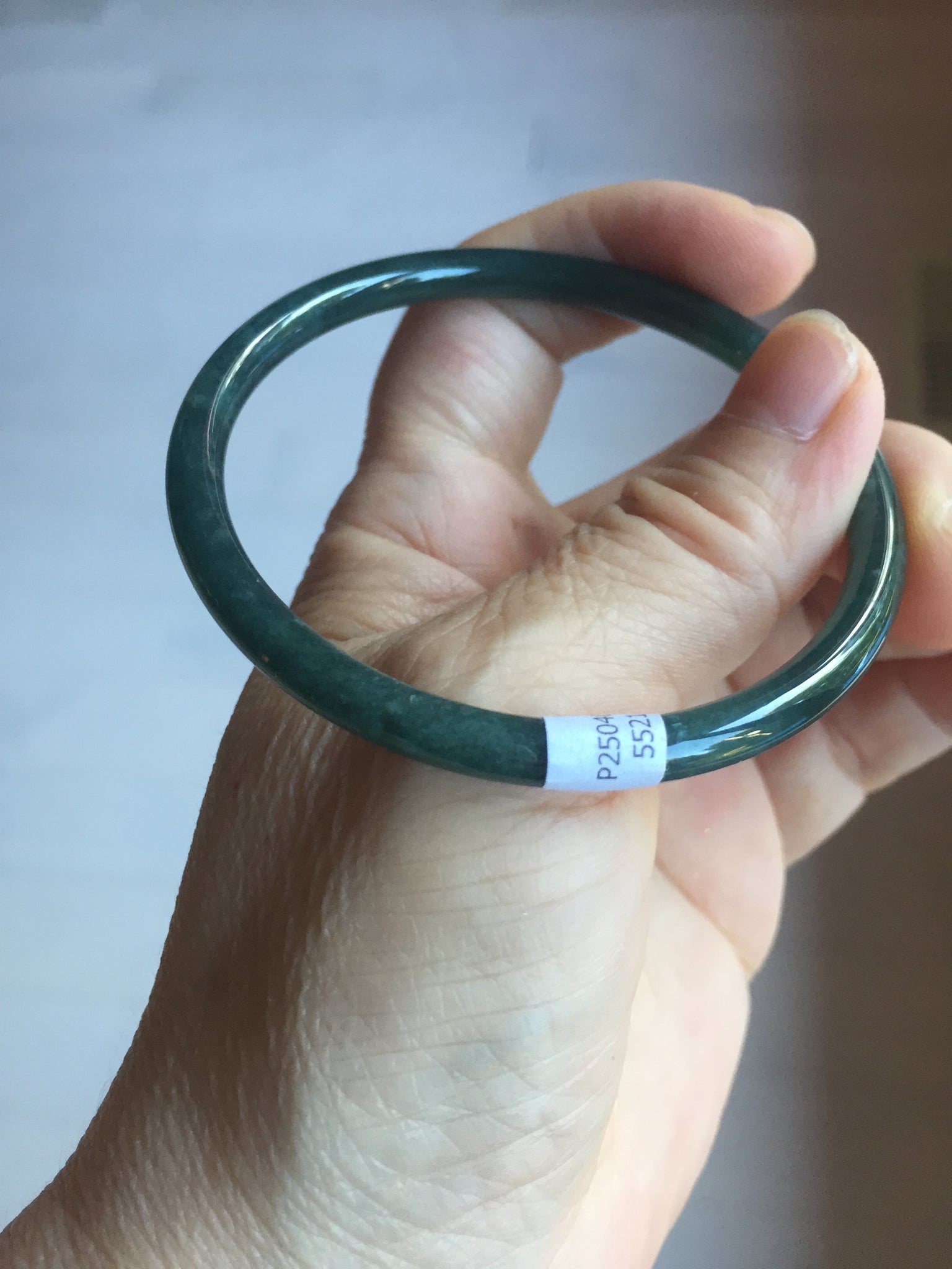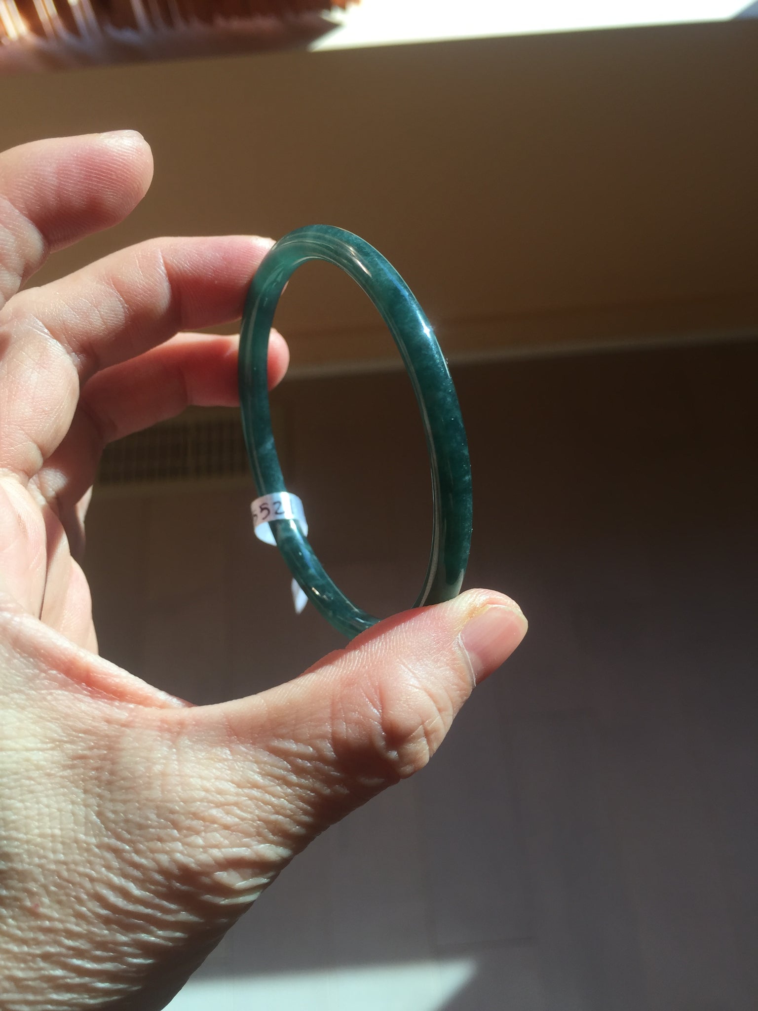 One cotton area with surface scratch. Some cotton areas,cotton lines and cotton spots. The bangle has some gray/ black color. Has a hint of purple color.