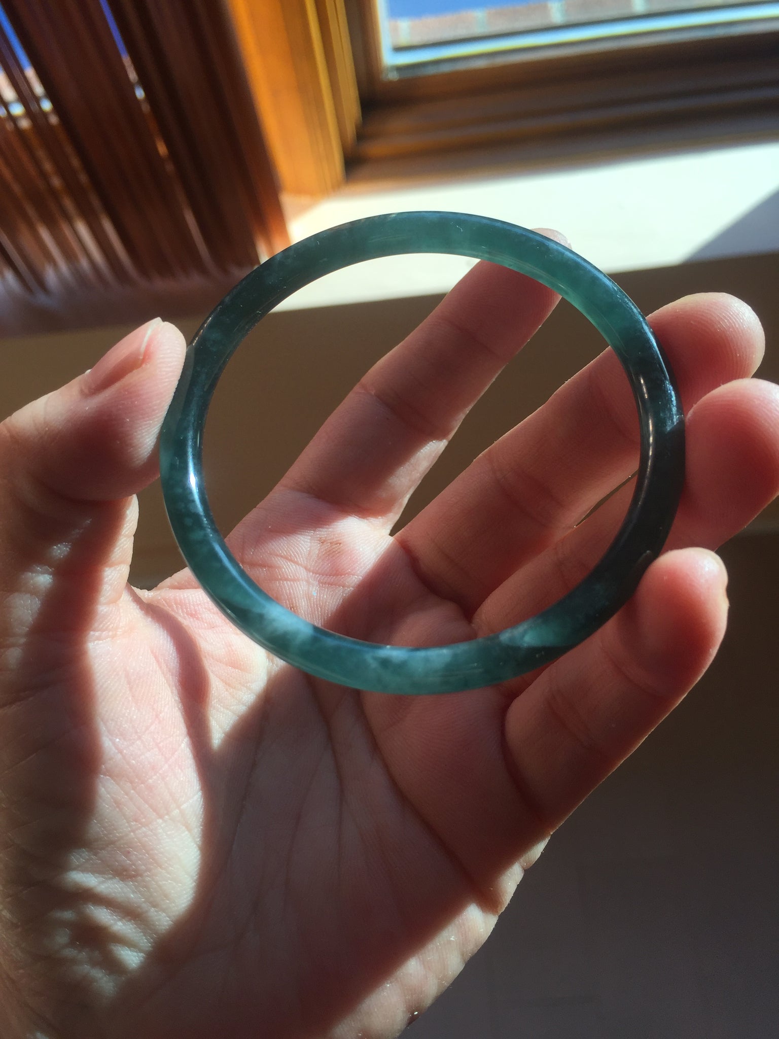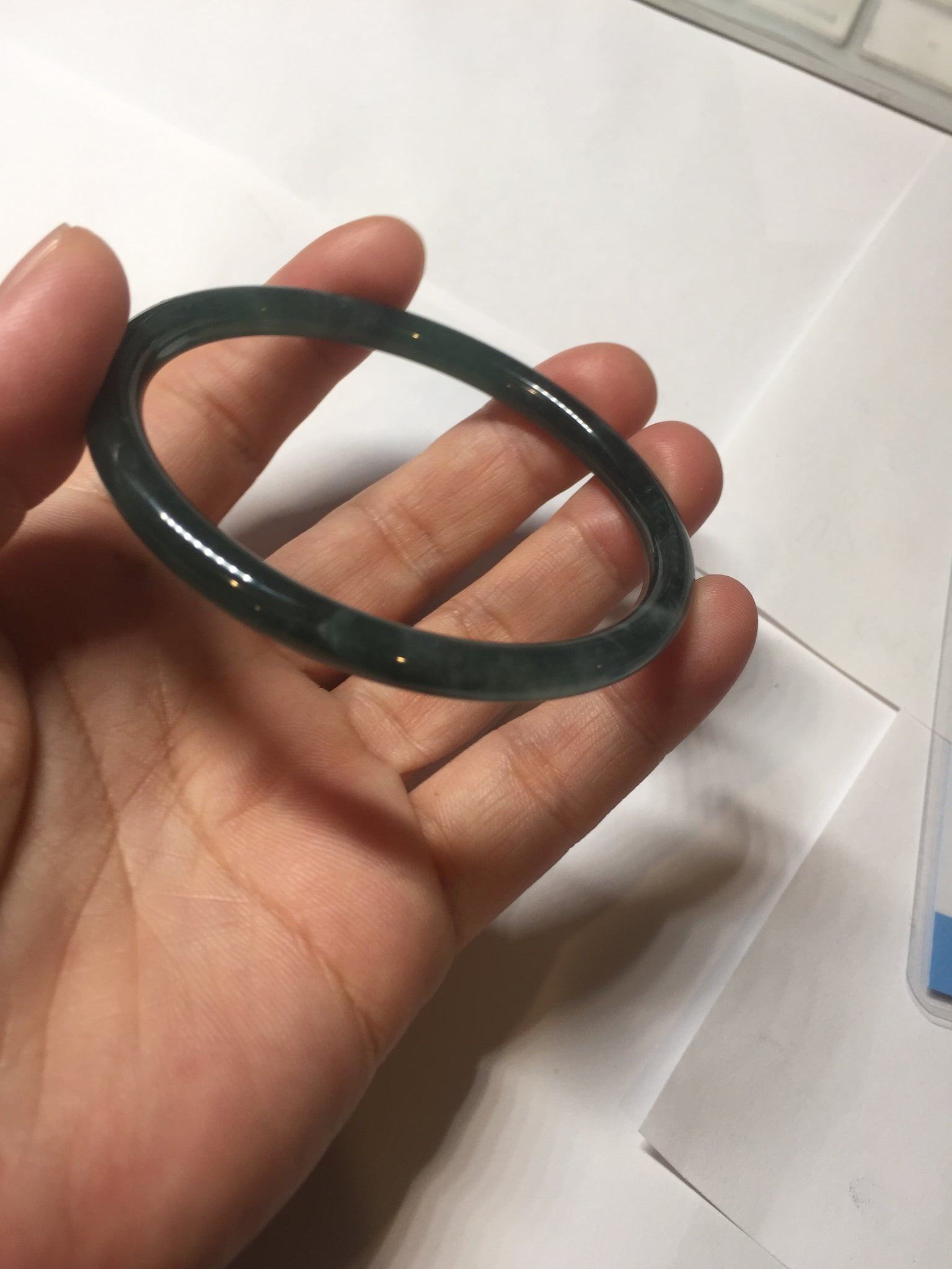 One crack. One hairline. Some cotton areas,cotton lines and cotton spots. The bangle has some gray/ black color.