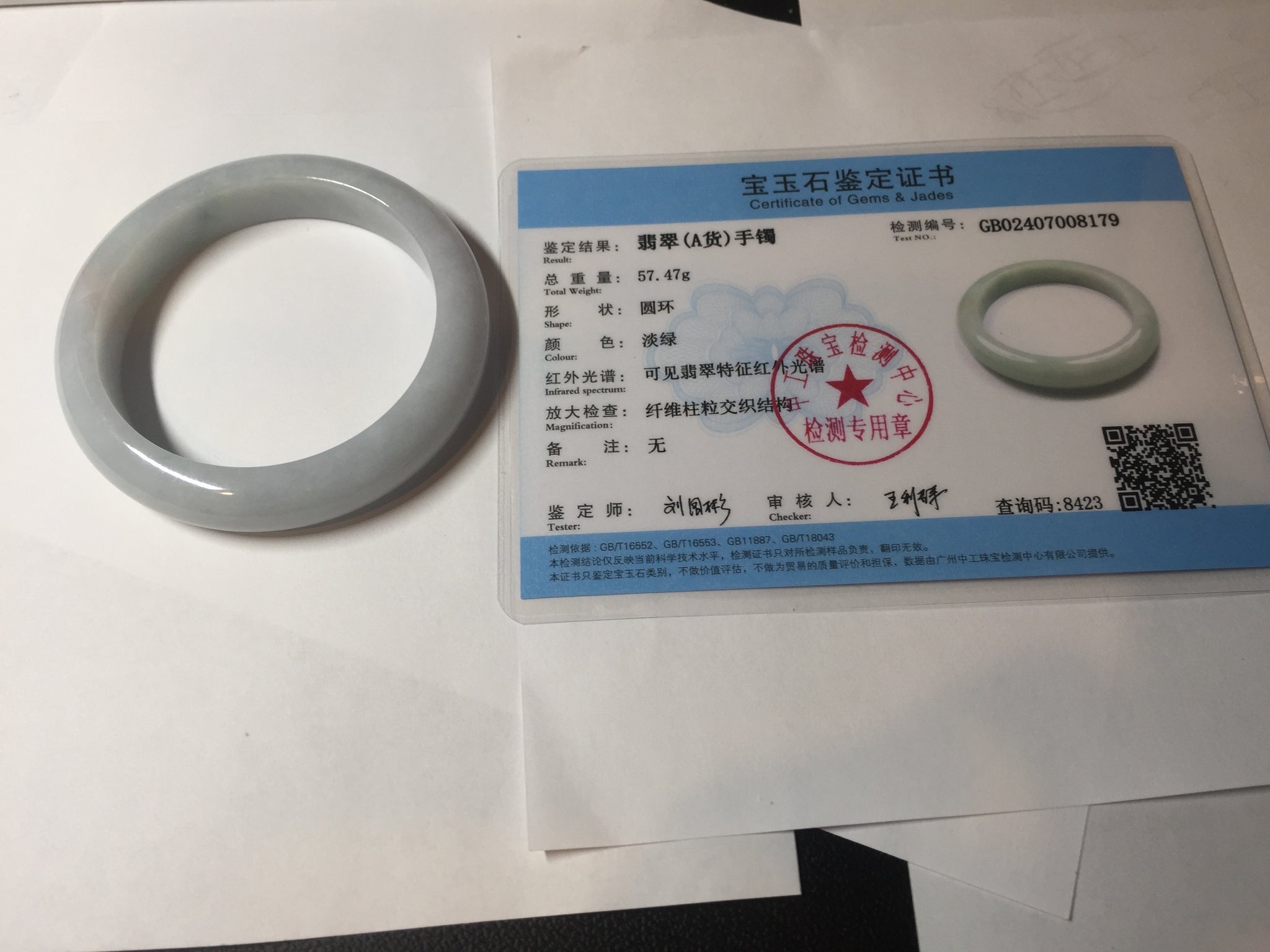 54.5mm Certified Type A 100% Natural light green purple Jadeite Jade bangle BQ53-8179