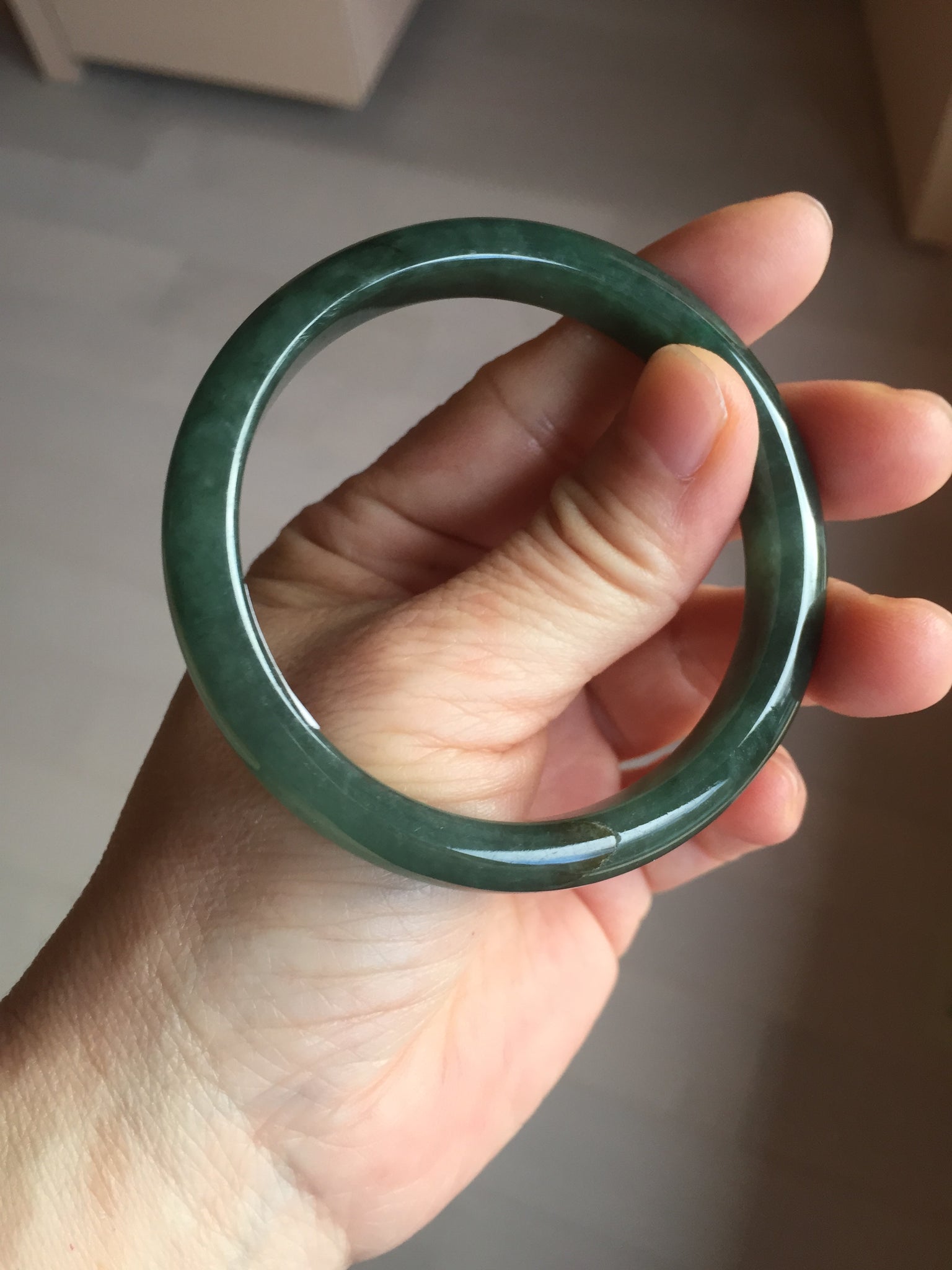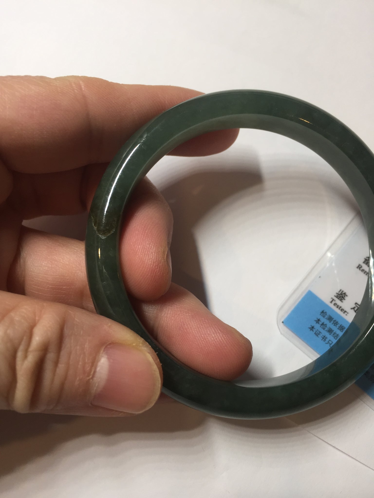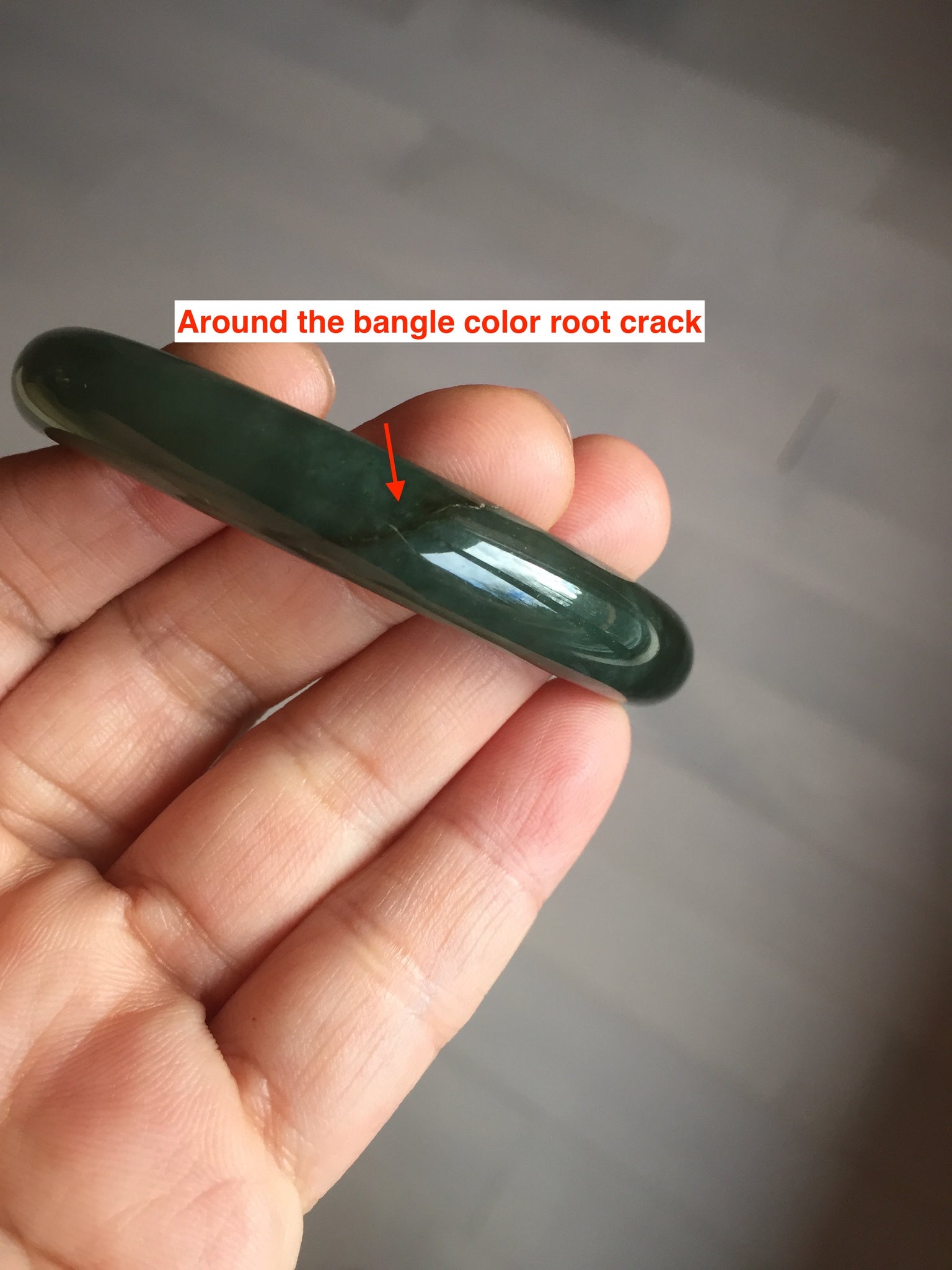 55.5mm Certified Type A 100% Natural oily dark green(老油青)/gray Jadeite bangle BG229-0411