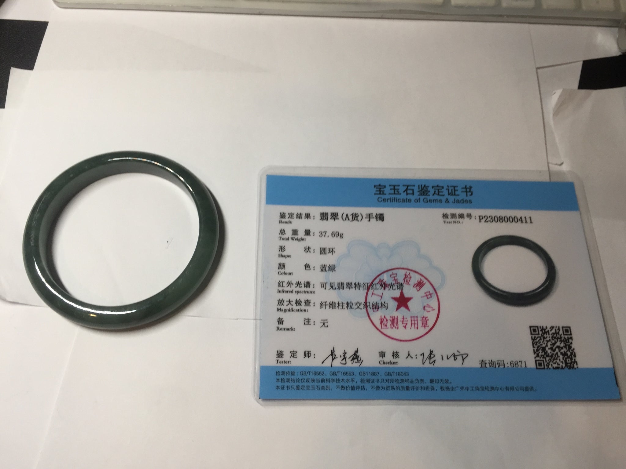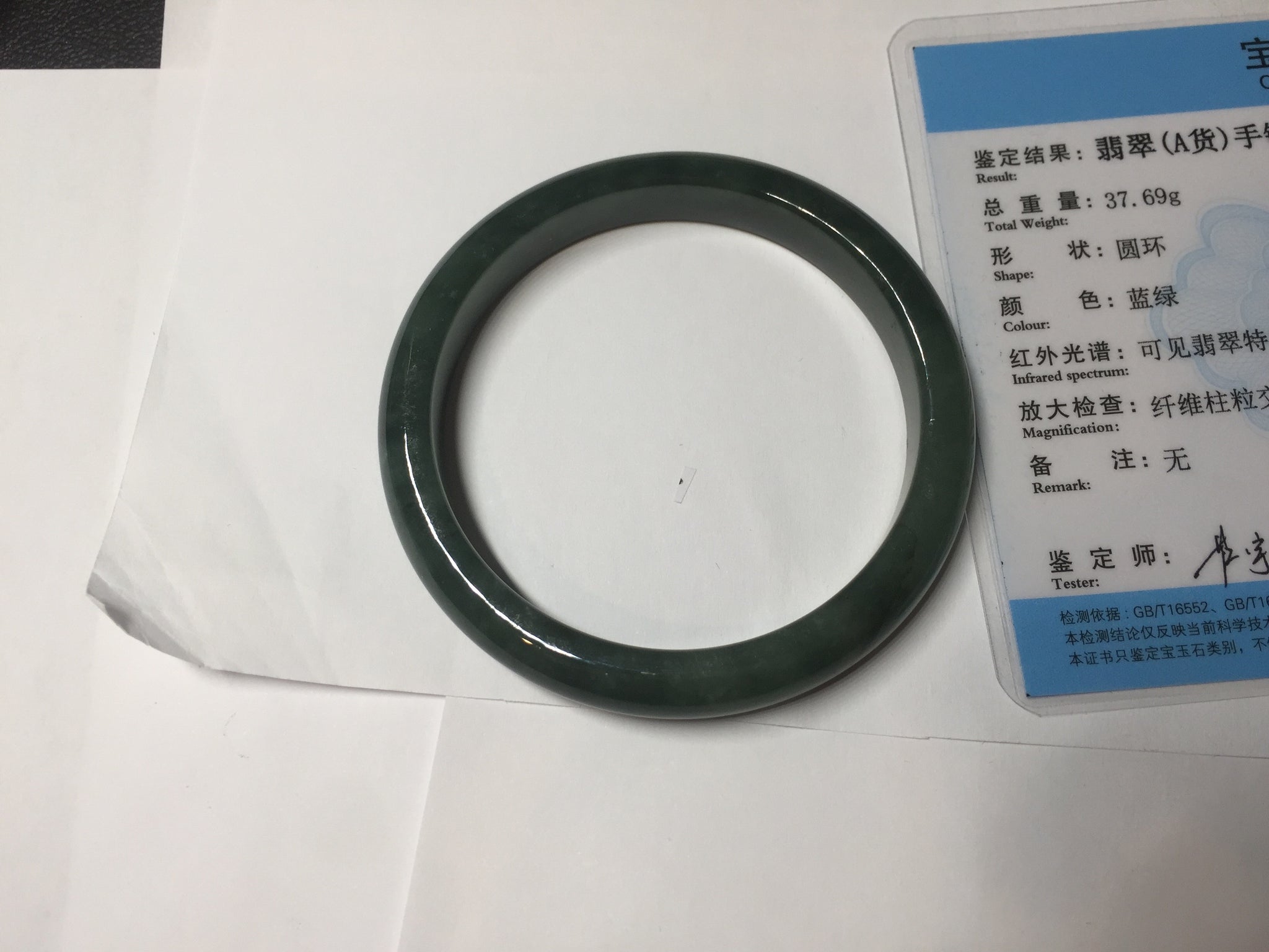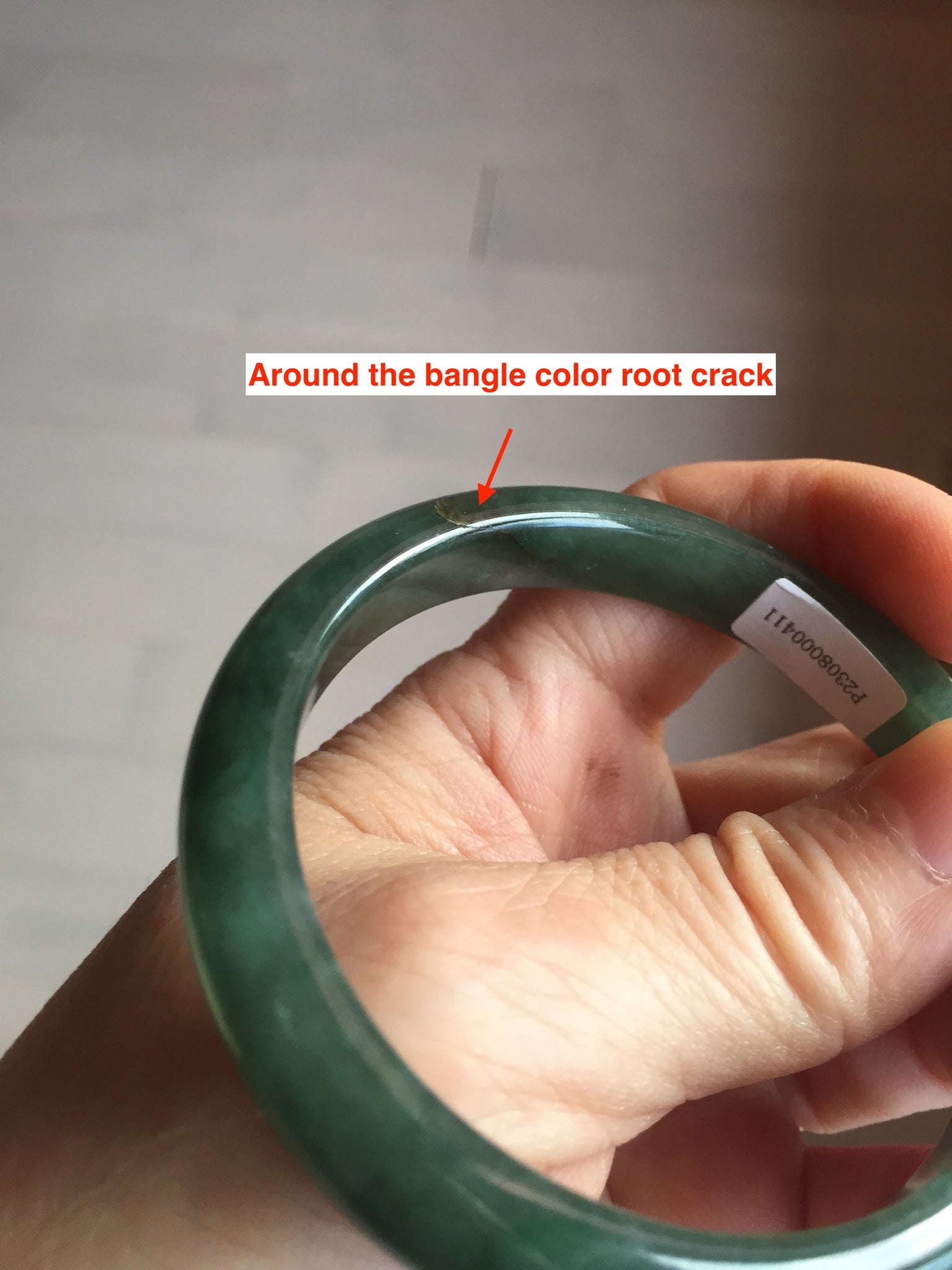 55.5mm Certified Type A 100% Natural oily dark green(老油青)/gray Jadeite bangle BG229-0411