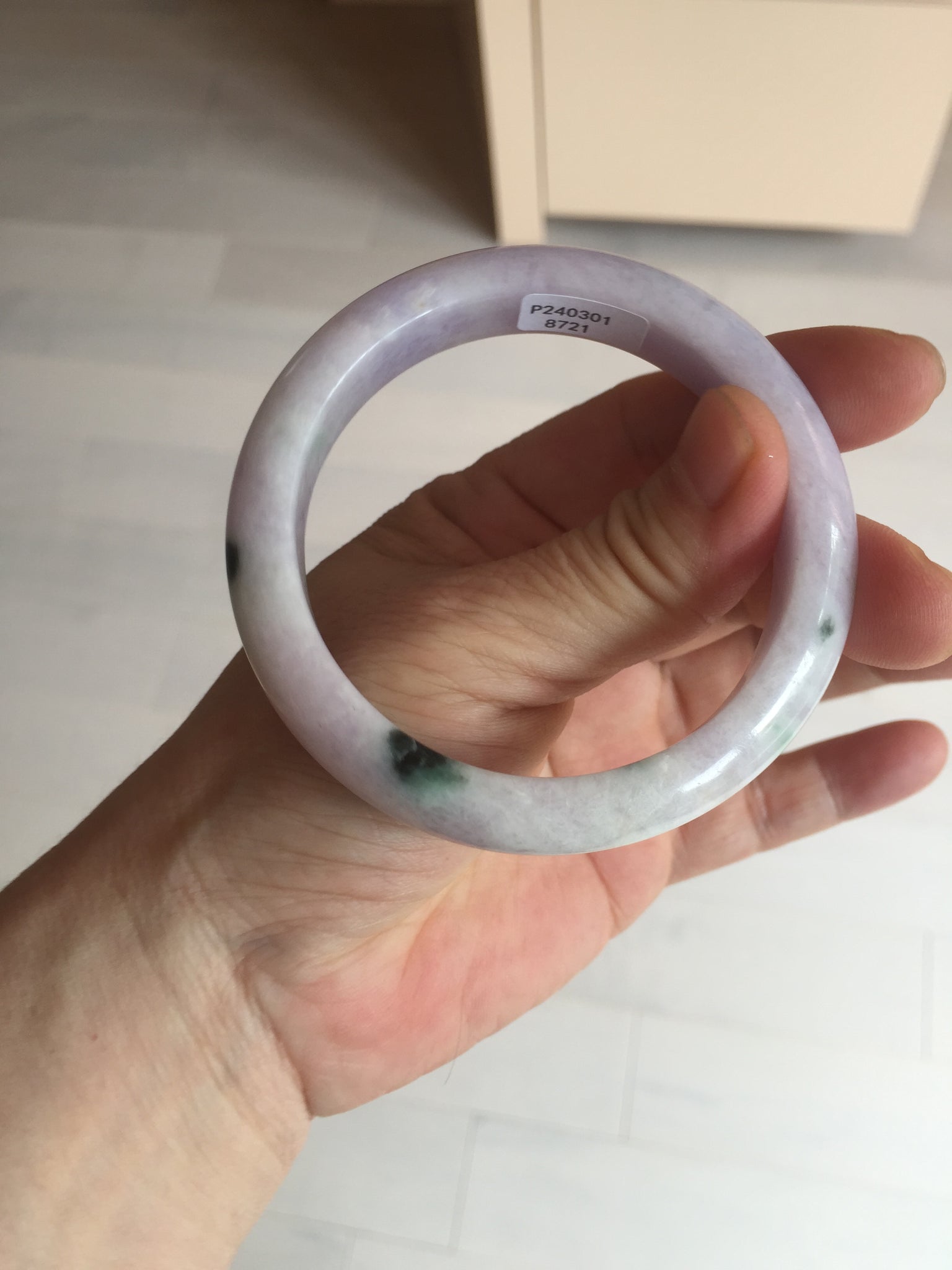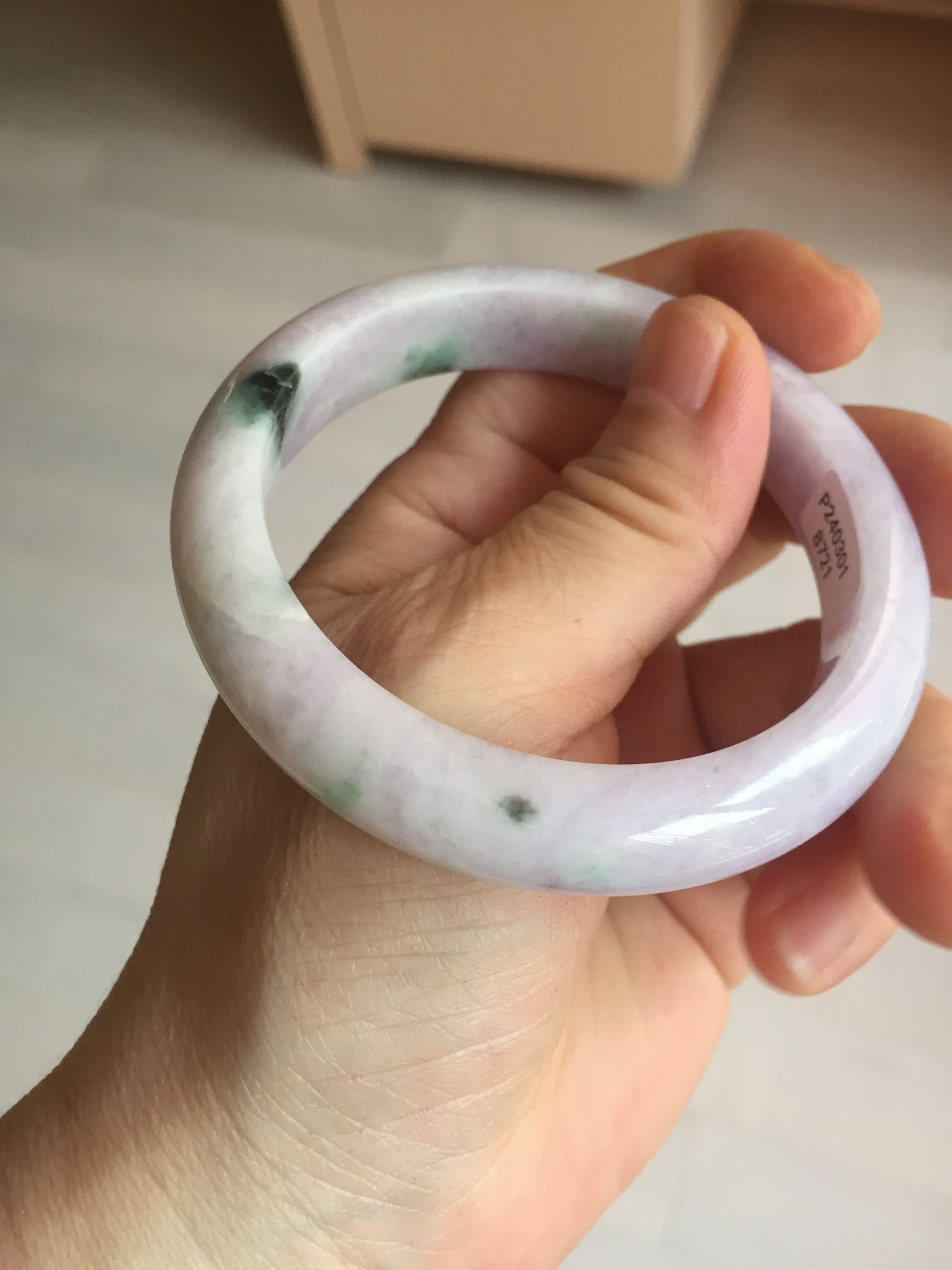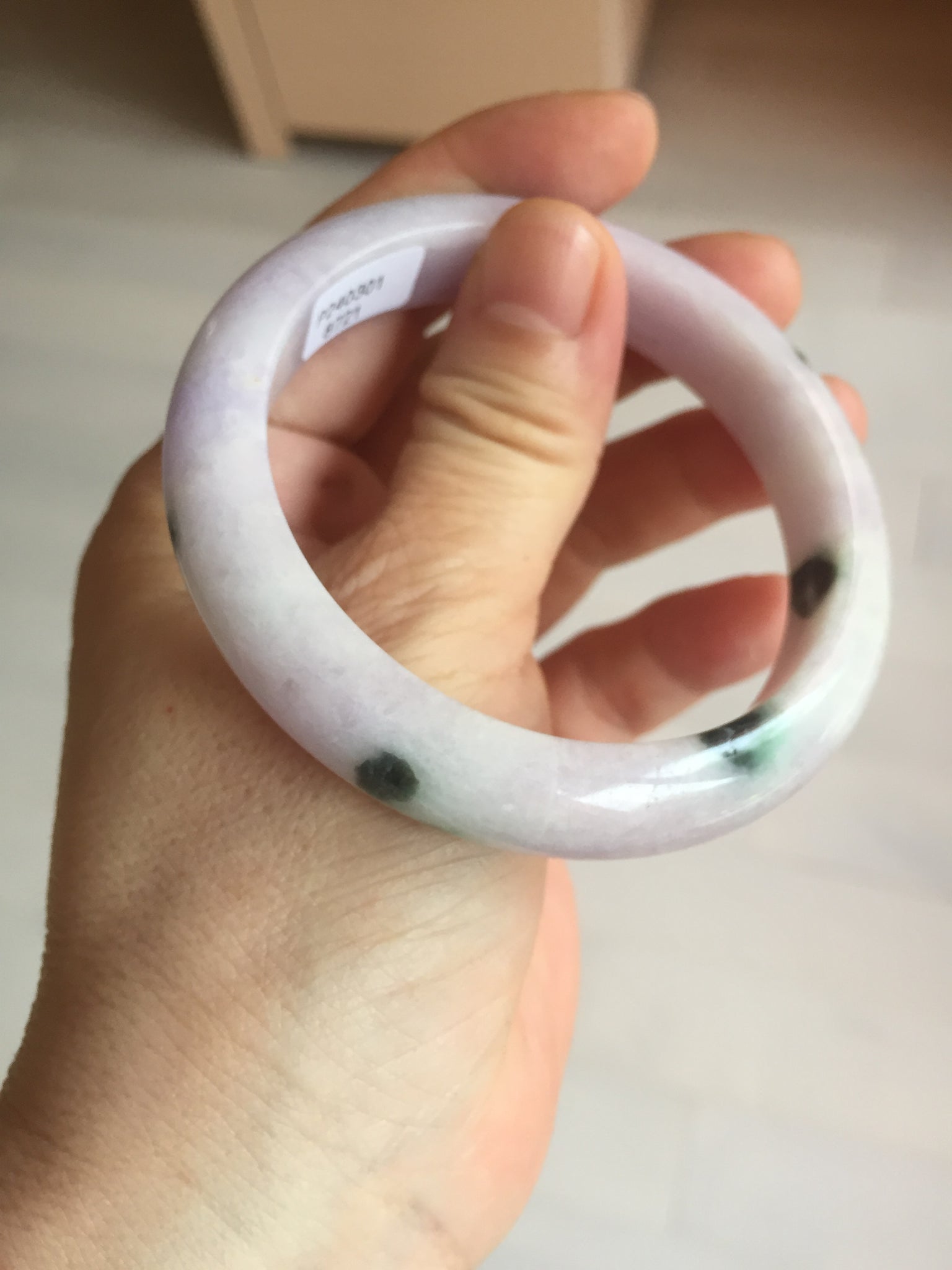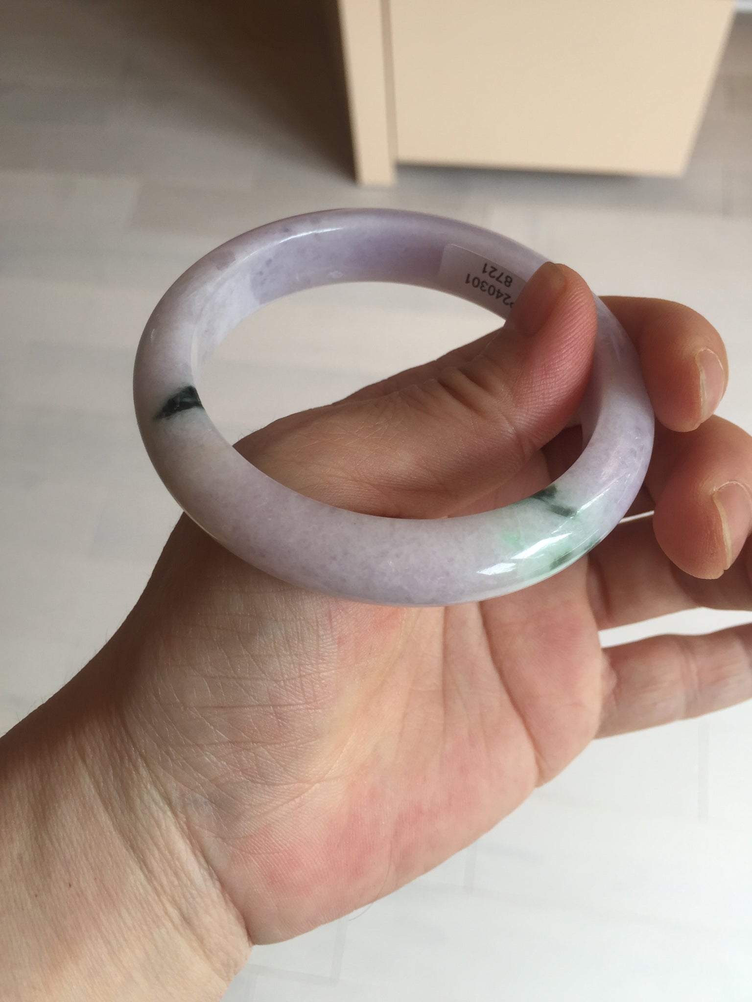 SOld! pleae don't order. Thanks. 55mm certified 100% natural type A sunny green/purple jadeite jade bangle BN86-8721