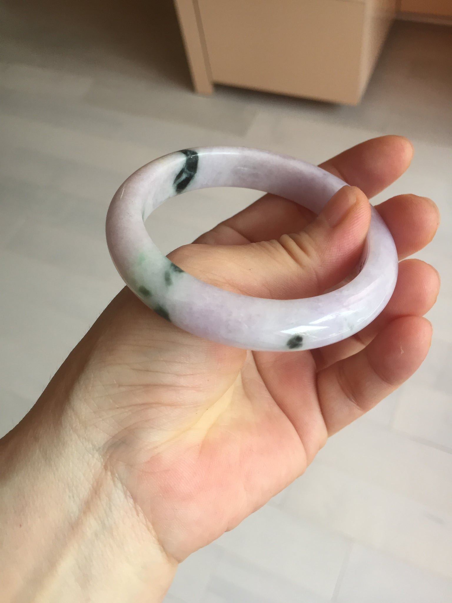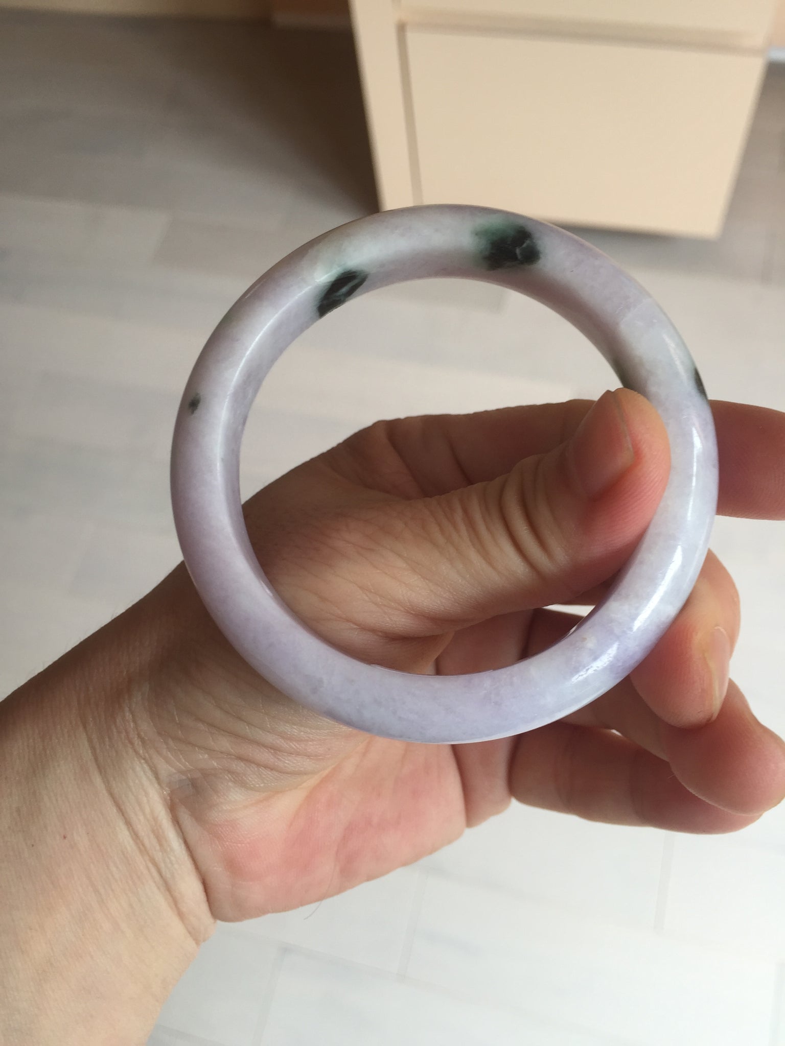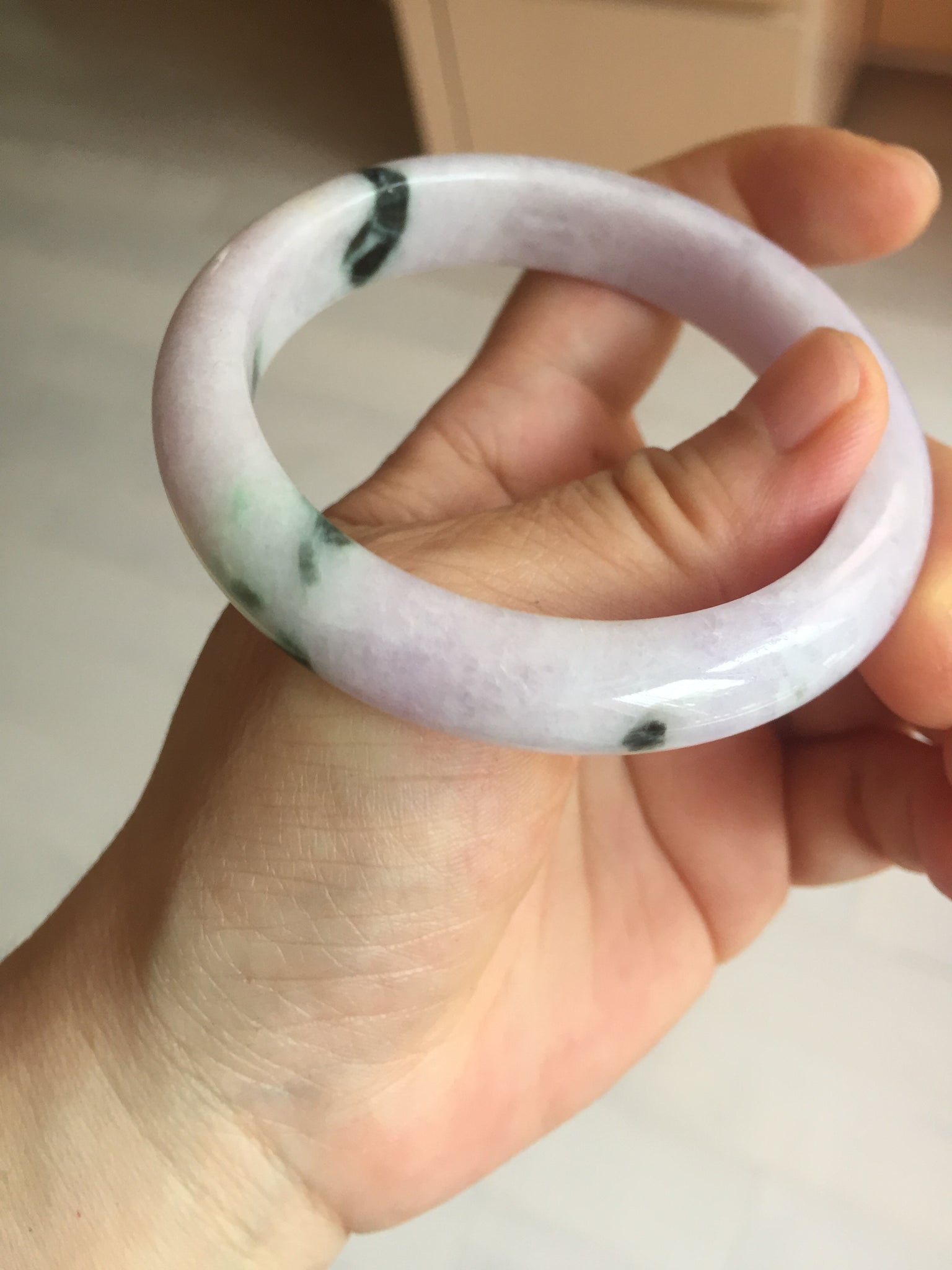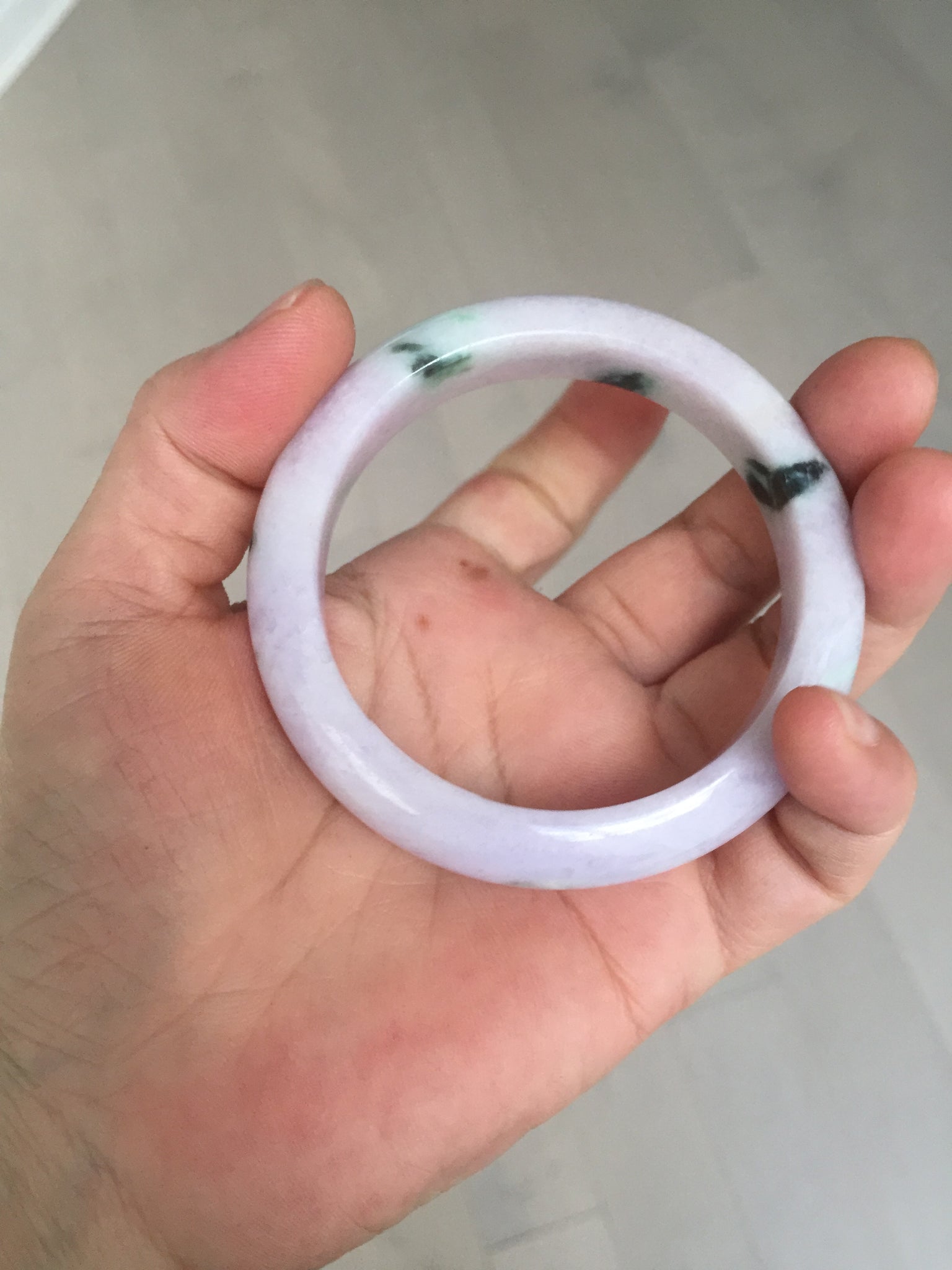 When a bangle has green, yellow, and purple, it means "Fu Lu Shou", Blessing, good fortune, and happy long life. It is scarce.