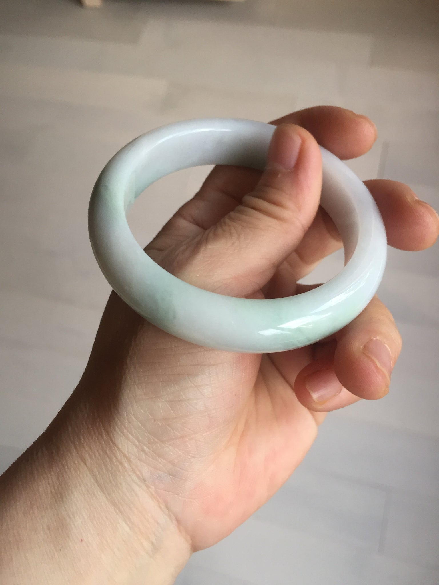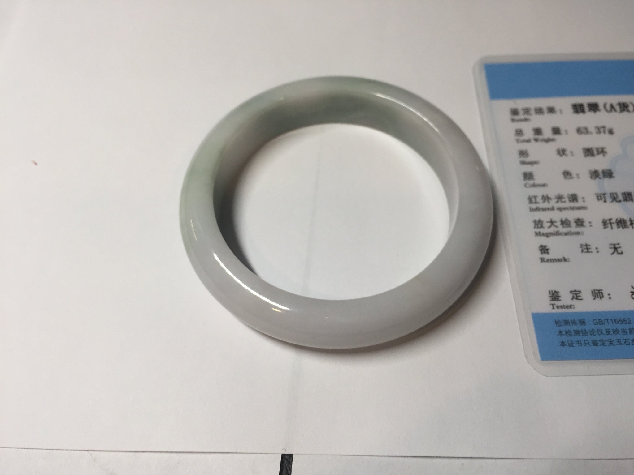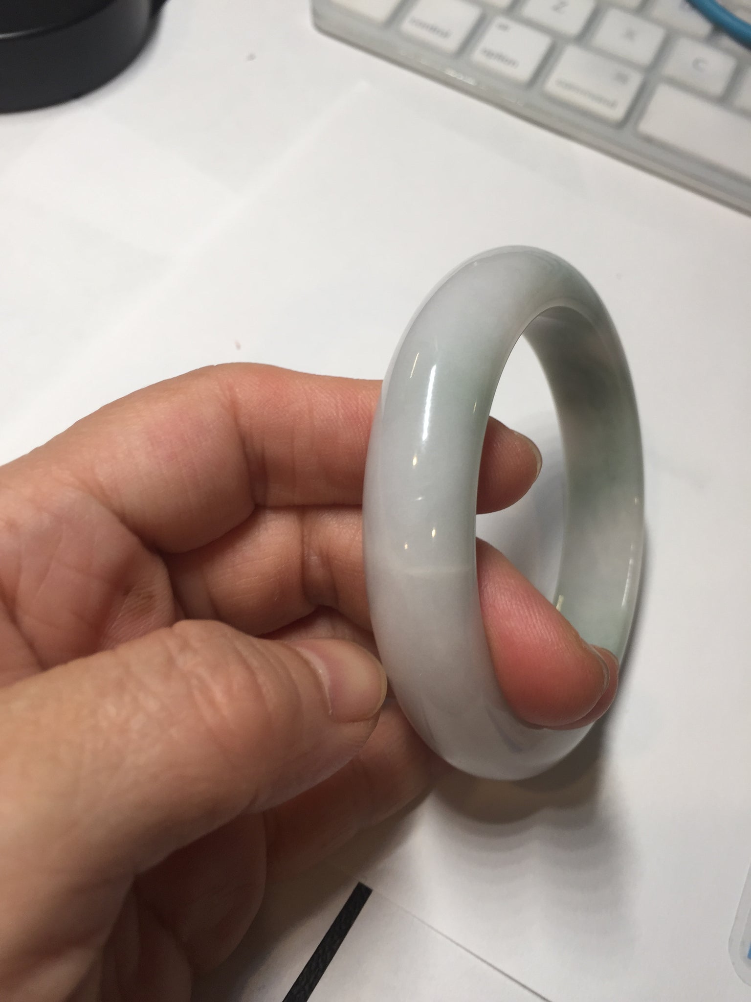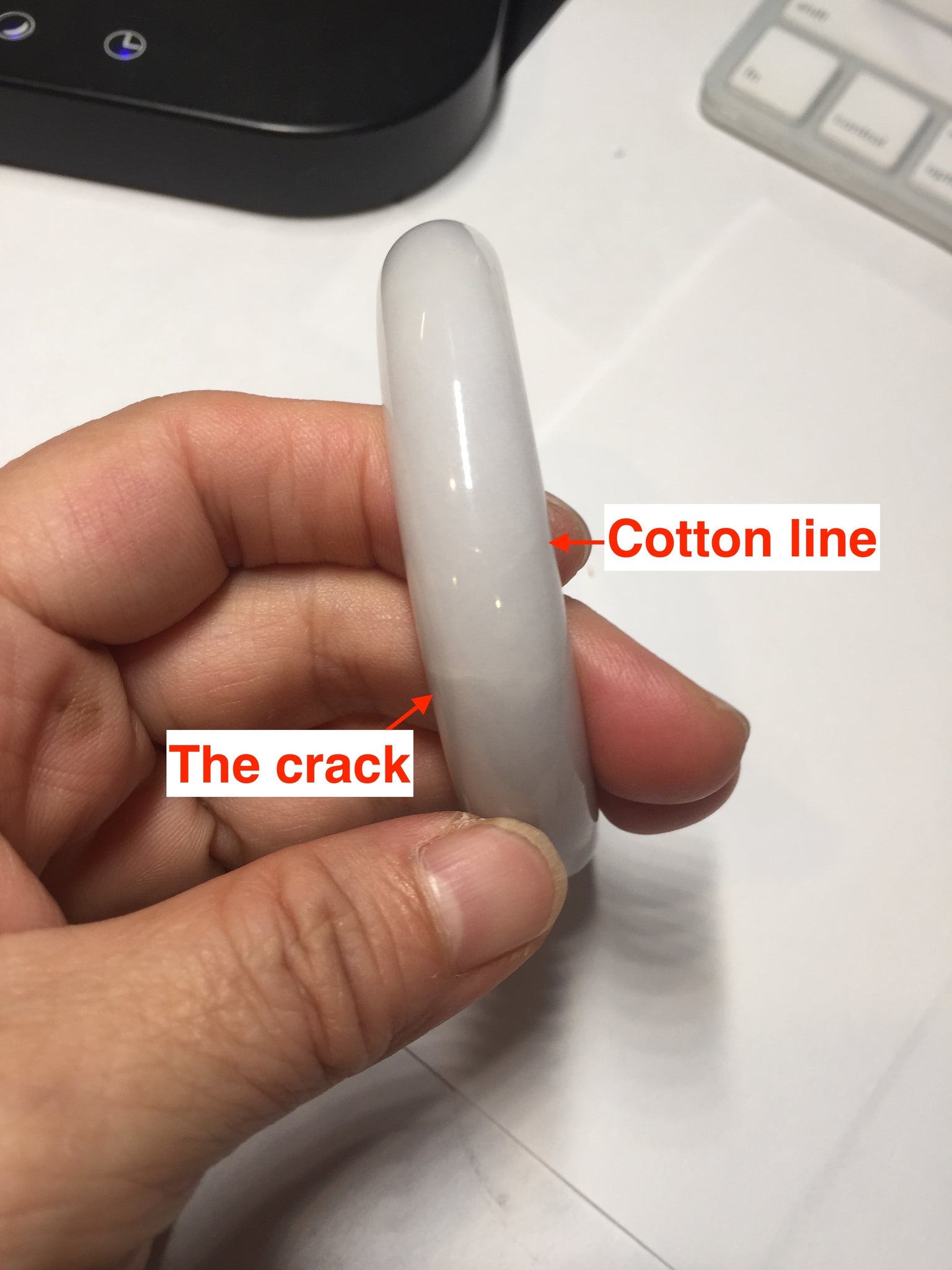 There is one crack and it is almost around the bangle. The bangle is solid. Some cotton spots, lines, and cotton areas.