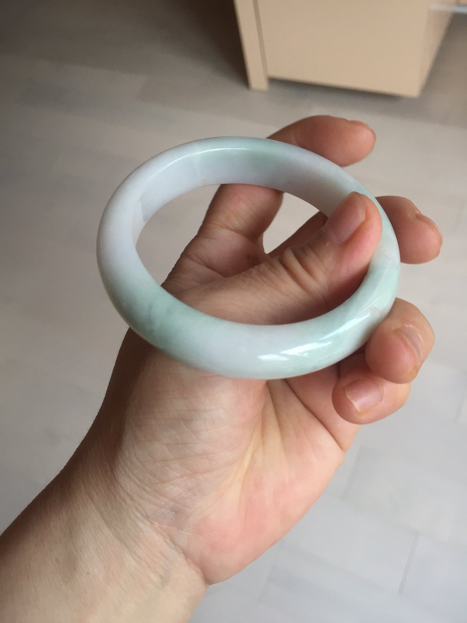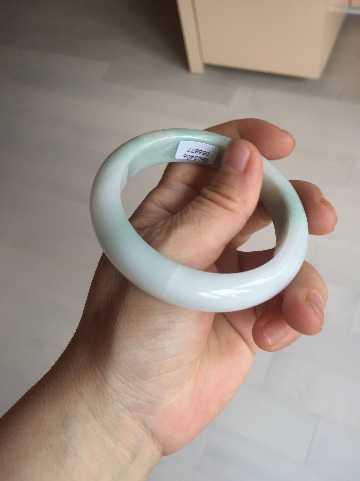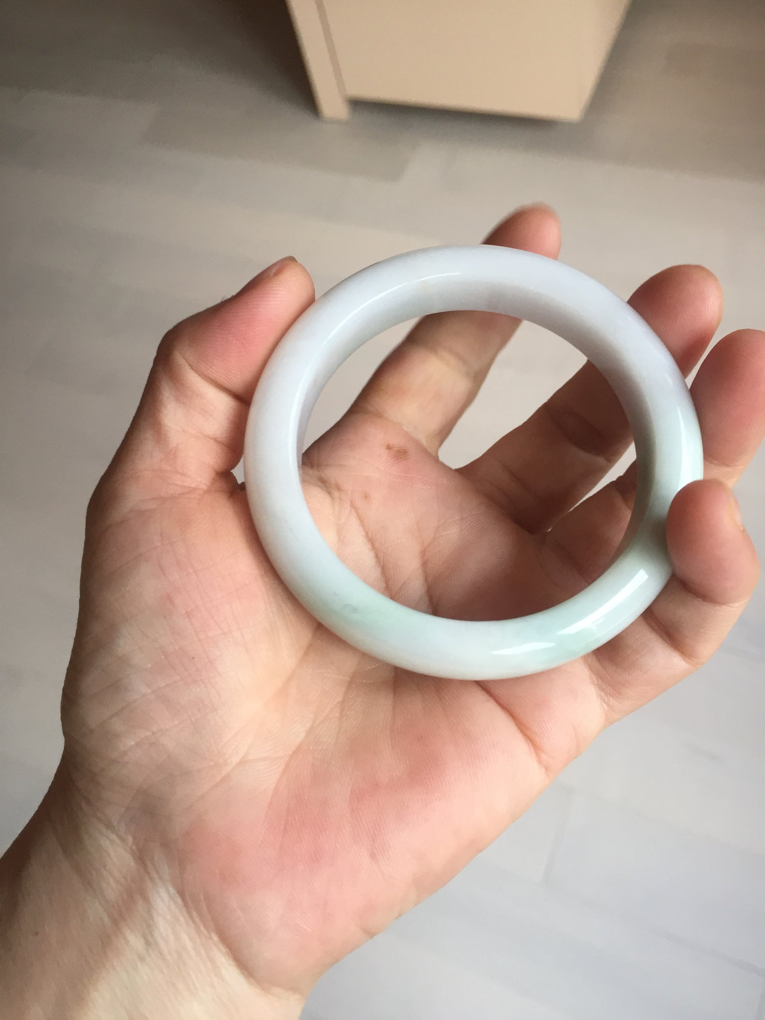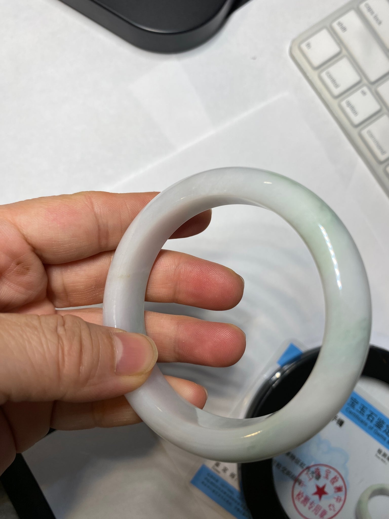 There is one crack and it is almost around the bangle. The bangle is solid. Some cotton spots, lines, and cotton areas.