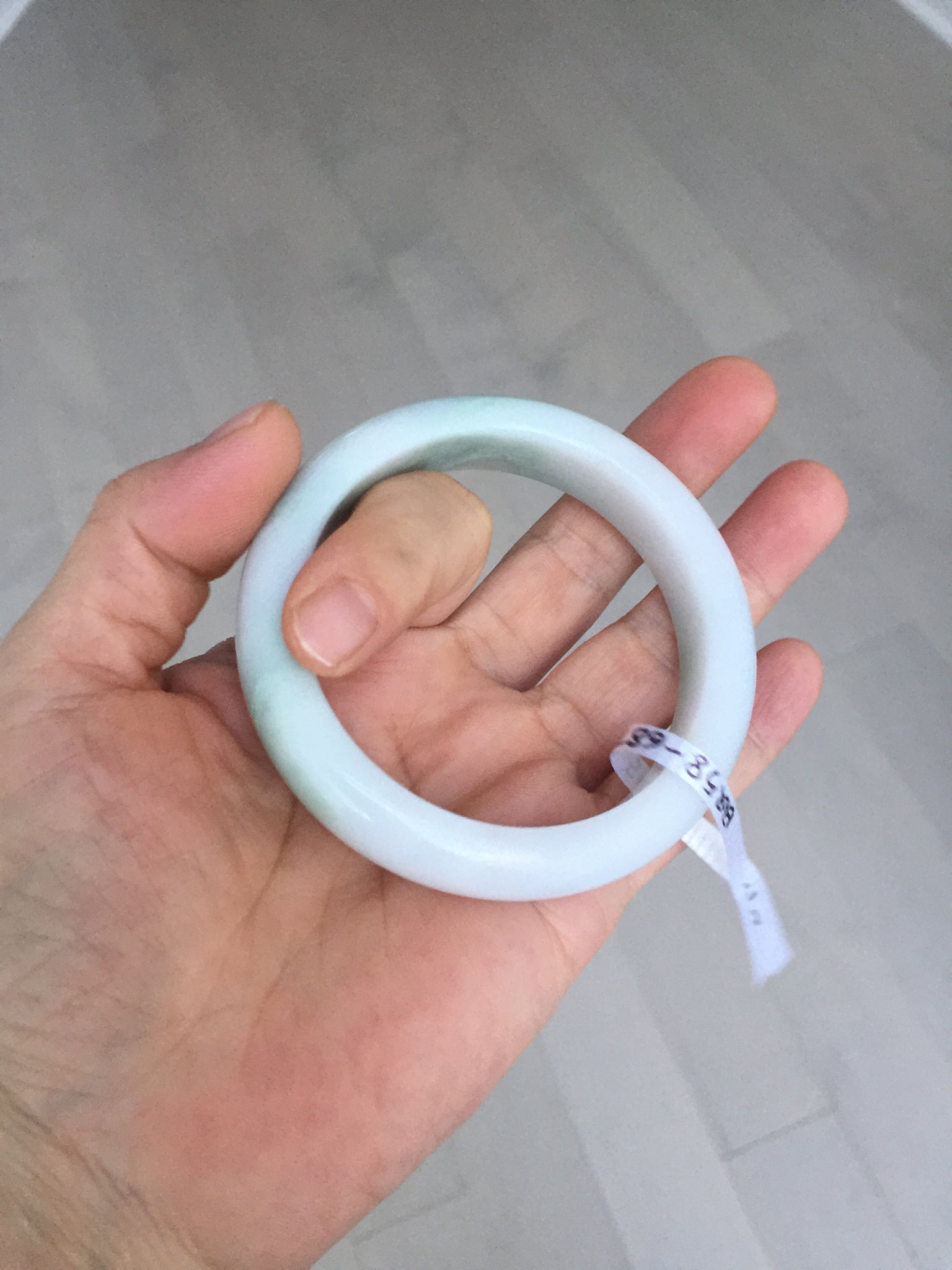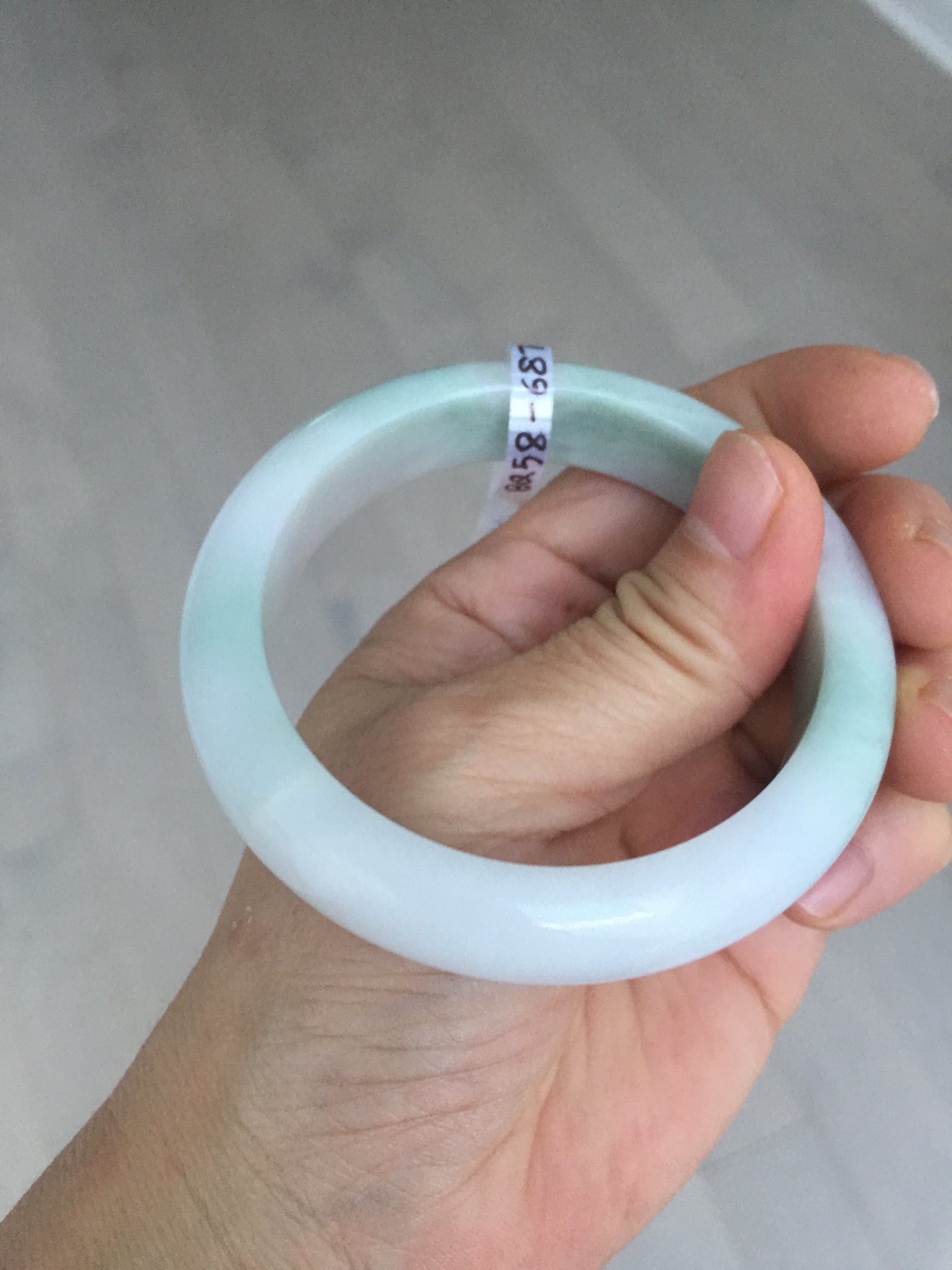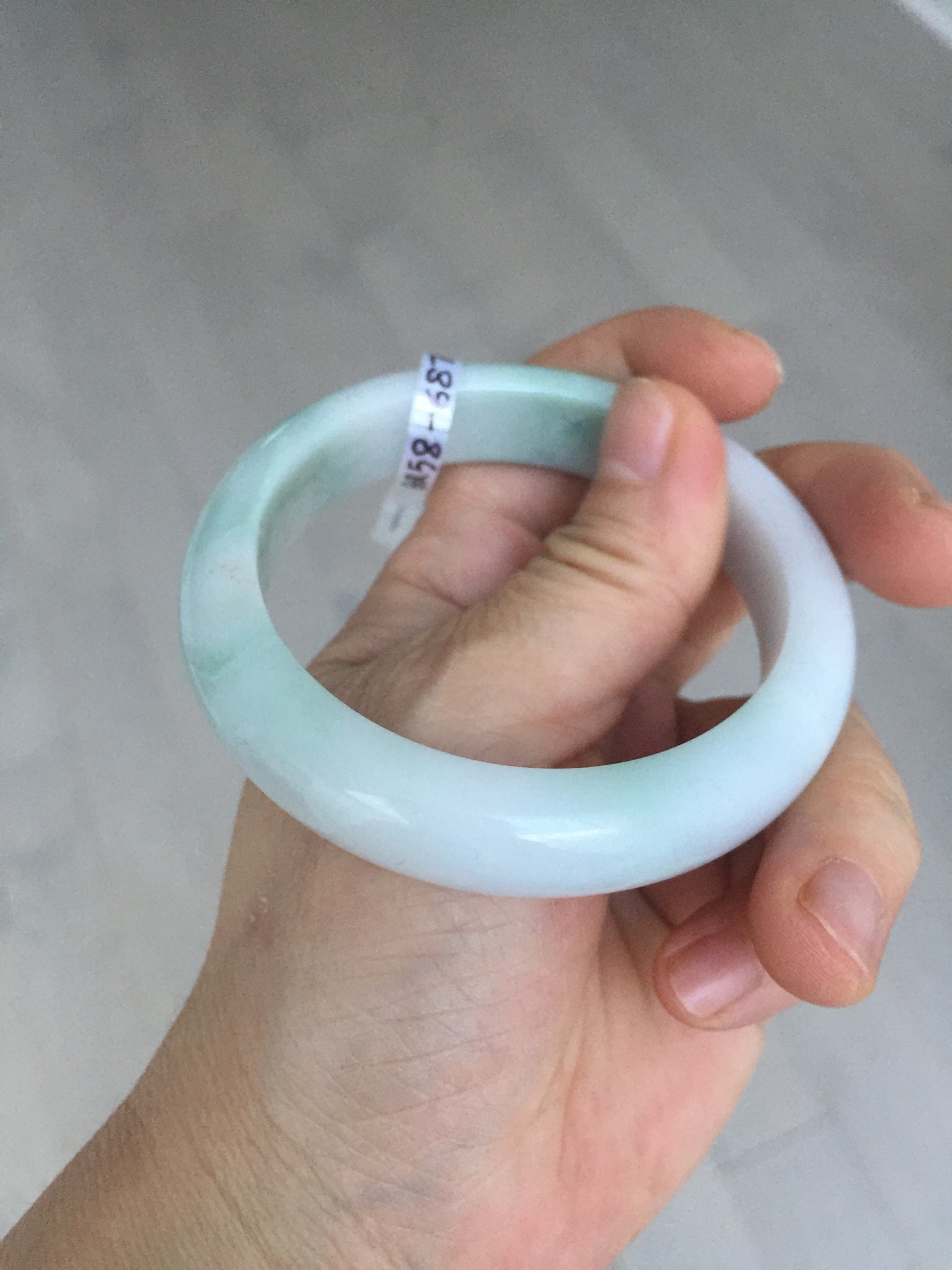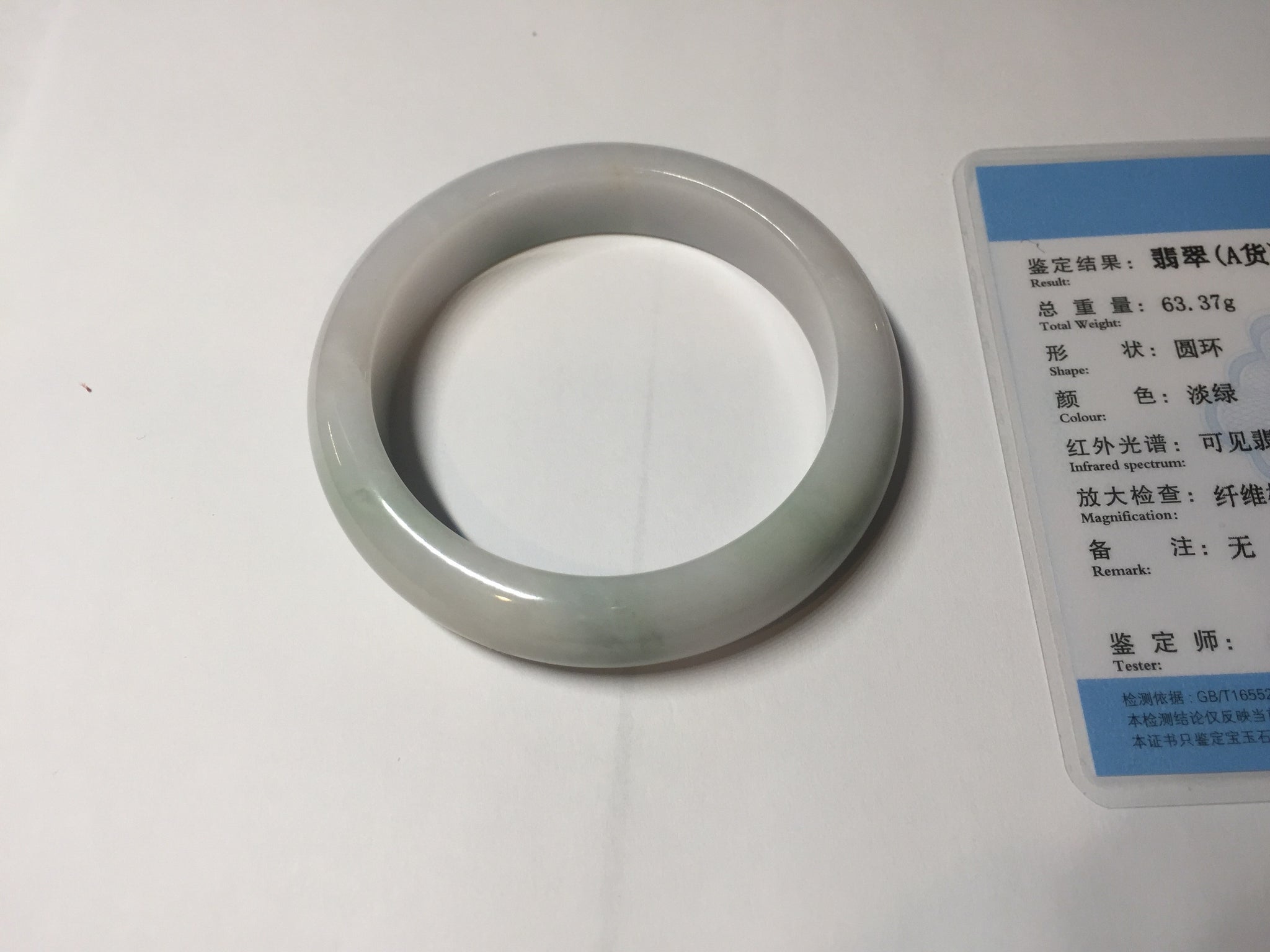 There is one crack and it is almost around the bangle. The bangle is solid. Some cotton spots, lines, and cotton areas.