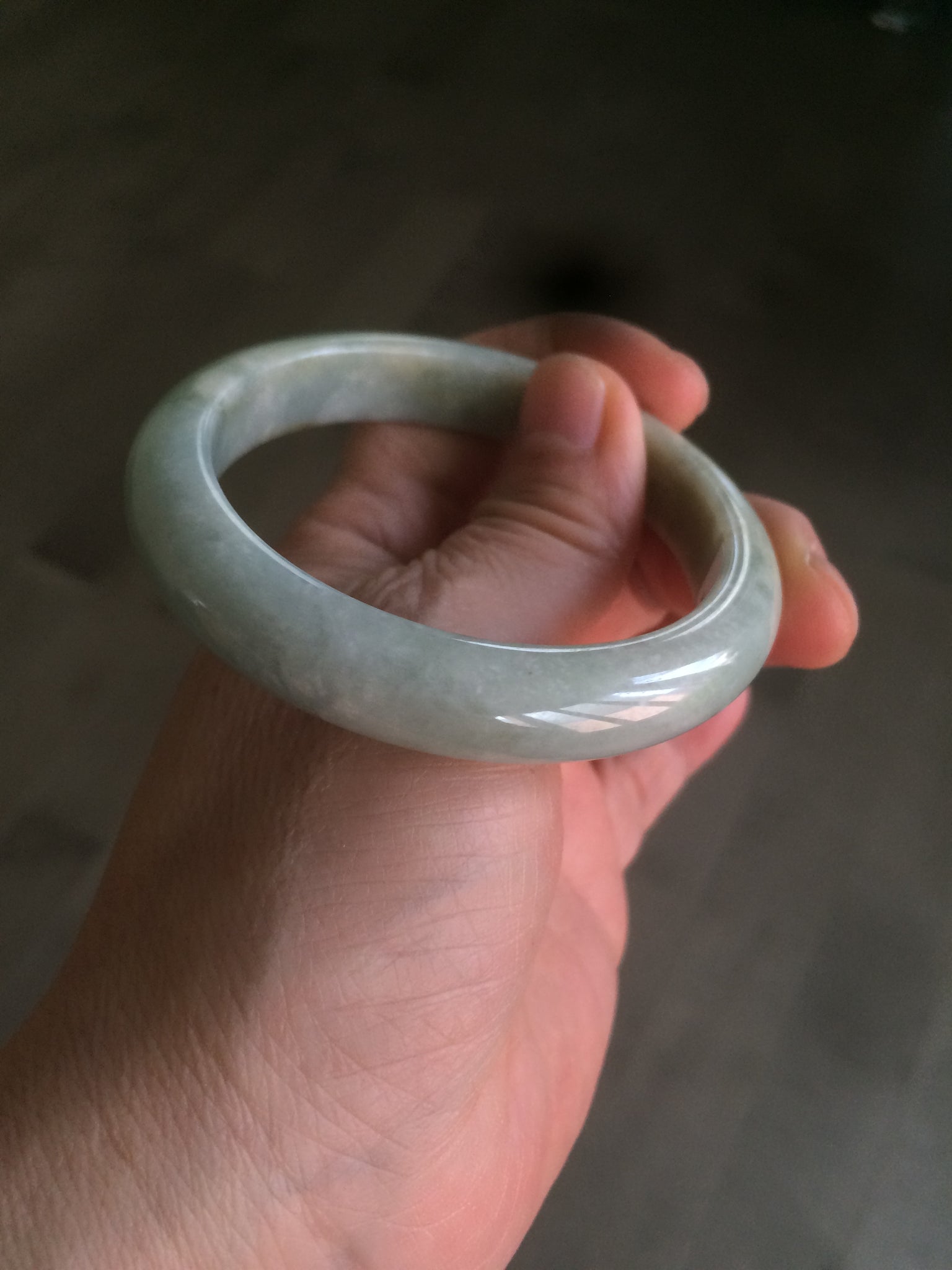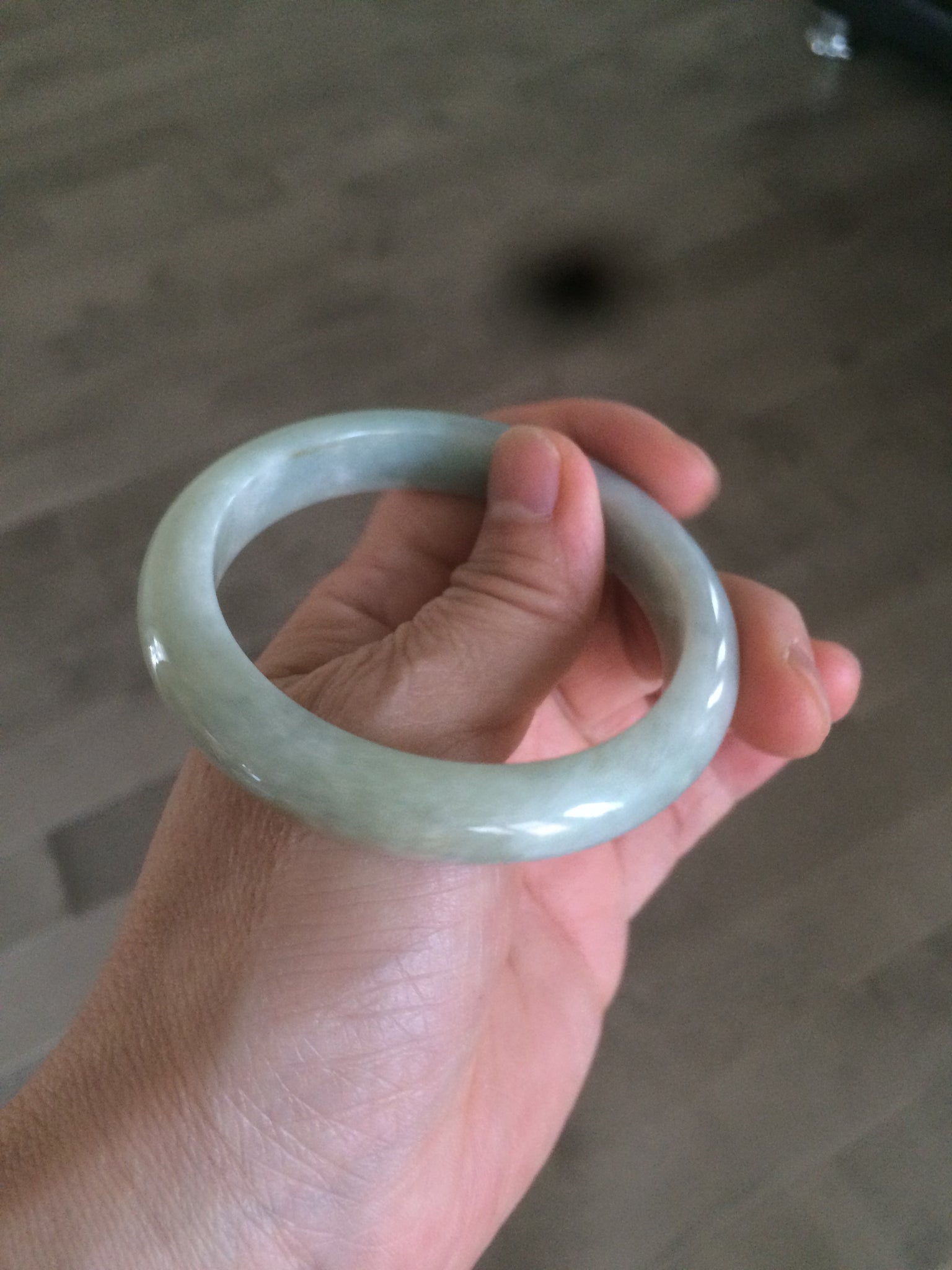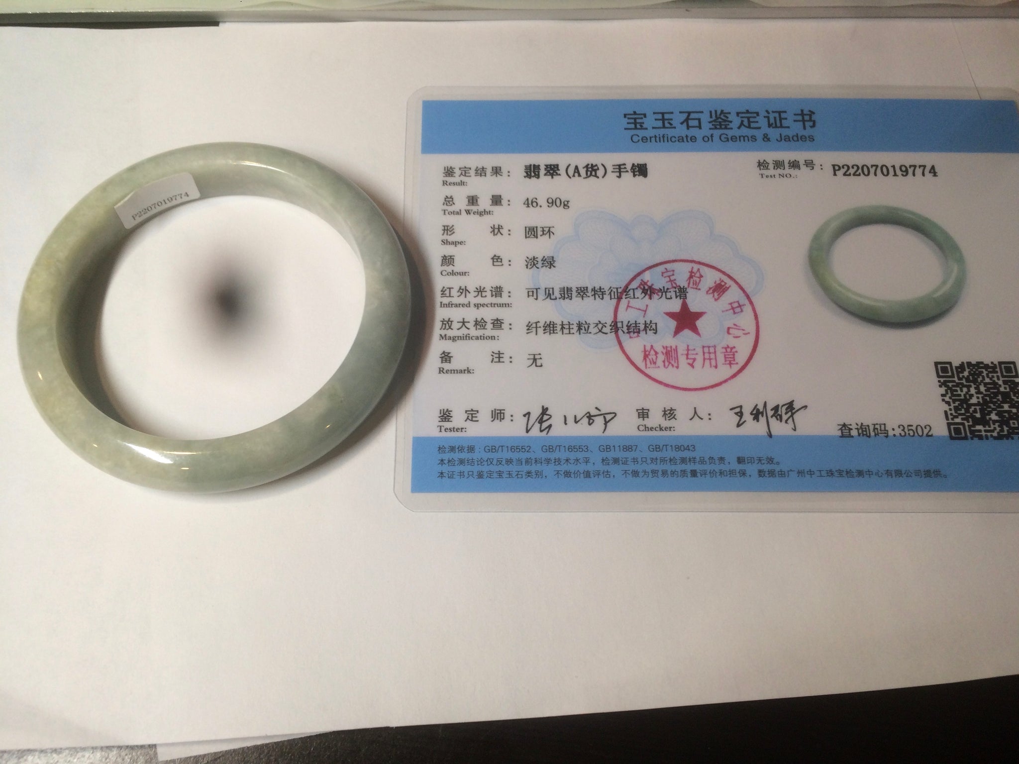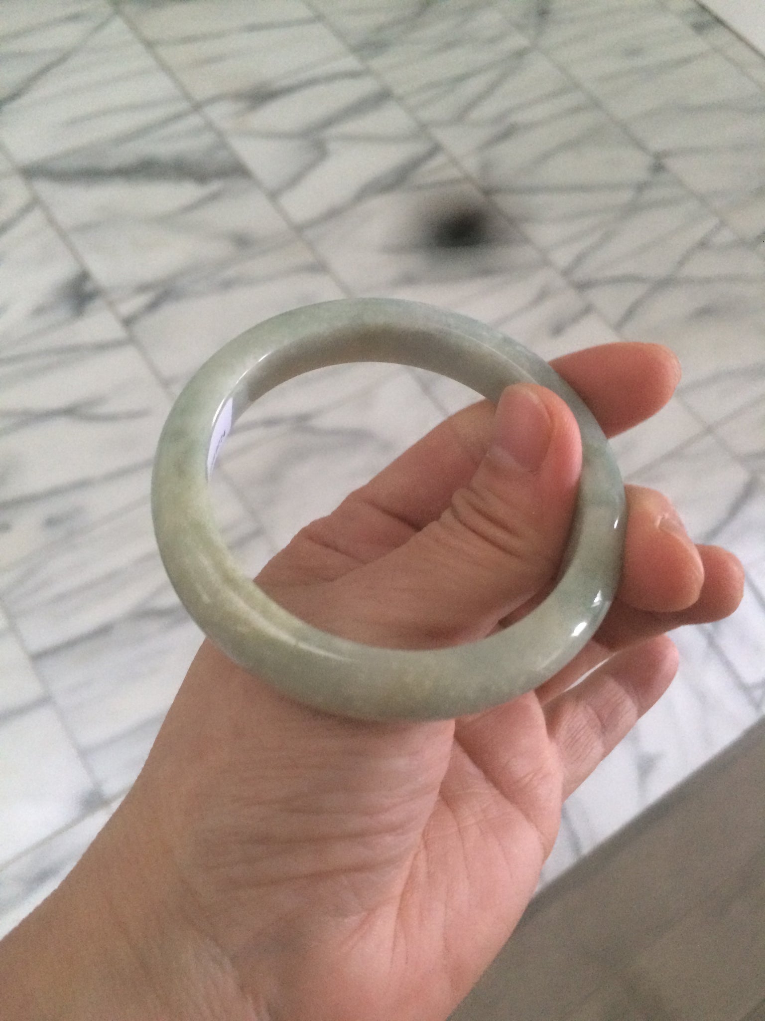 54.4mm Certified Type A 100% Natural white/light green Jadeite Jade bangle AF61-9774