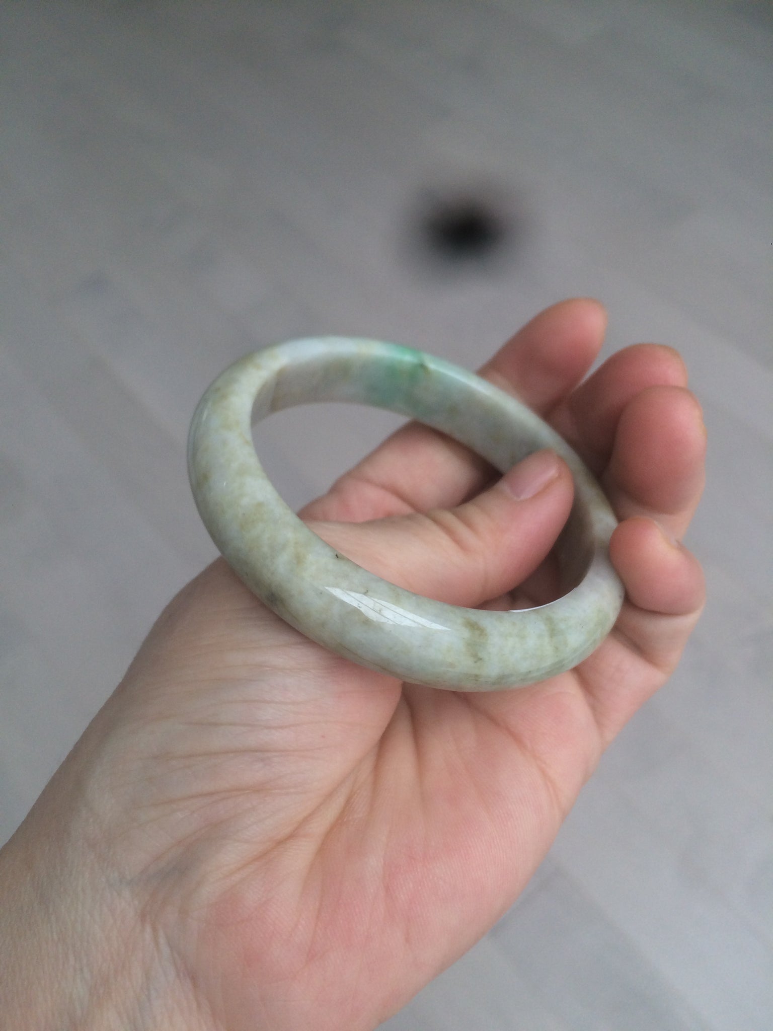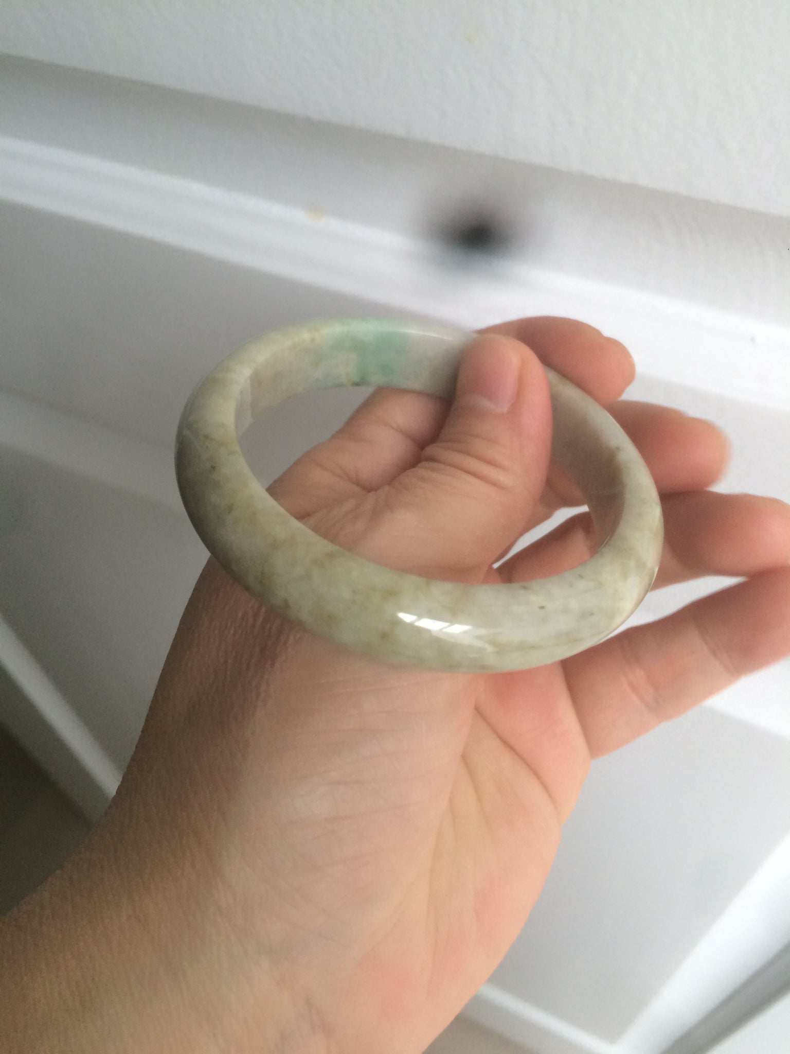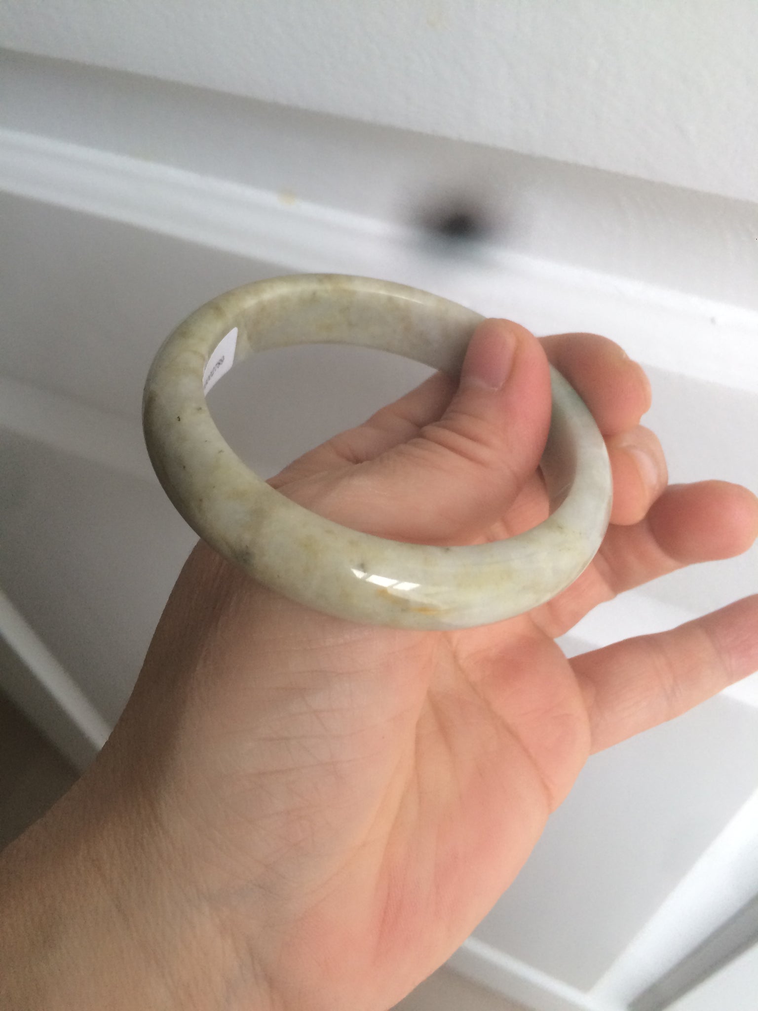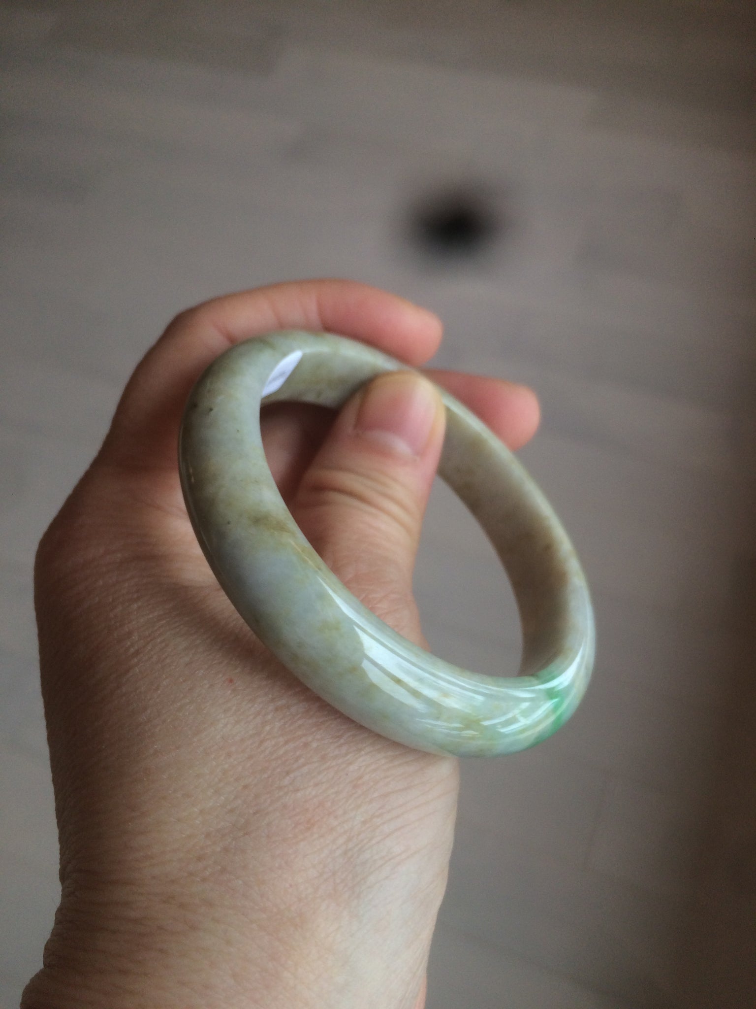 54.6mm certified 100% natural Type A sunny green/brown/gary jadeite jade bangle AR79-2789