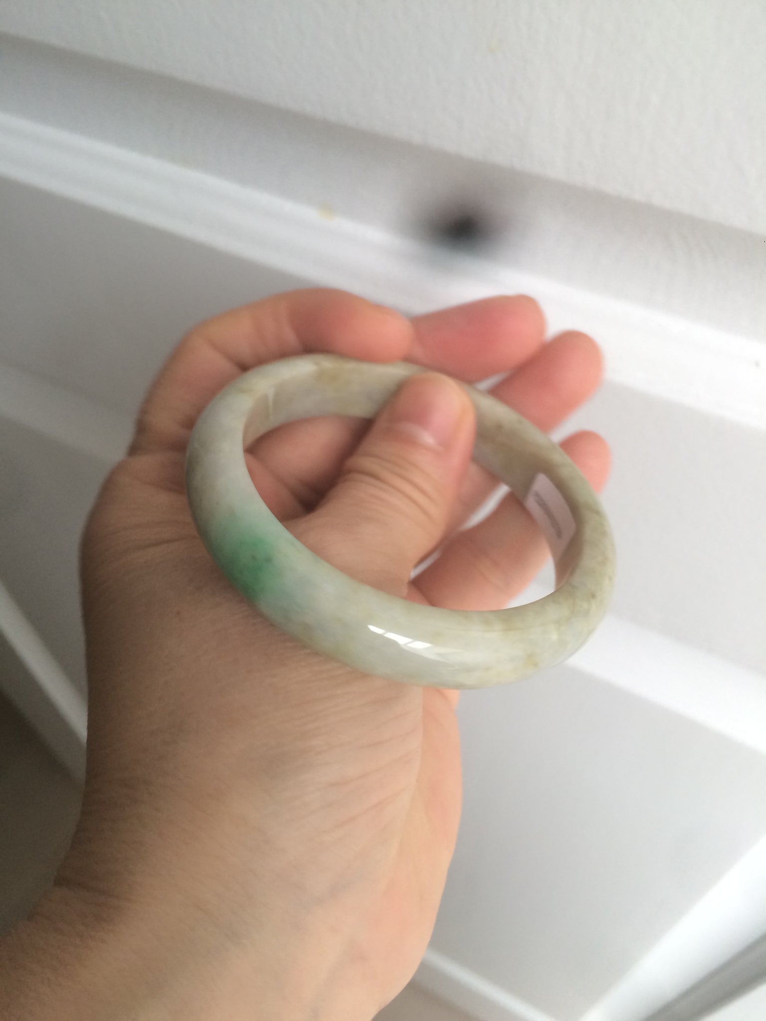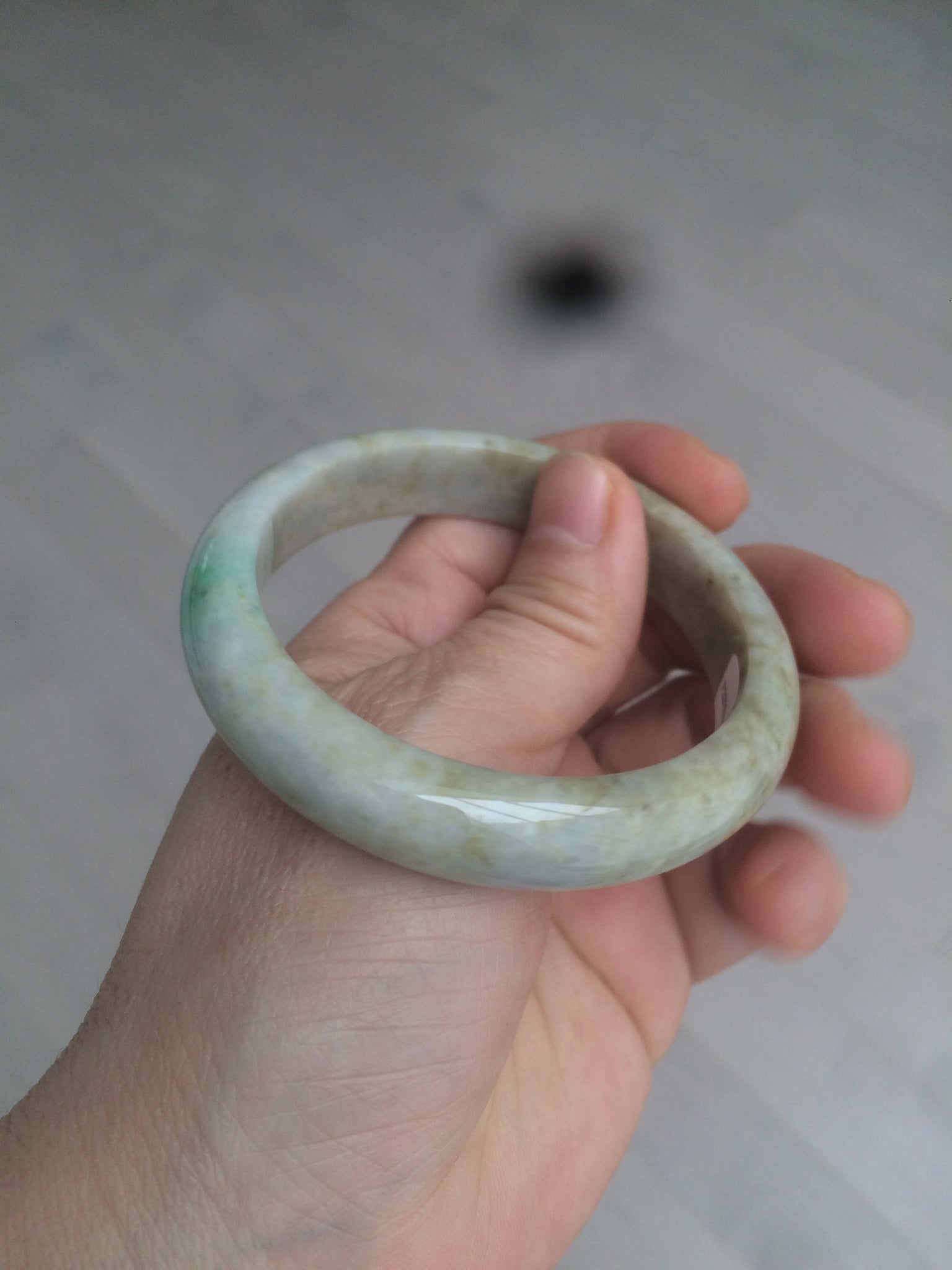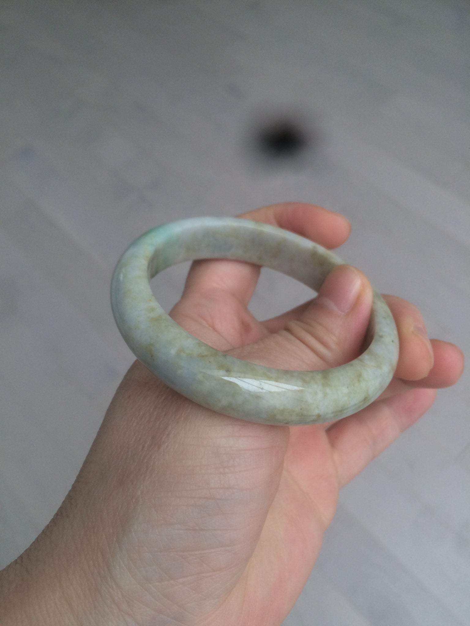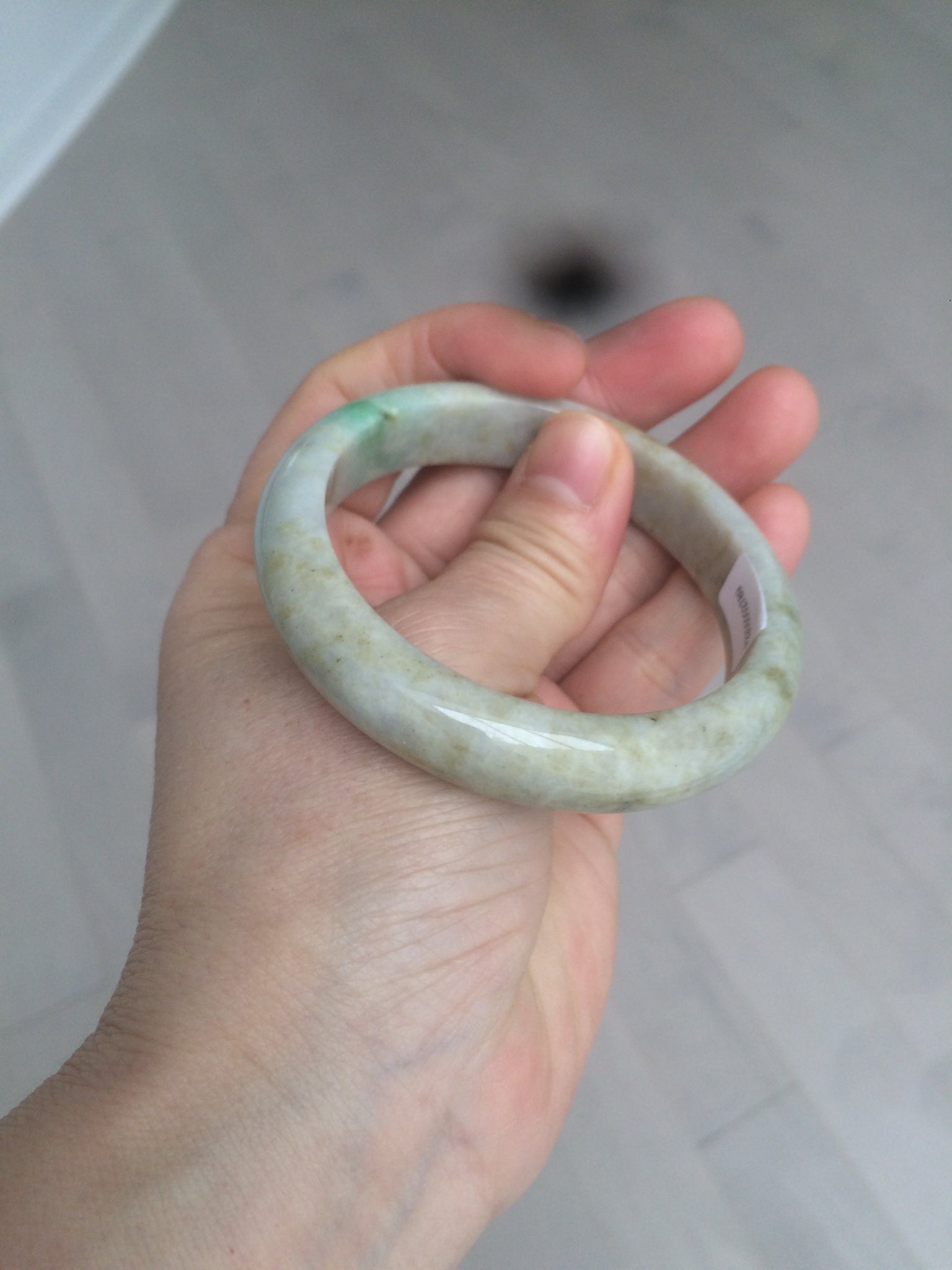 54.6mm certified 100% natural Type A sunny green/brown/gary jadeite jade bangle AR79-2789