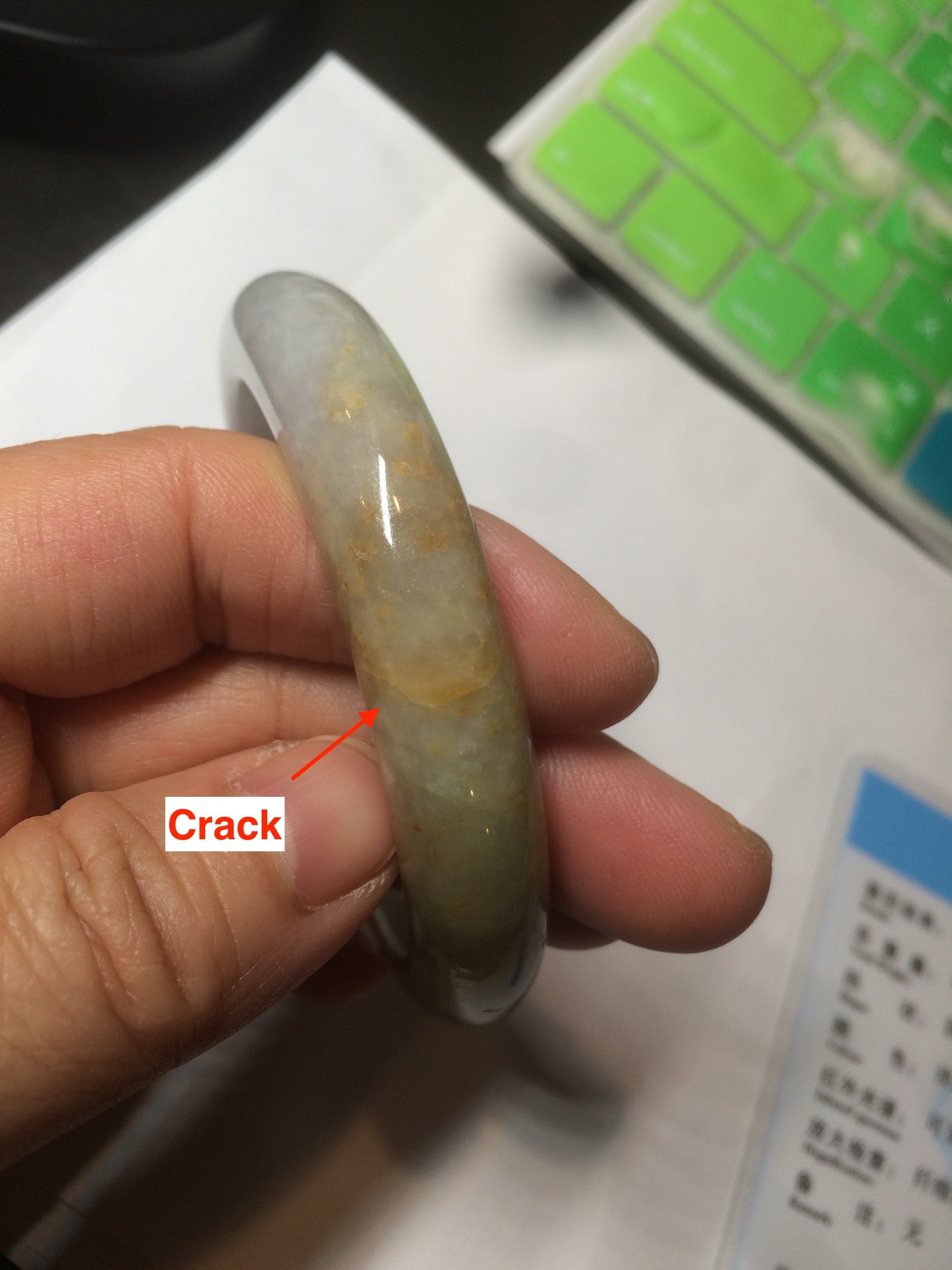One crack. Some brown/yellow rough surfaces. Some cotton lines and cotton spots. The pirple is very light.